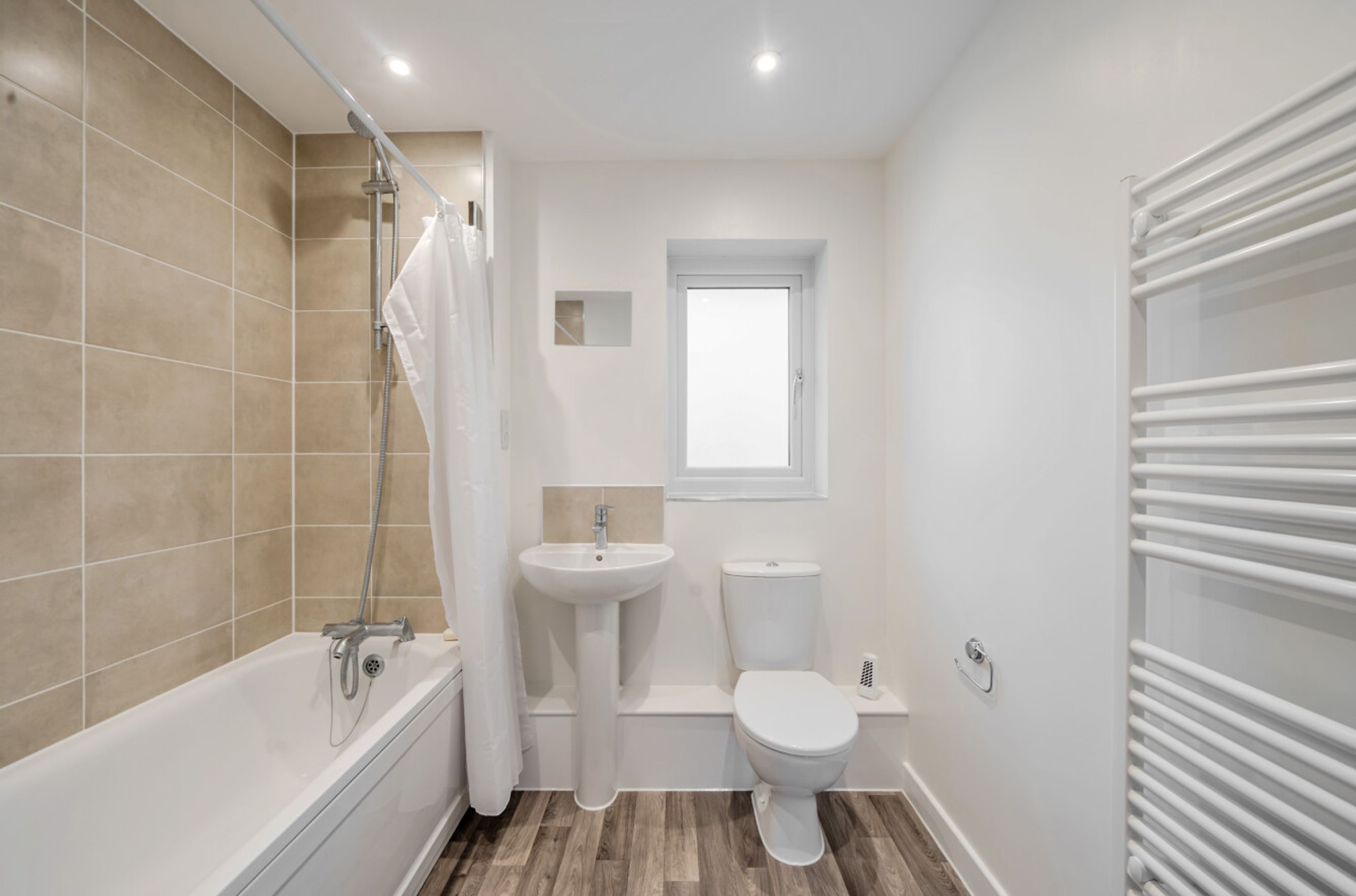 There is one double bedroom. The bathroom has a modern, white suite. You'll also have storage cupboards and an allocated parking space.