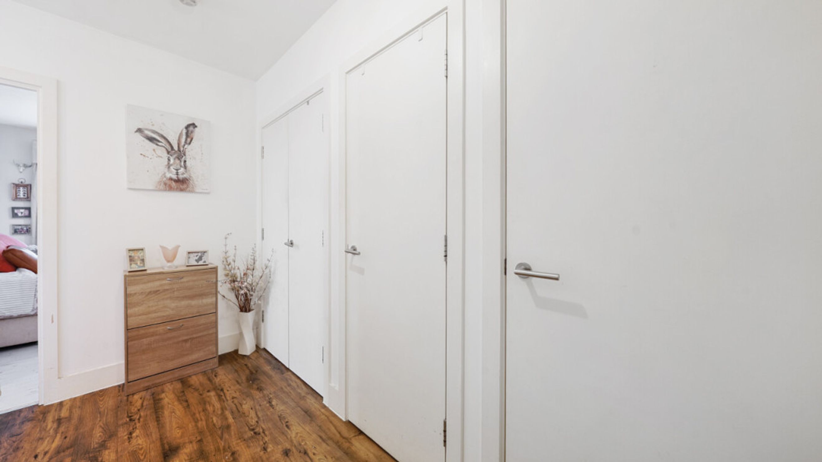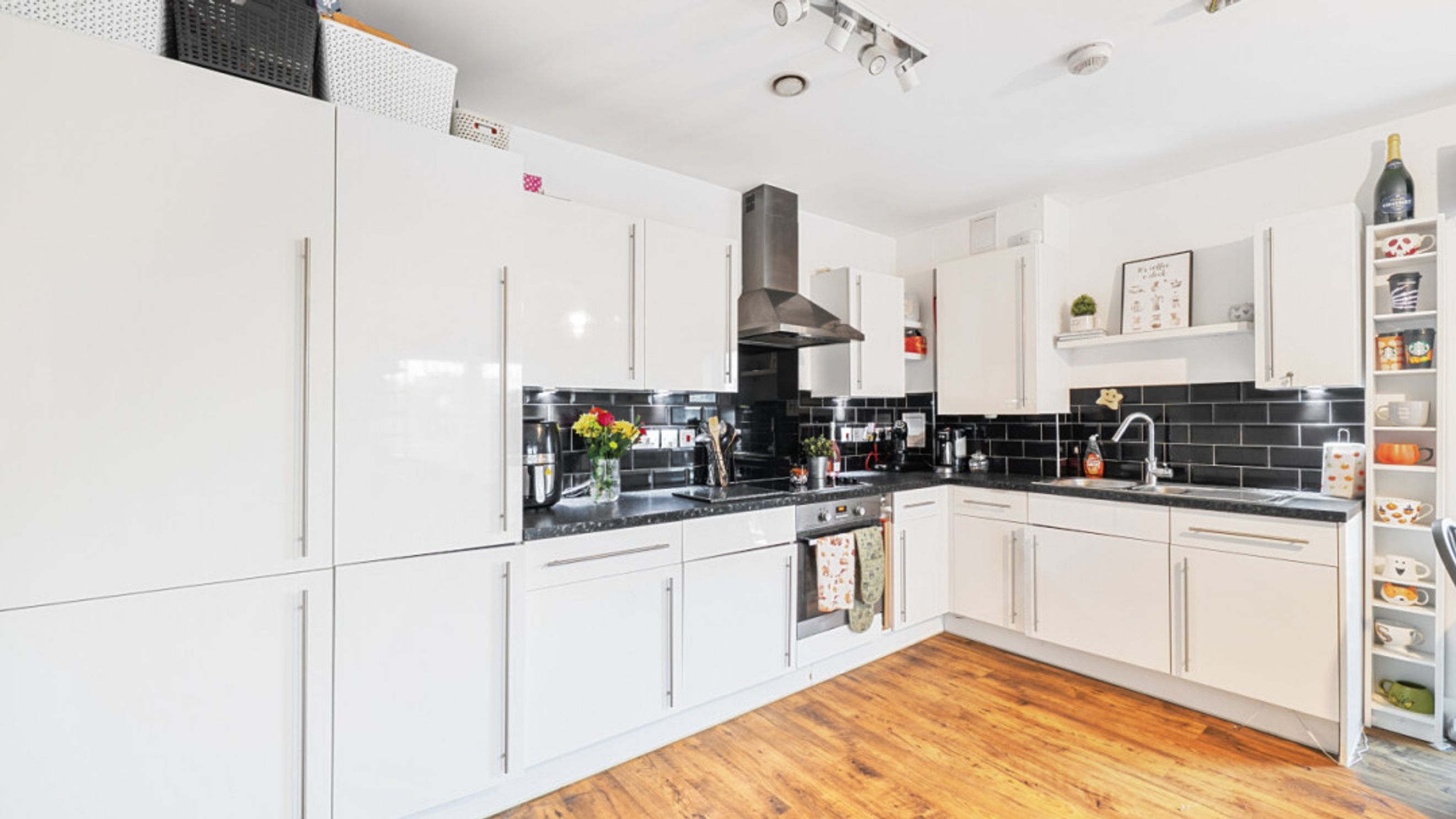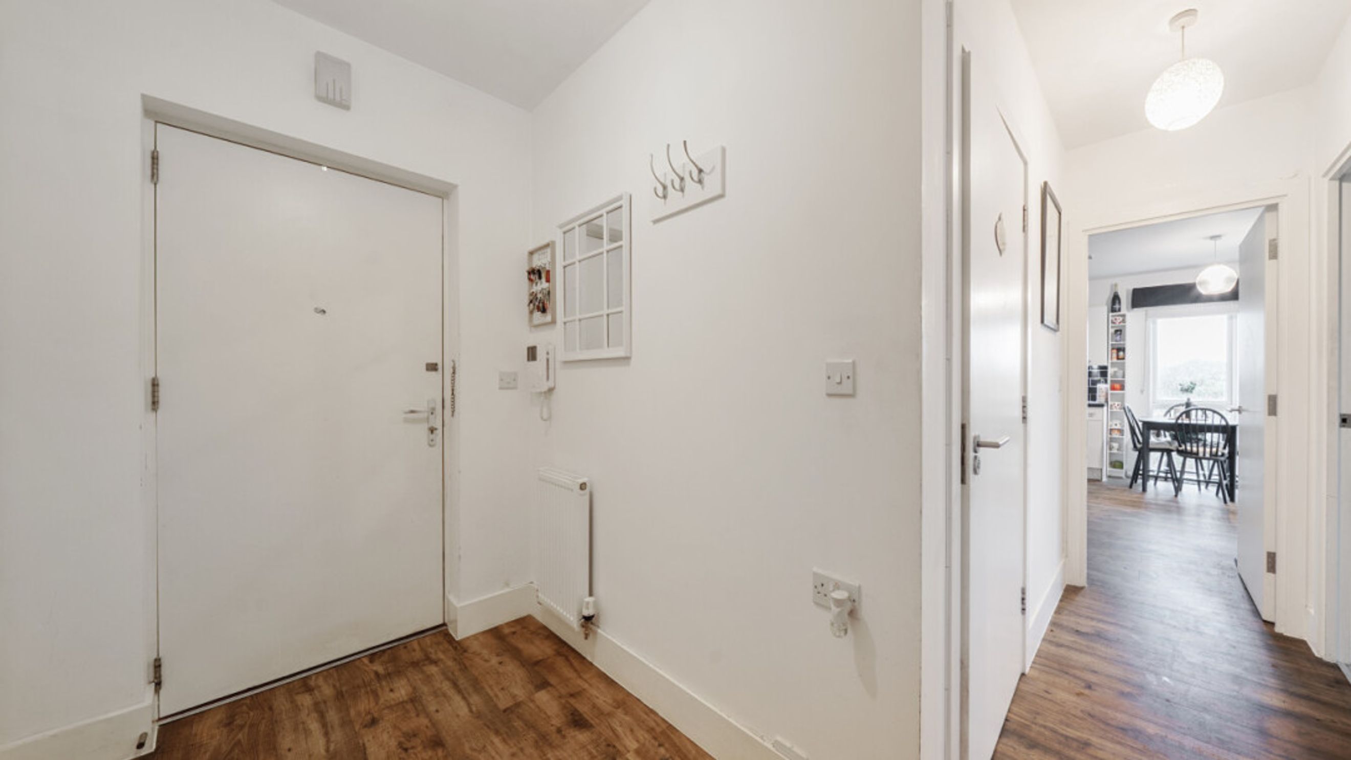 Enter this well presented apartment via a spacious hallway with three storage cupboards. A large dual aspect living area opens onto a south facing balcony large enough to dine and relax. The modern kitchen includes fully integrated appliances. There are two double bedrooms served by a contemporary family bathroom.