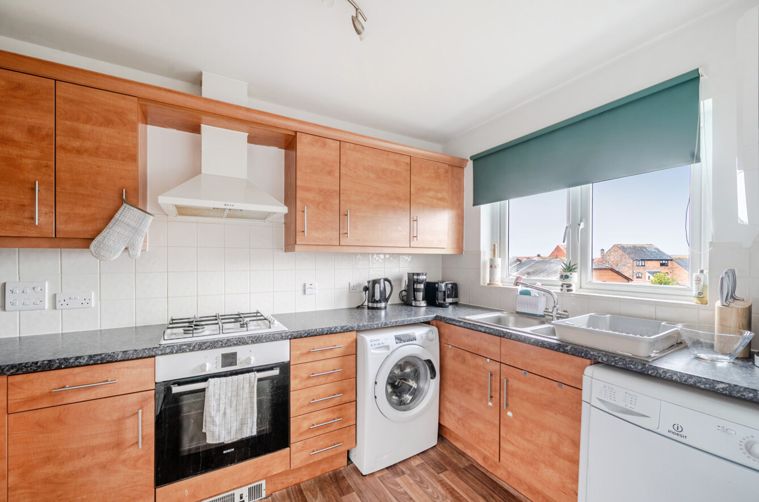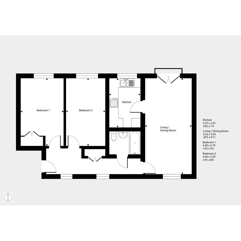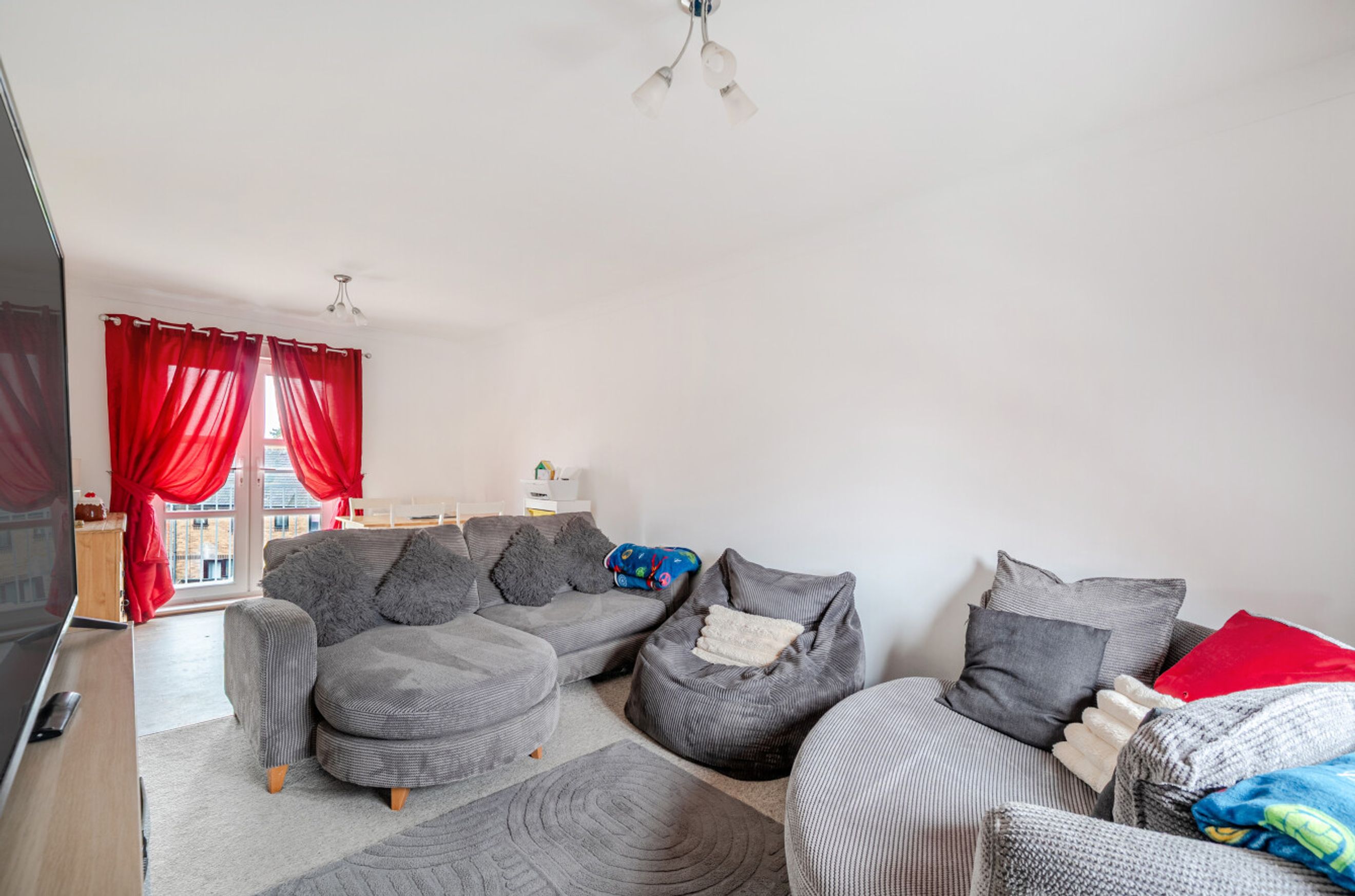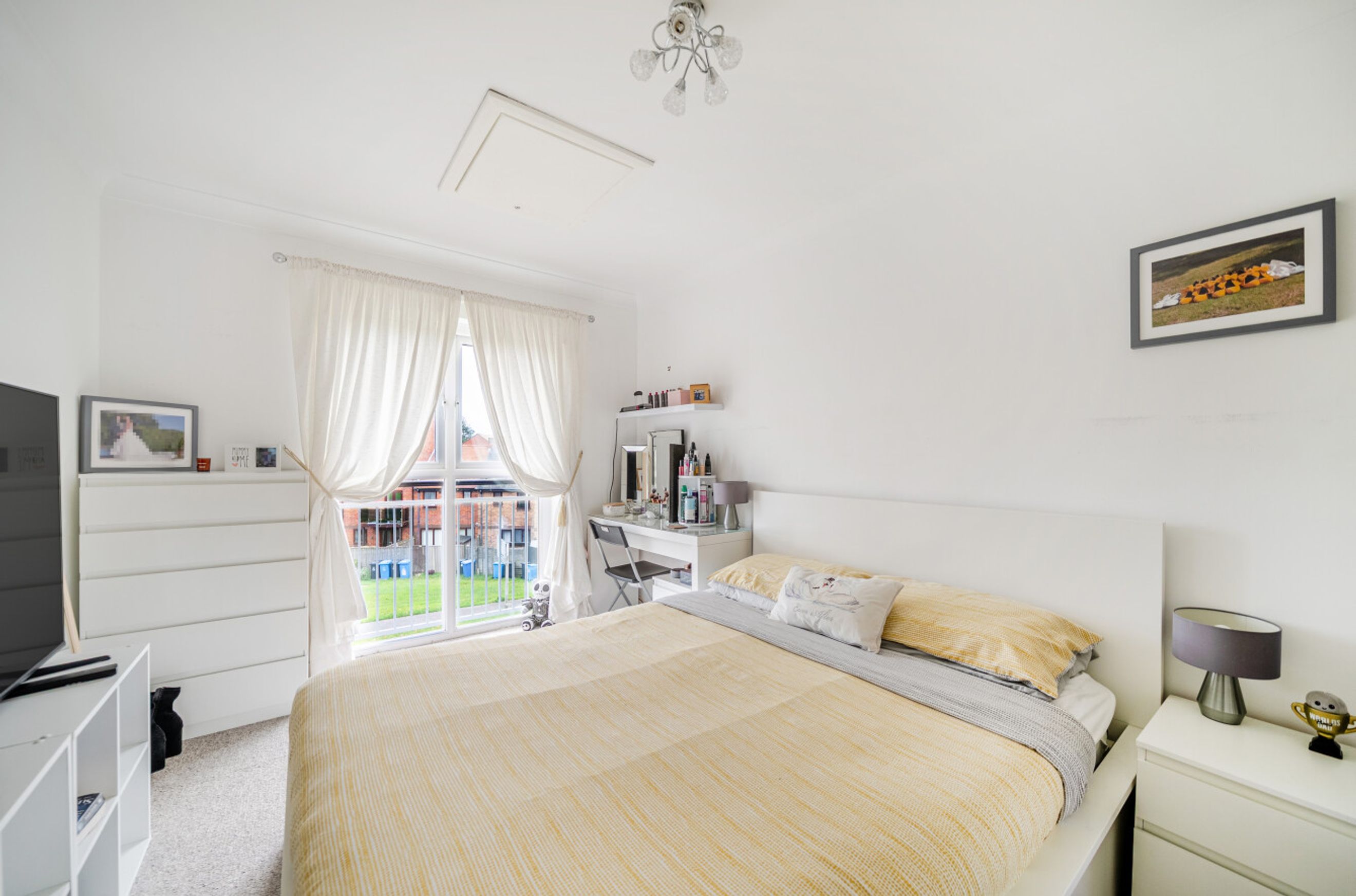 Featuring a spacious living area with a Juliette balcony. The kitchen has an integrated oven, hob and hood. There are two spacious bedrooms, with built-in storage to the master. The bathroom has a modern, white suite.