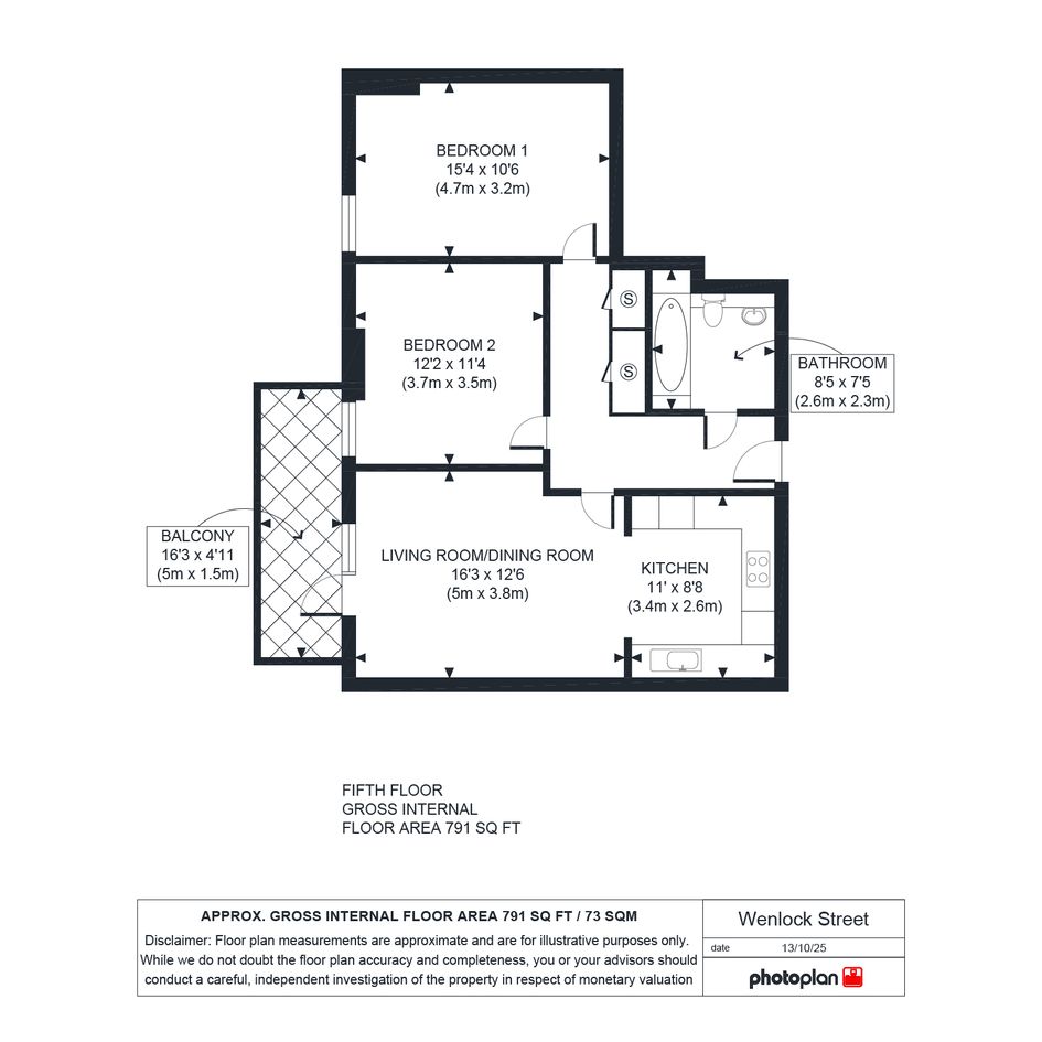 Fifth floor 2 bedroom apartment in London Borough of Hackney, available through Shared Ownership 25% share £181, 250 Full Market Value £725000