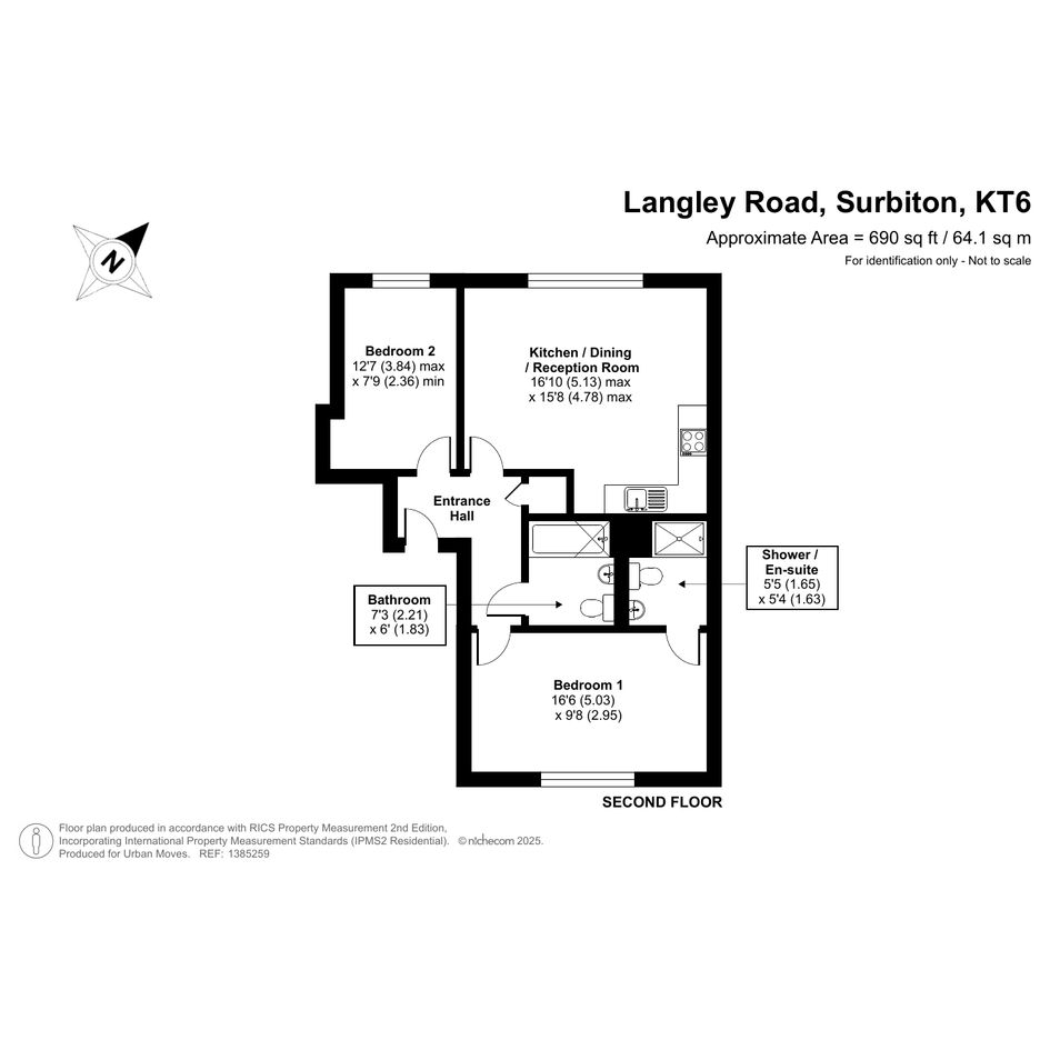 A rare chance to buy a shared-ownership flat in a beautiful, double-fronted Victorian building. The well-presented property is on the second floor and has an open-plan kitchen/reception room and a stylish bathroom with overhead and separate hand-held showers. There is a spacious main bedroom, with a large, south-east-facing window and an en-suite shower room, plus a smaller second double bedroom. Internal insulation, timber-framed sash windows with high performance glazing and a modern gas central heating system help bring energy-efficiency up to current standards. The block has gated, well-maintained grounds including a communal garden and a car park to the rear with a space allocated to this flat. Alternatively, Surbiton Railway Station is only a short walk away for services to a number of destinations including frequent trains into Waterloo. St Matthew's CofE Primary School is very close, and Ofsted-rated 'Good' plus there are several other well-thought-of schools, both primary and secondary, in the local area.