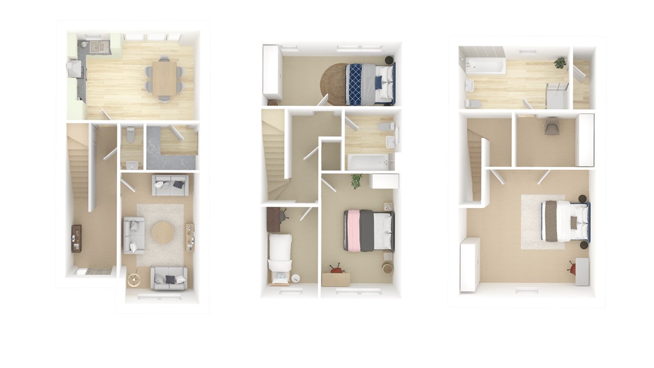 On the first floor there are two double bedrooms plus a single and shared bathroom, while on the second floor you’ll find a spacious master bedroom, an en suite bathroom, plus dressing area.