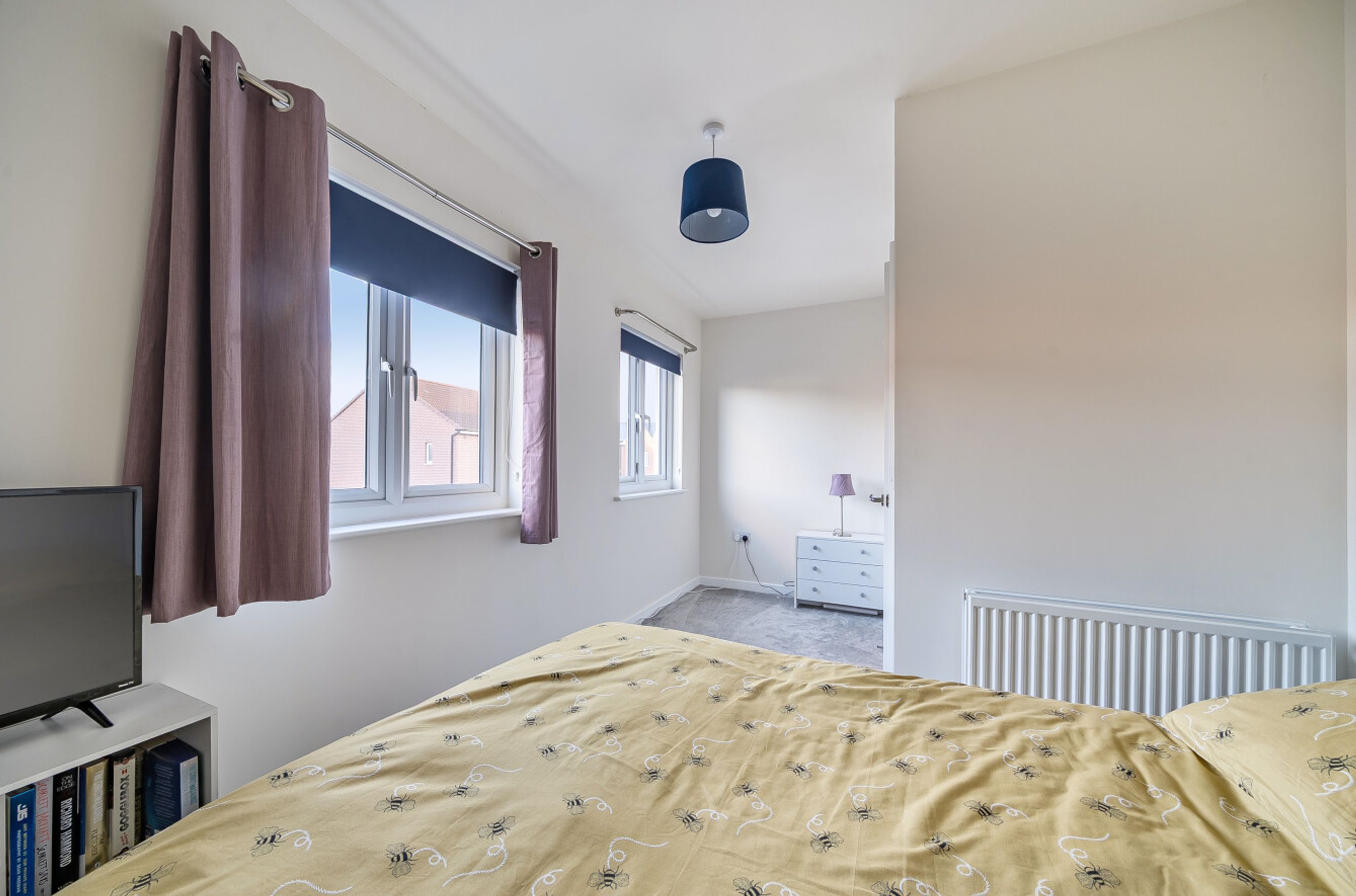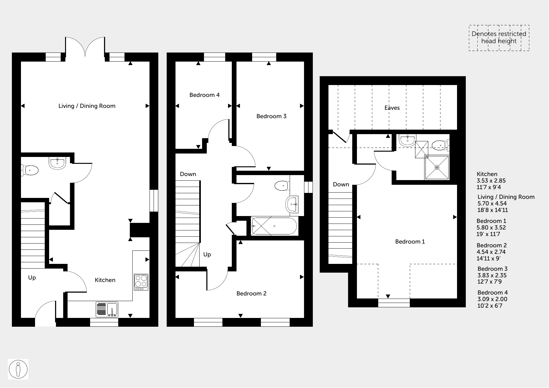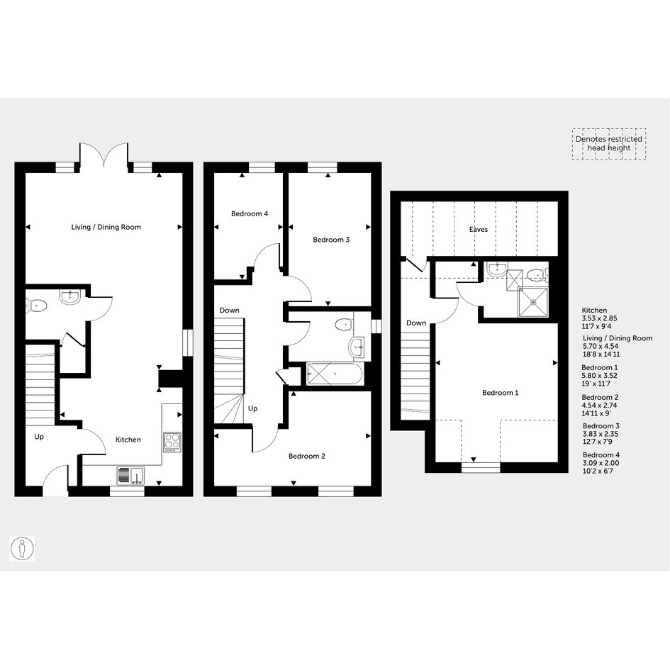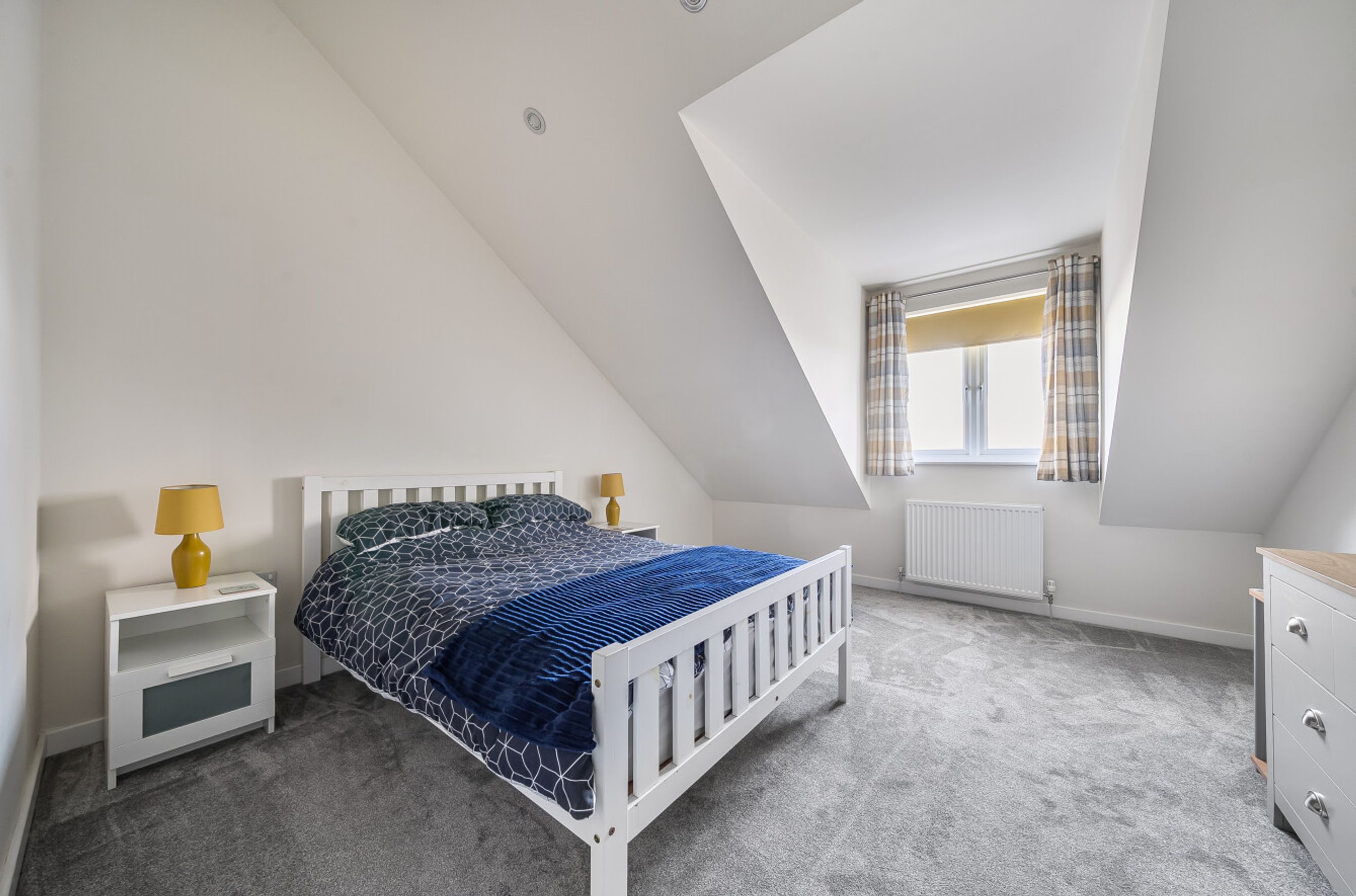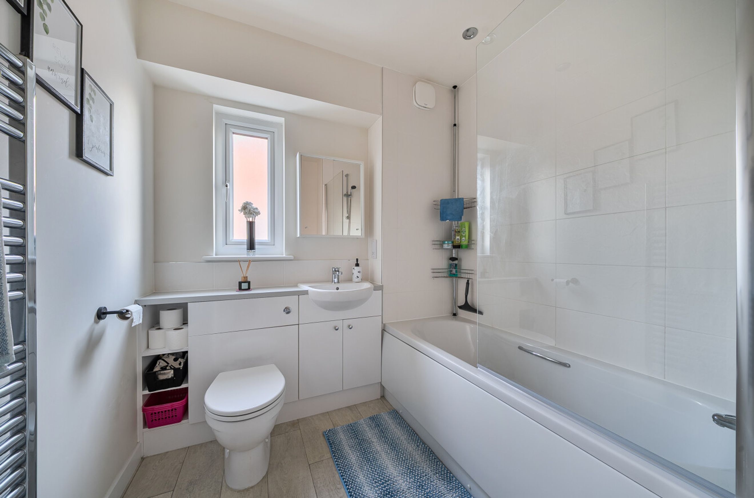 On the first floor, there are three bedrooms and a modern, white bathroom suite.