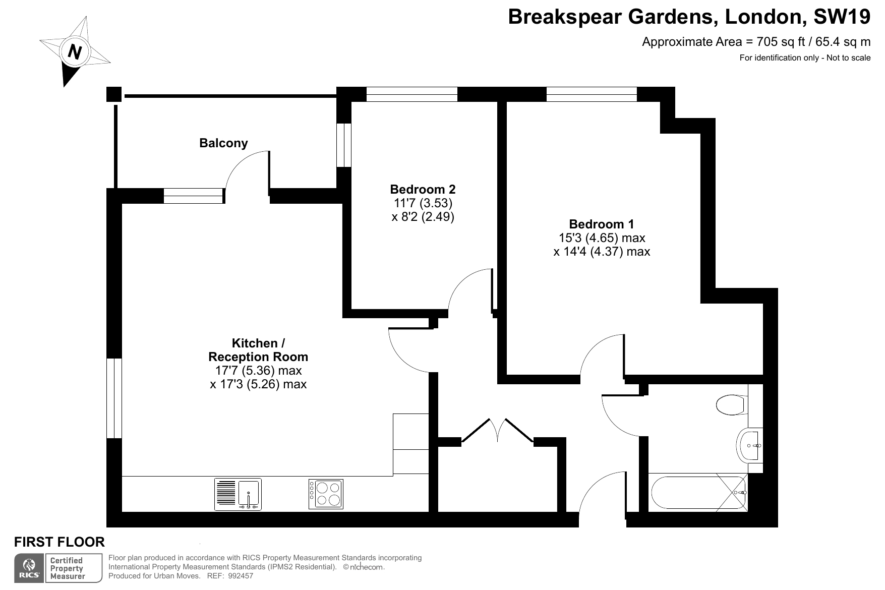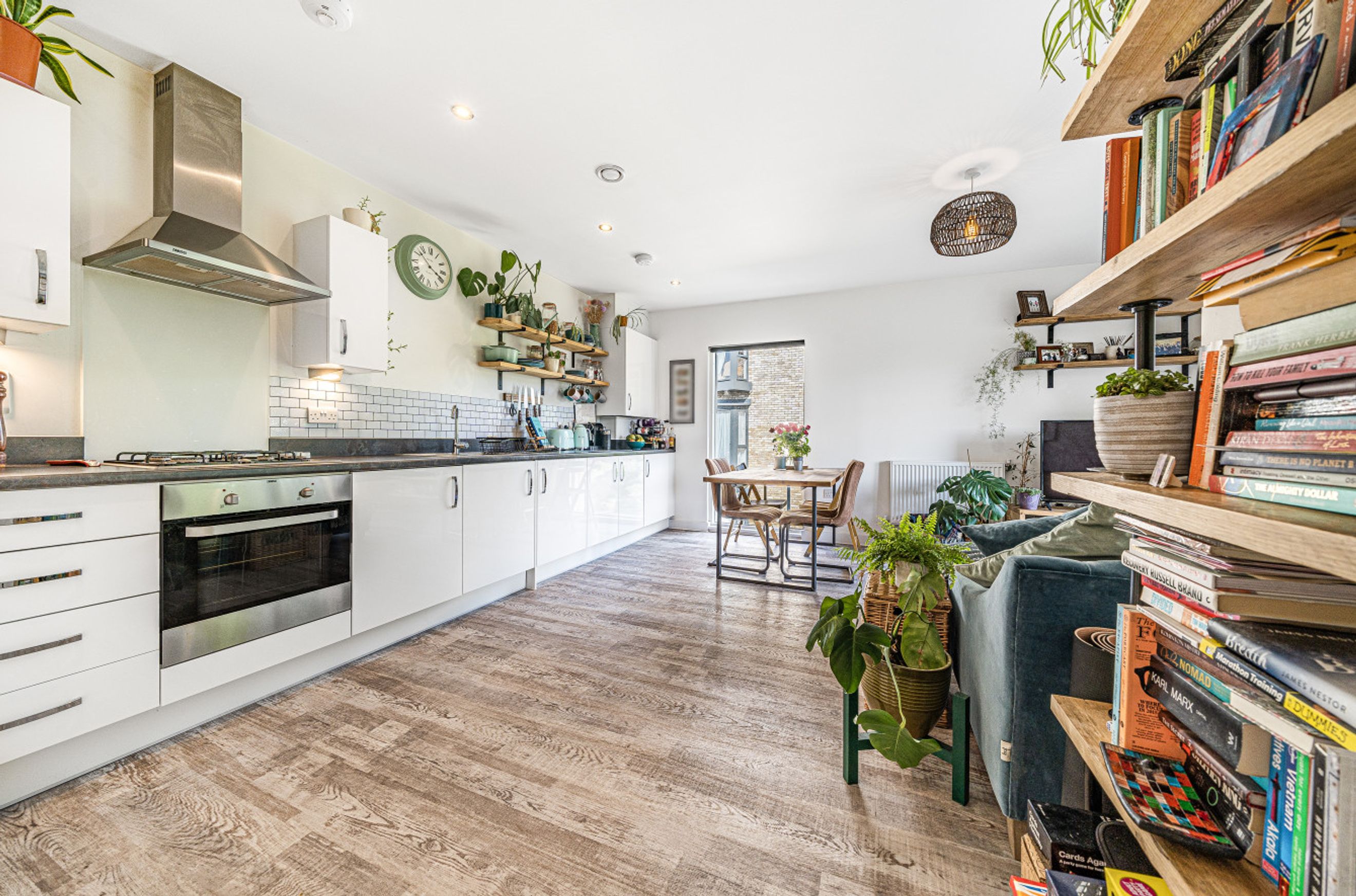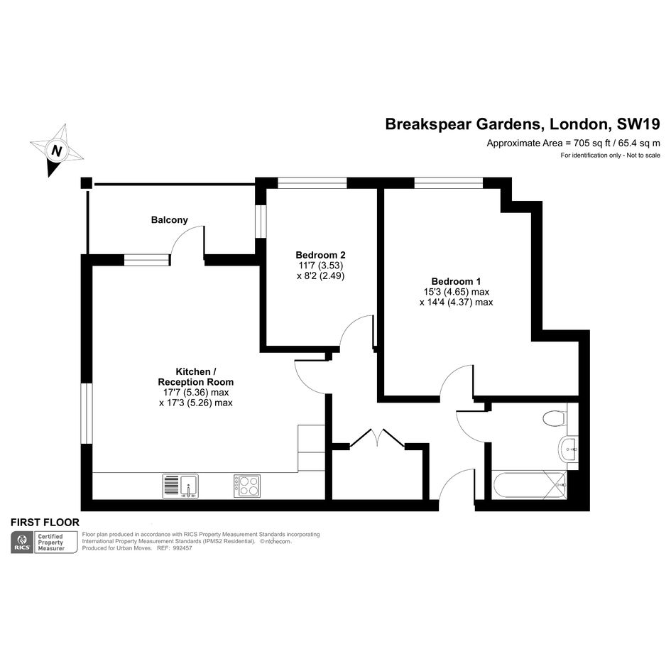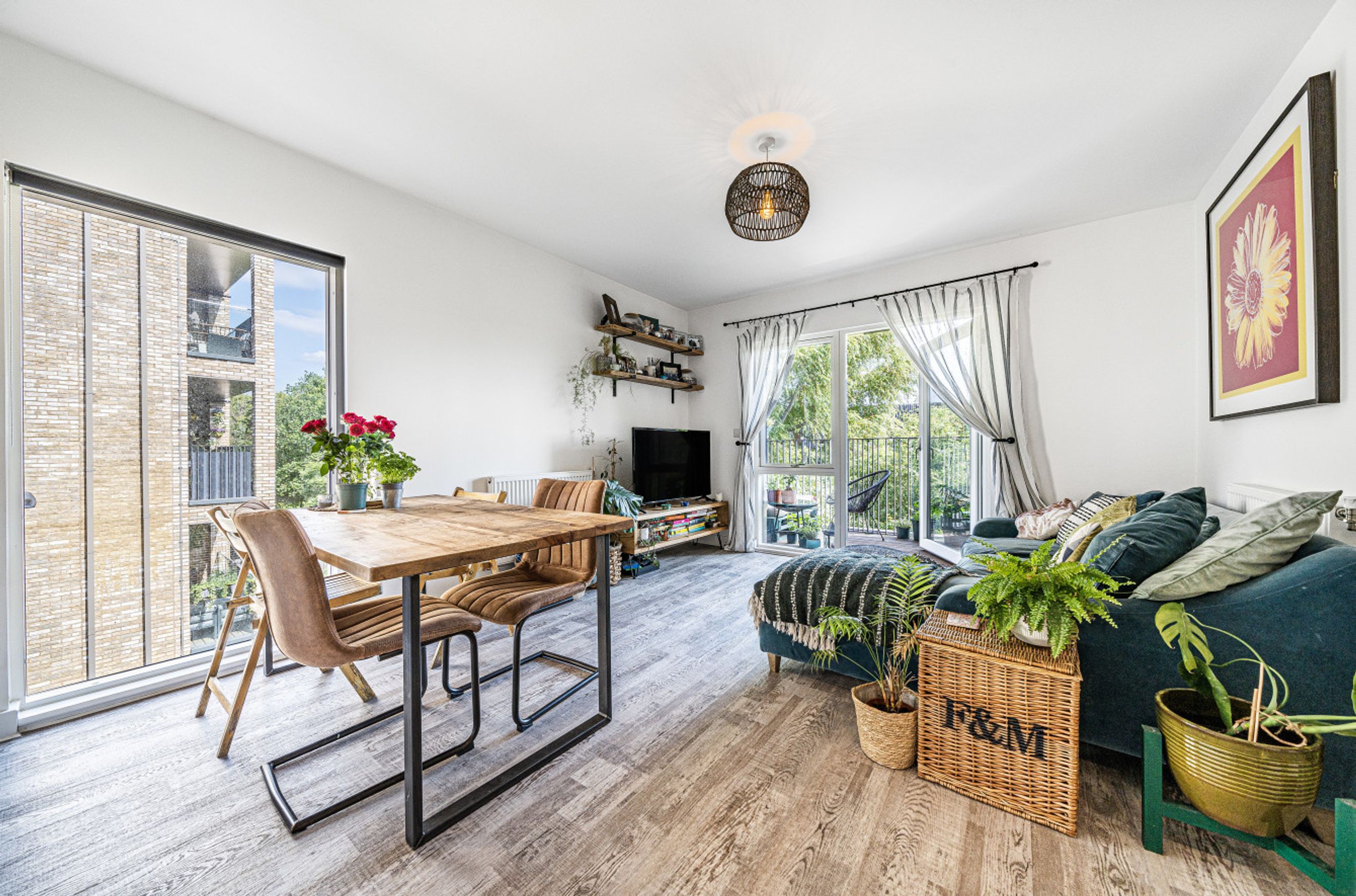 A well-proportioned and stylishly-presented apartment on the first floor of this recently-constructed building. The property has a dual-aspect reception room with spacious, open-plan kitchen area featuring sleek, white units and integrated appliances. A door leads out onto a rear (south/south-east) facing balcony. There is a generously-sized main bedroom plus a second comfortable double bedroom, a pristine, fully-tiled bathroom and a large storage/utility cupboard in the entrance hallway. Well insulated walls, high performance glazing and a modern gas central heating system make for a very good energy-efficiency rating. Bramah Court is part of a gated development that borders a small nature reserve just off Fortescue Road. Colliers Wood Station, for Northern Line services, is just a short walk away. Nearby Singlegate Primary School was Ofsted-reviewed in March 2024 and rated 'Outstanding'.