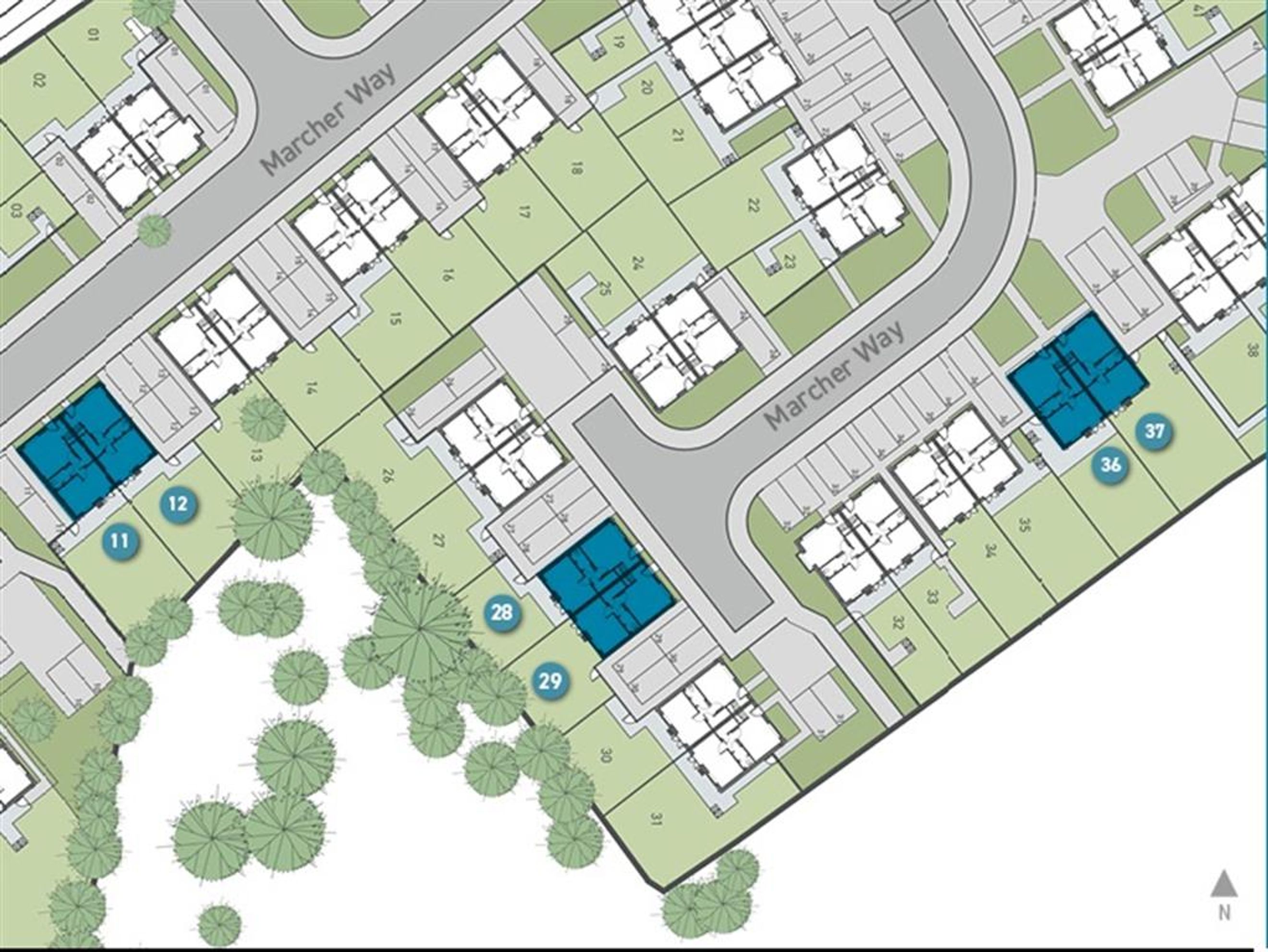All of the properties benefit from allocated off-road parking and are fitted with PV solar panels which can help to reduce carbon emissions as well as reduce utility bills. The two bedroom homes have a spacious living/dining room at the back which looks out on to a private rear garden, a separate kitchen and a useful cloakroom with WC and hand basin on the ground floor. Upstairs are two good-sized double bedrooms and a contemporary style family bathroom.
