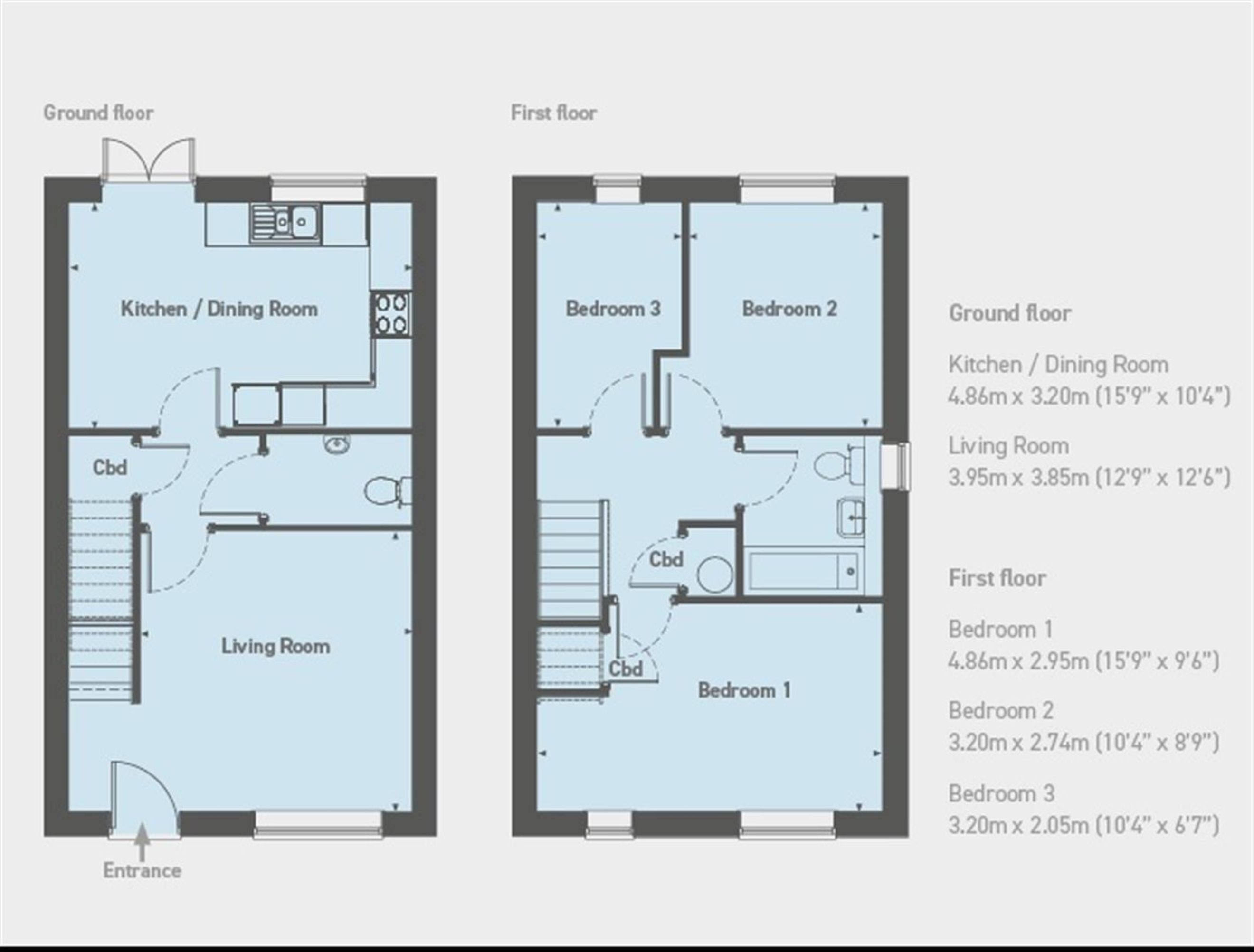 Occupying a larger footprint, the three bedroom properties also have a spacious living/dining room, a separate kitchen and a cloakroom on the ground floor, whilst upstairs are a family bathroom, two double bedrooms and a single bedroom which could easily serve as a home office.