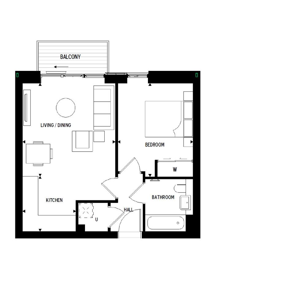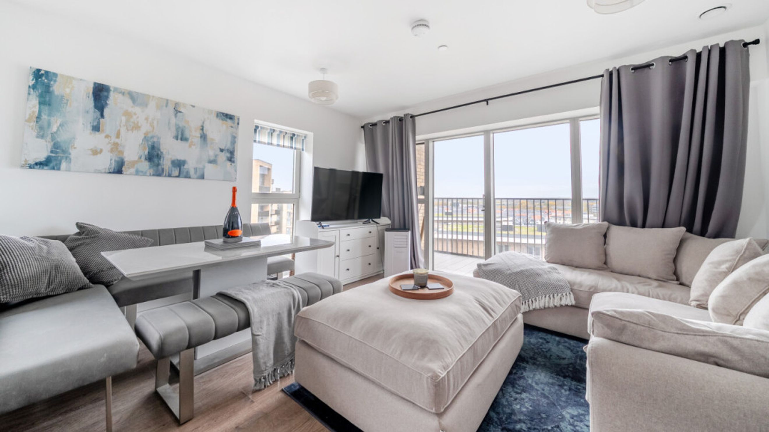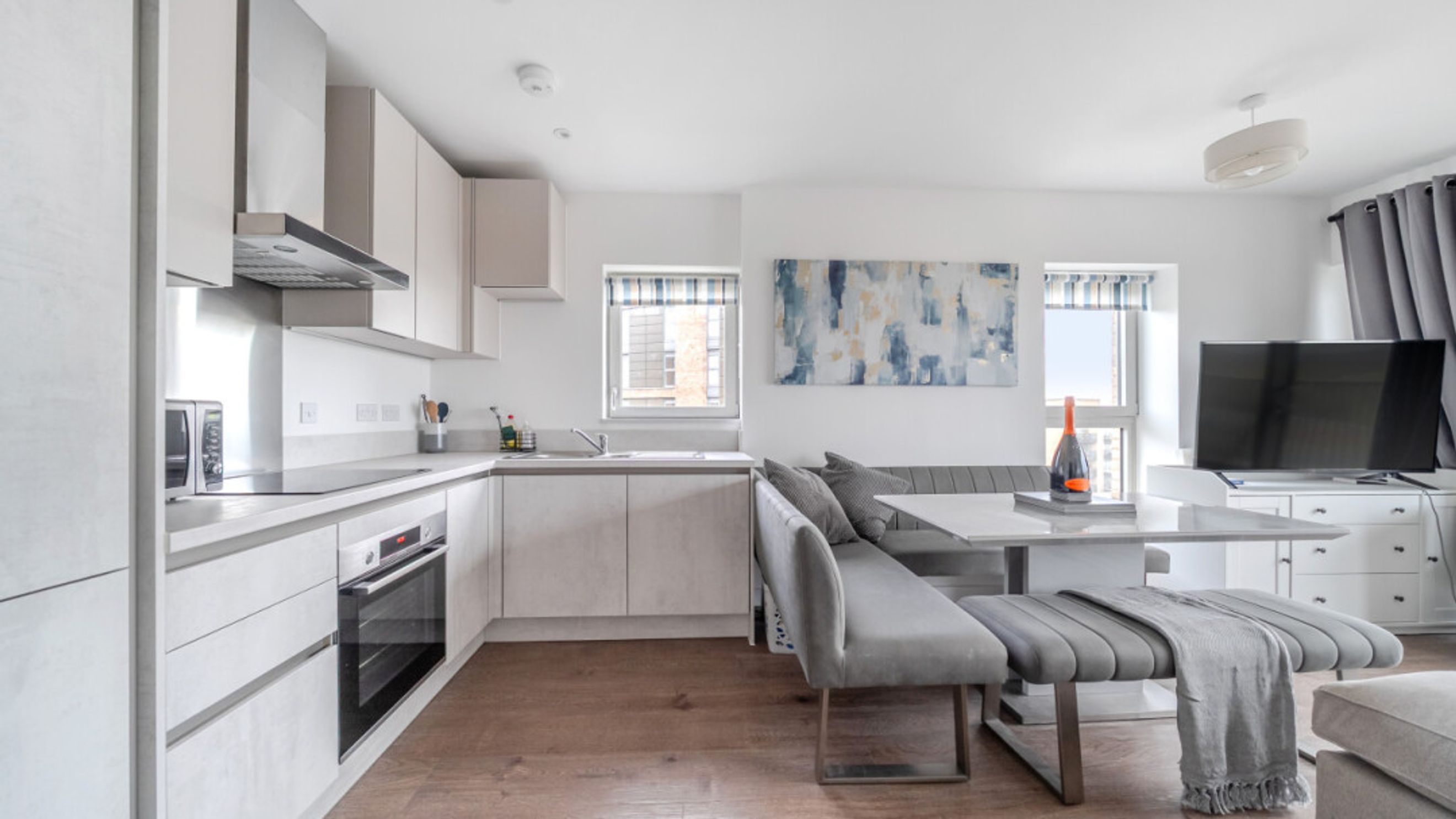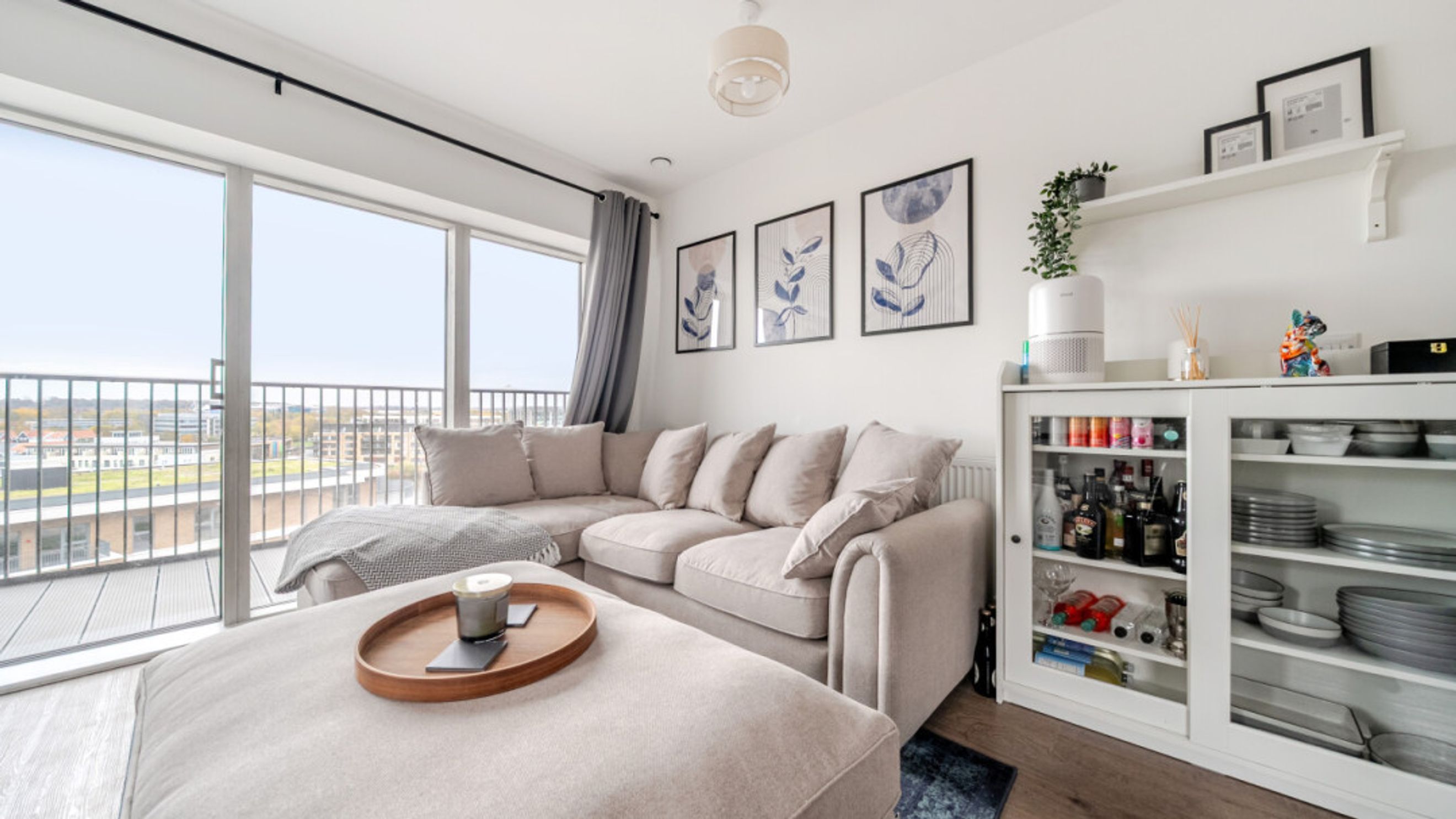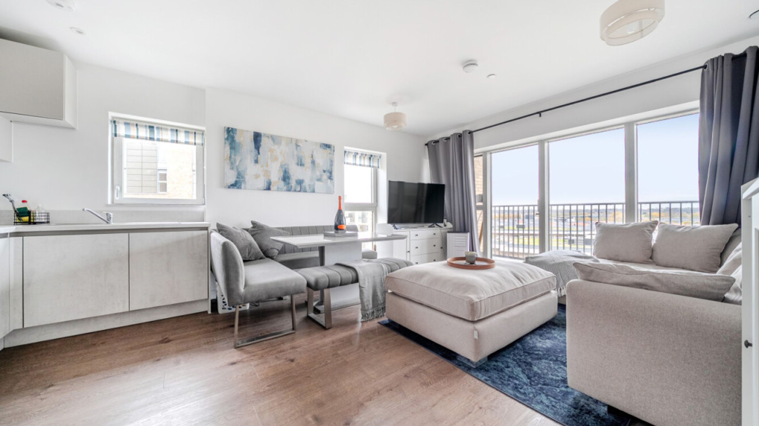This apartment comprises a generous open plan living area incorporating a modern kitchen with fully integrated appliances including oven, induction hob, fridge/freezer, dishwasher and integrated extractor. This opens onto a private balcony with far reaching views. A well proportioned bedroom benefits from a built in wardrobe with mirrored sliding doors, and a contemporary bathroom completes the accommodation.