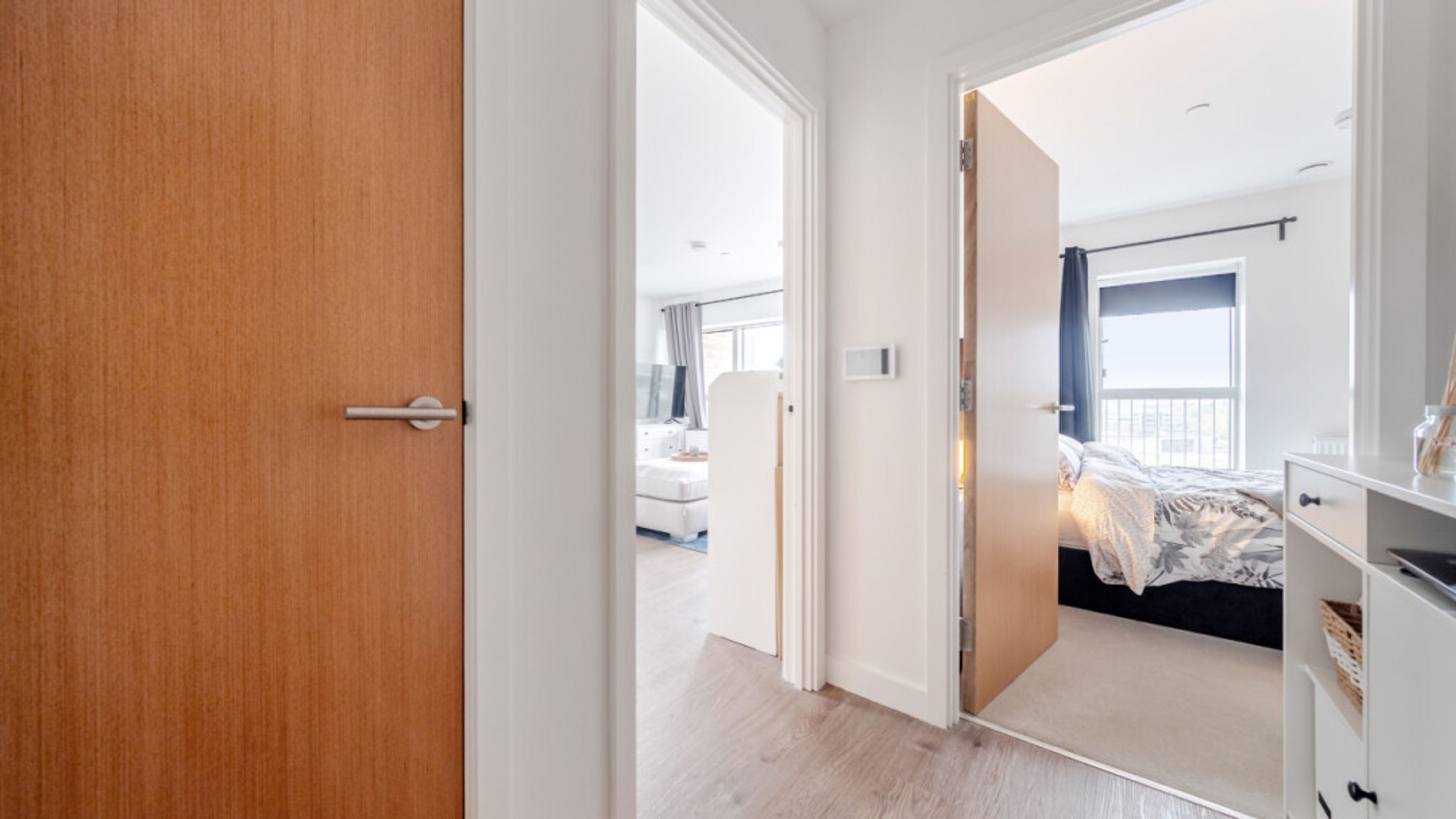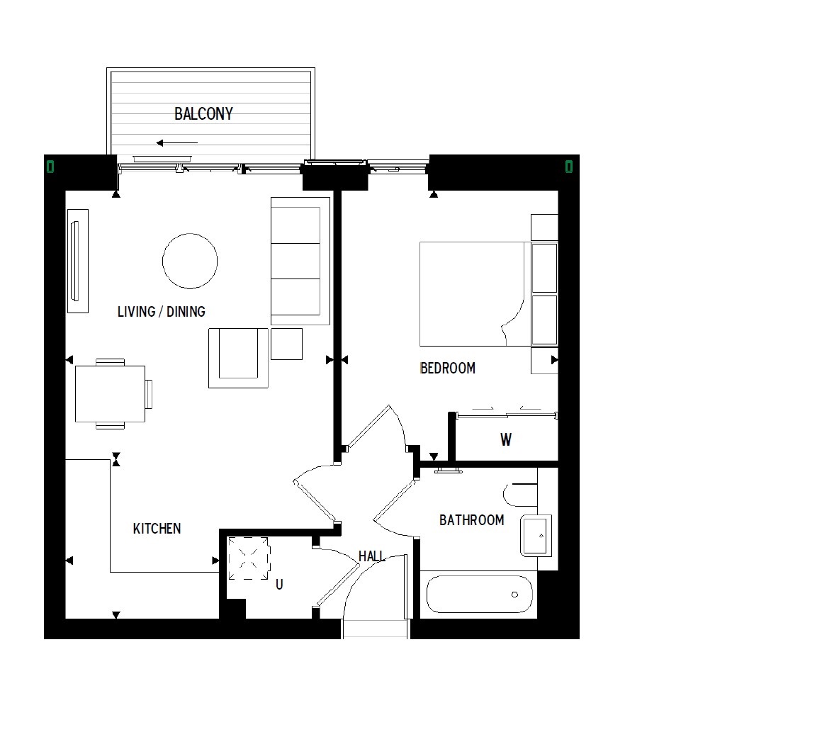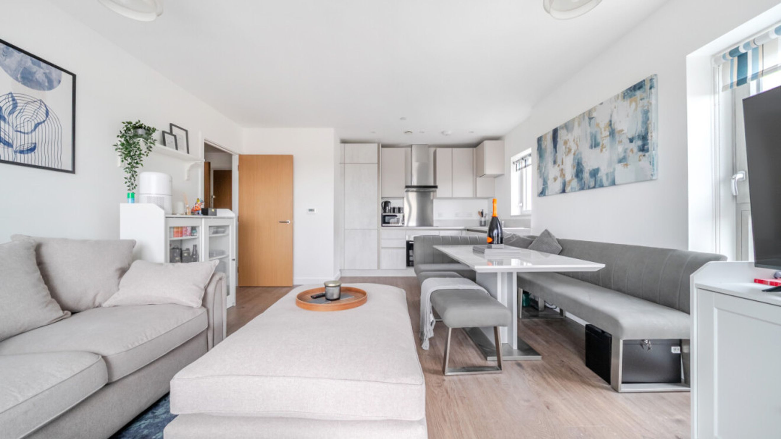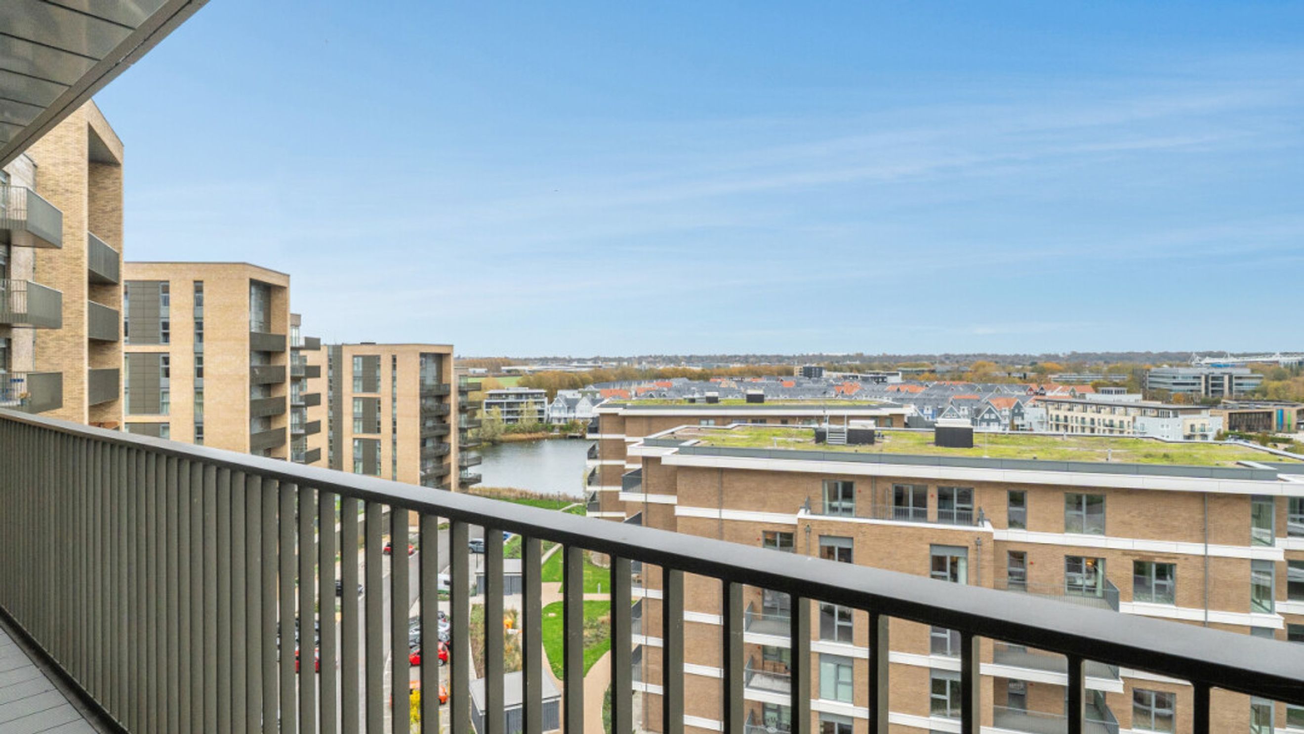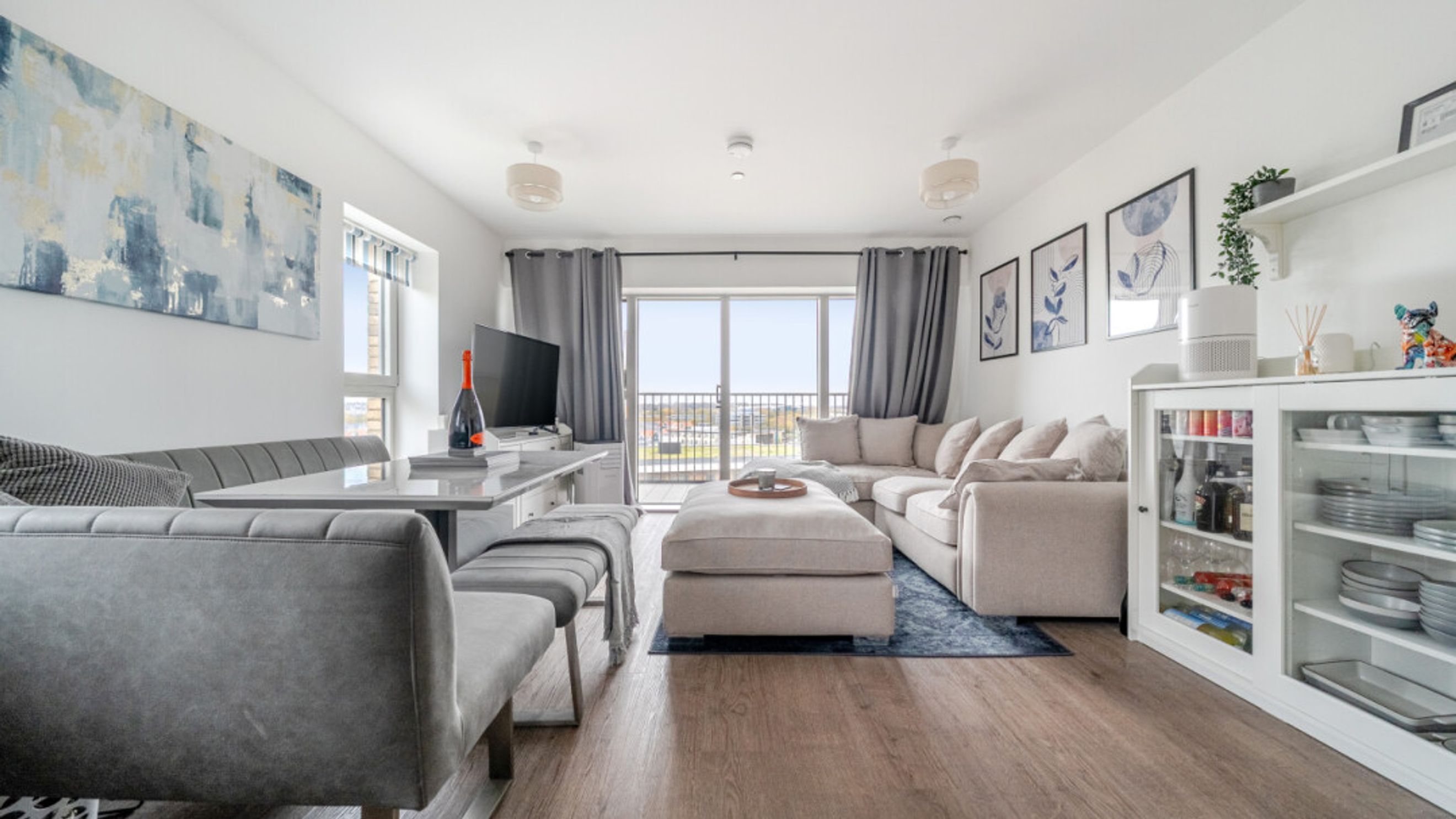 This apartment comprises a generous open plan living area incorporating a modern kitchen with fully integrated appliances including oven, induction hob, fridge/freezer, dishwasher and integrated extractor. This opens onto a private balcony with far reaching views. A well proportioned bedroom benefits from a built in wardrobe with mirrored sliding doors, and a contemporary bathroom completes the accommodation.