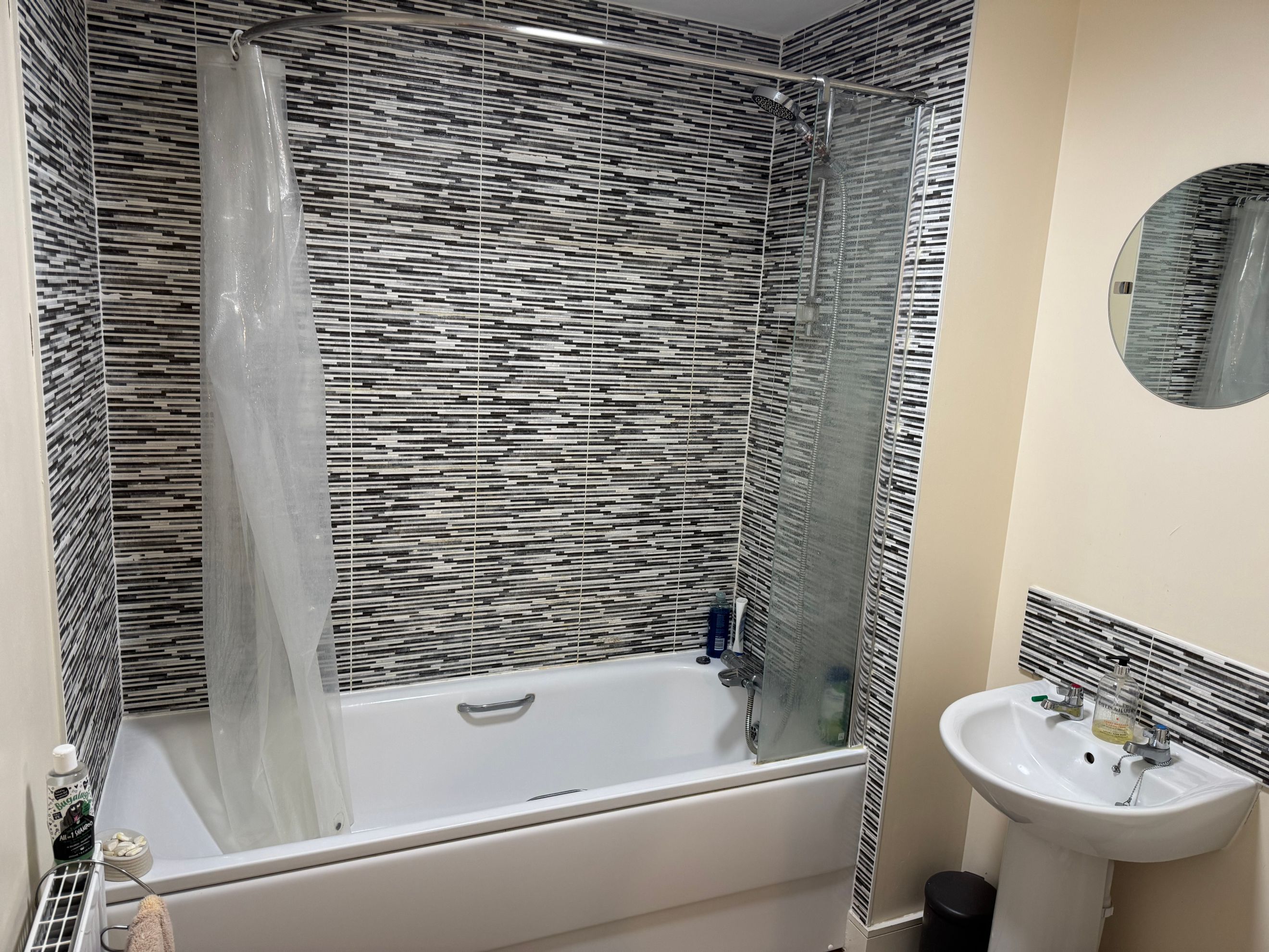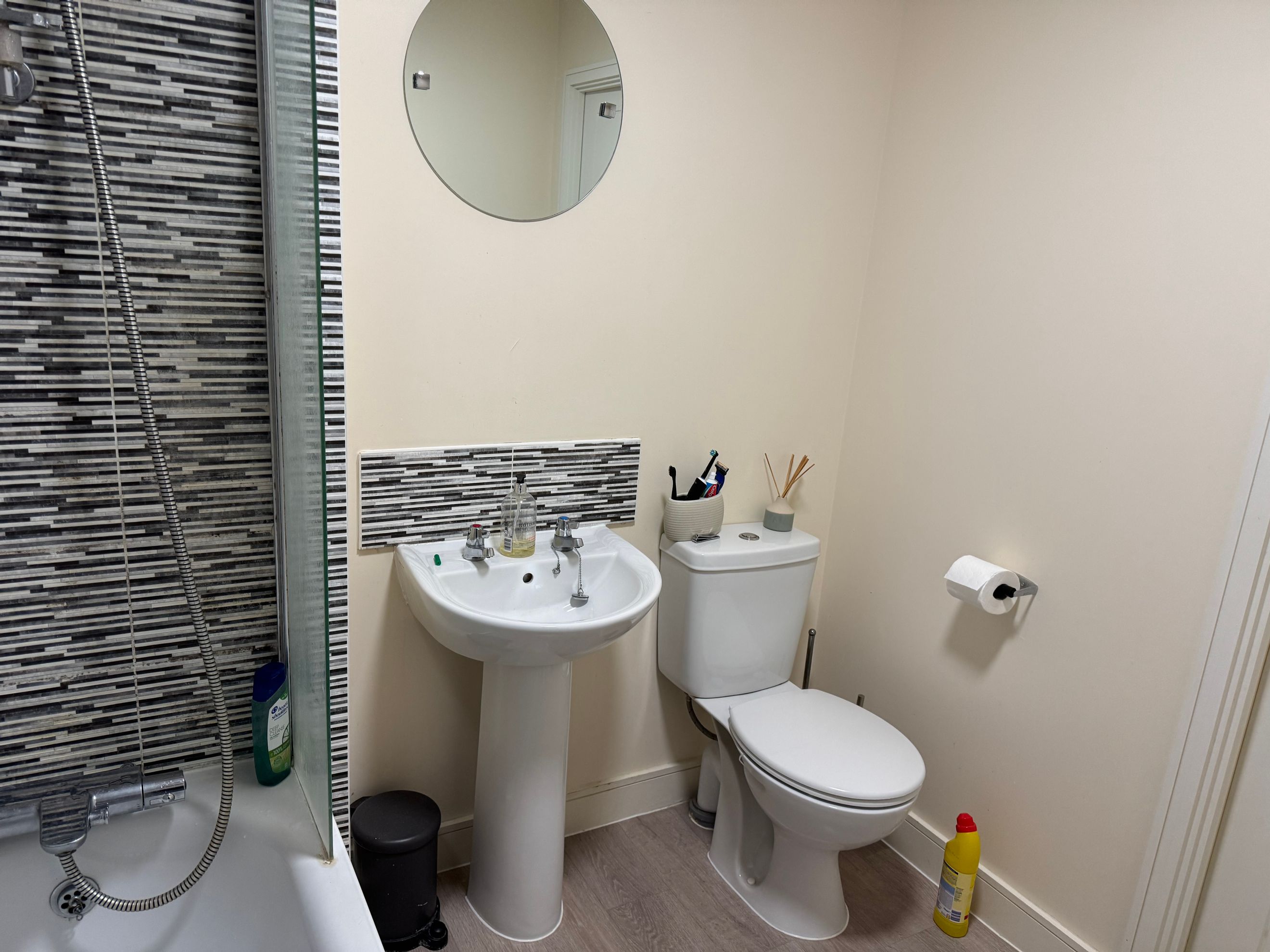 Upstairs are 2 double bedrooms, one with built-in storage, and a family bathroom with a three-piece suite and shower over the bath.