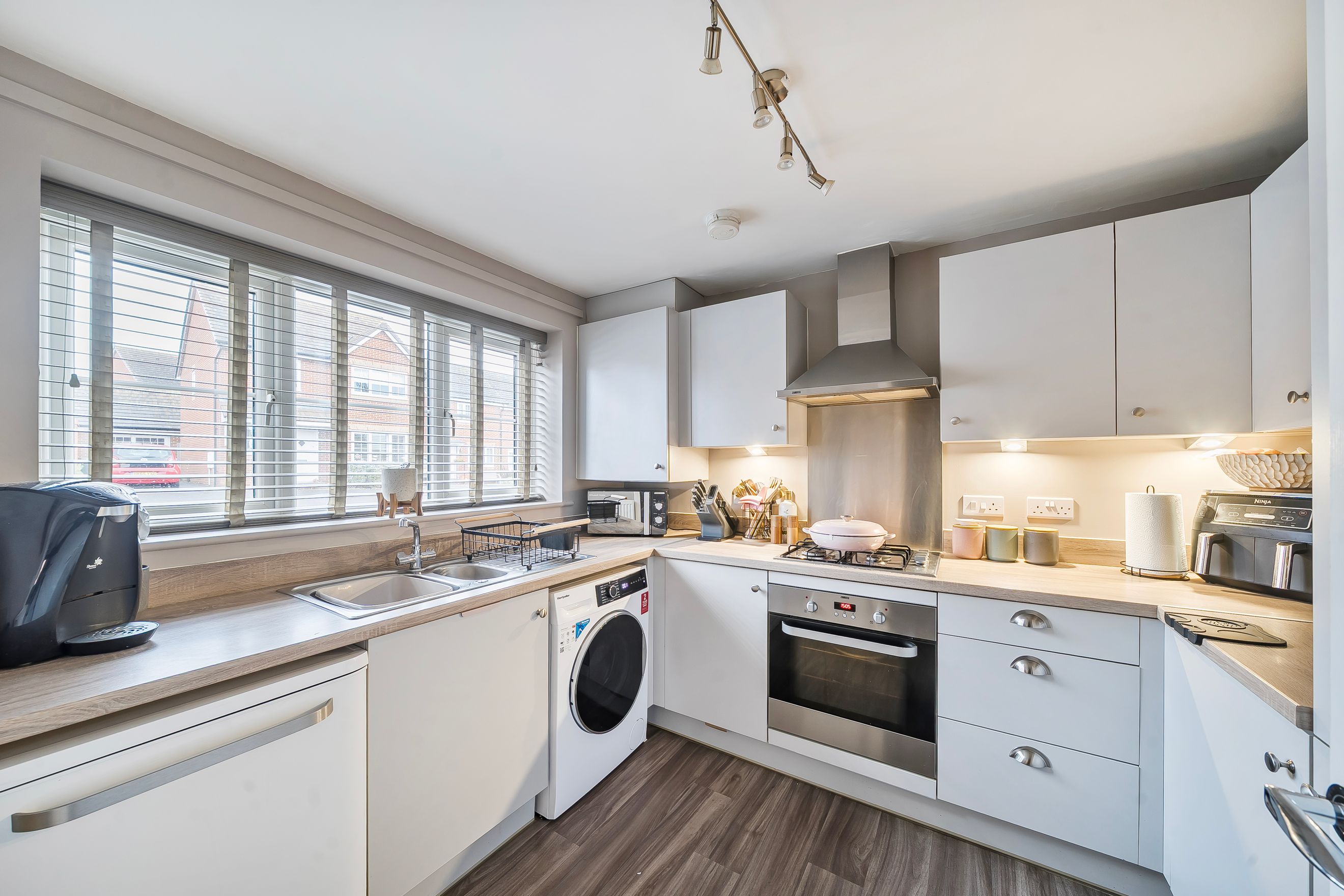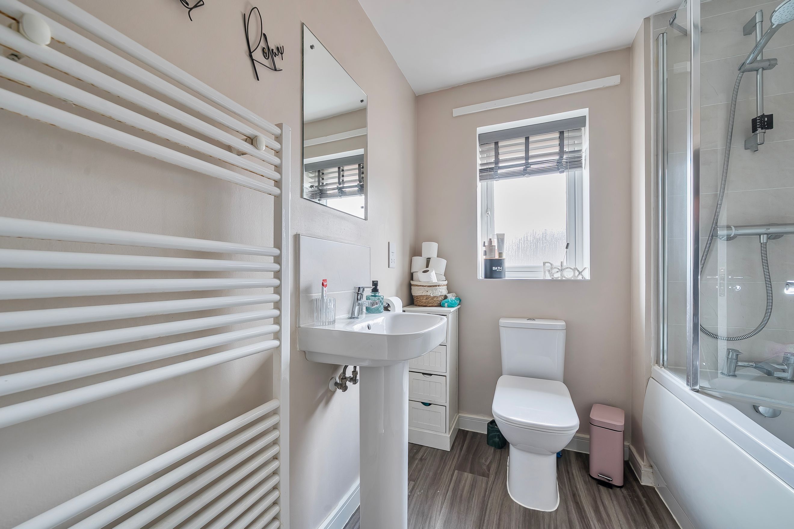 Upstairs, there are three comfortable bedrooms. The bathroom has a modern, white suite. Two parking spaces are provided, as well as your own back garden.