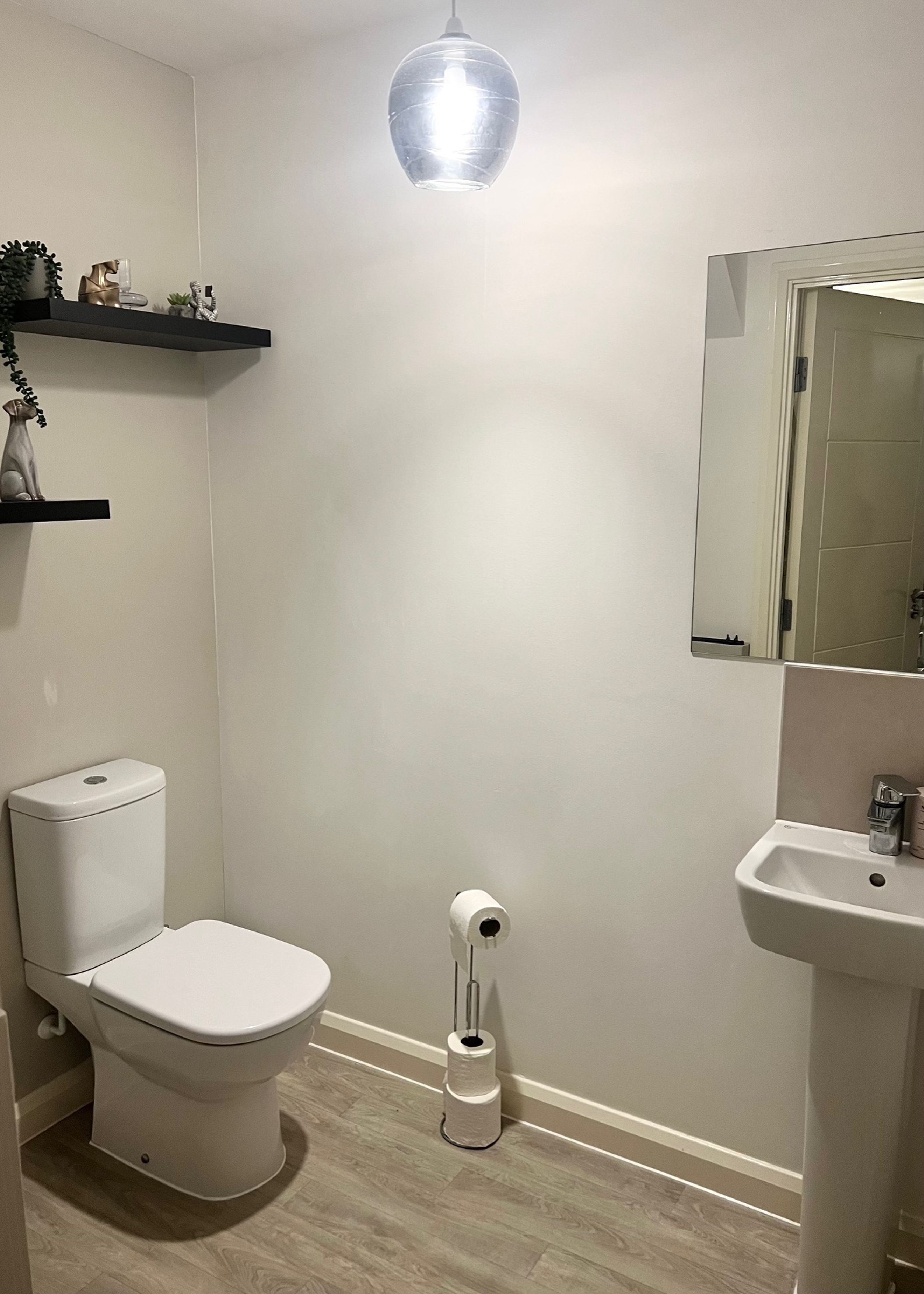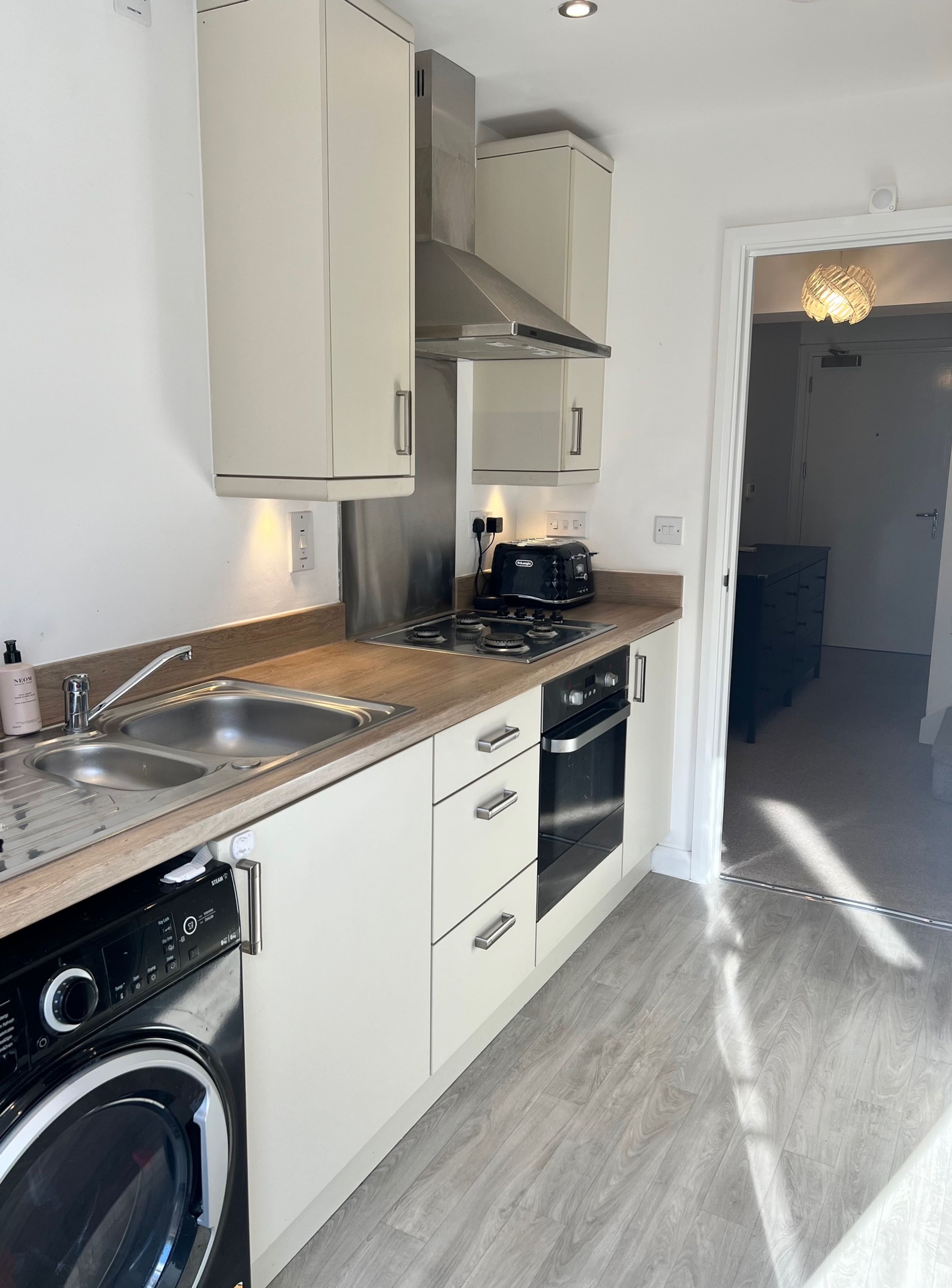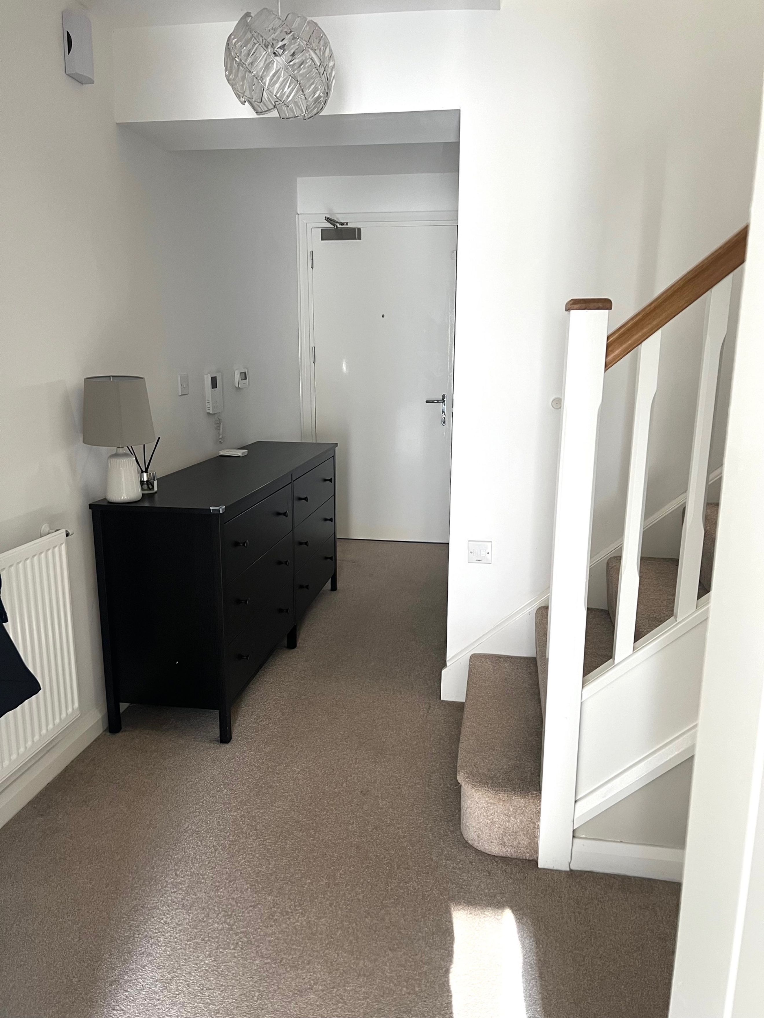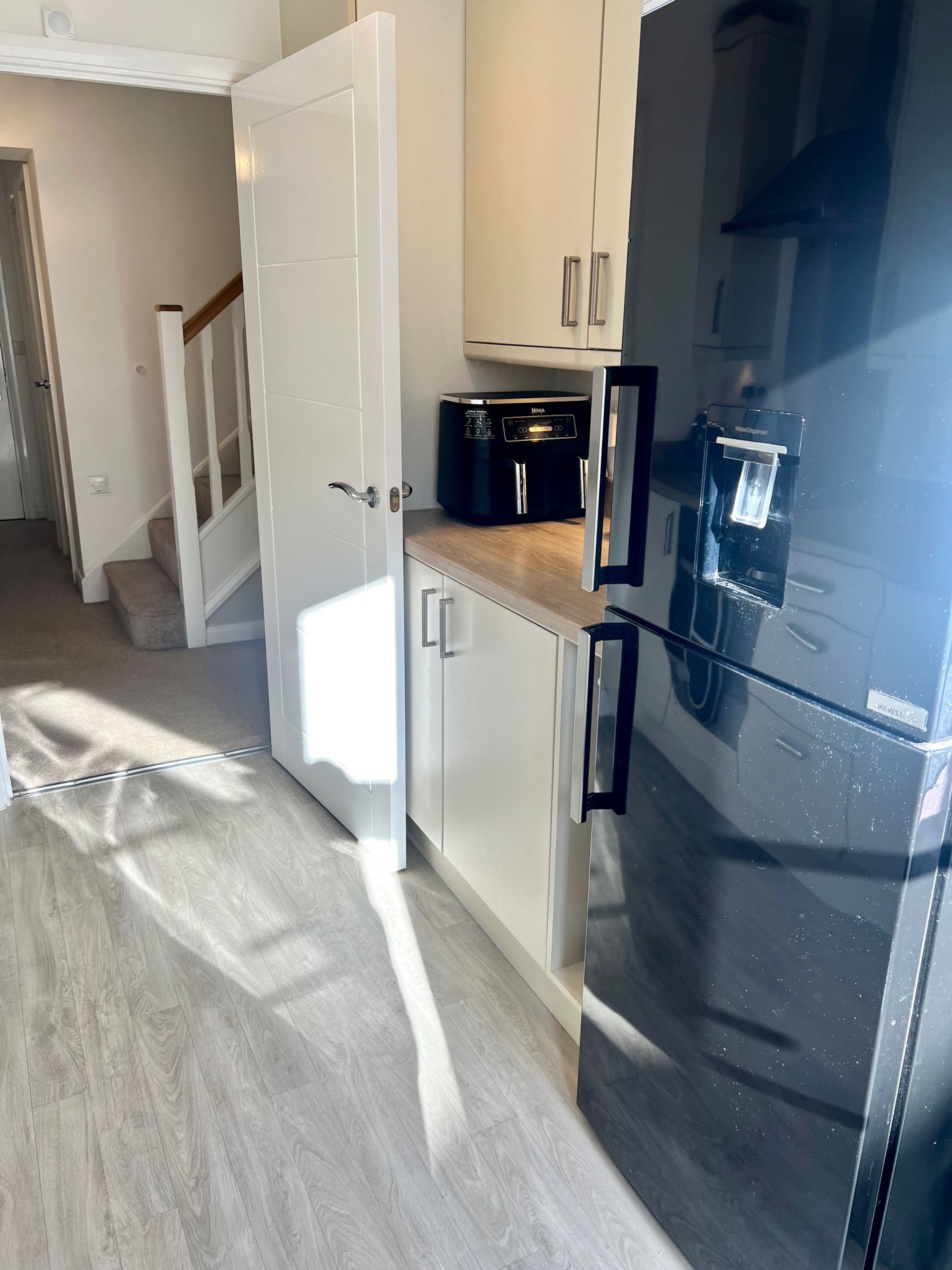 On entering, you are welcomed by a hallway with a useful storage cupboard, leading to a spacious living room and a separate fitted kitchen complete with oven, hob, and extractor as well as space for your own washing machine and fridge freezer. The ground floor also features a second bedroom, a cloakroom, and understairs storage.