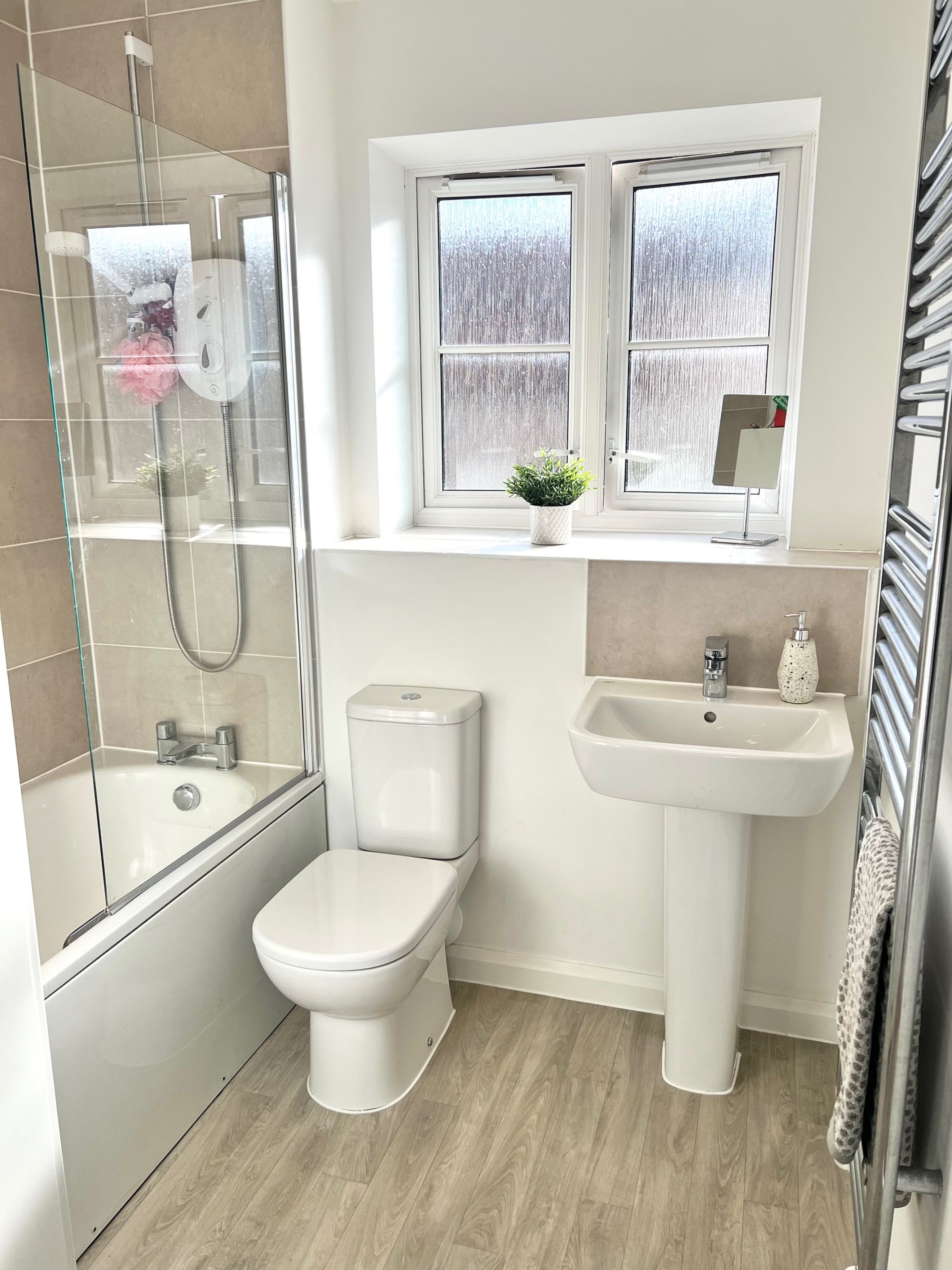Upstairs, you’ll find 2 additional storage cupboards, a bathroom with a three-piece suite and window, and a generous double bedroom with built-in storage.