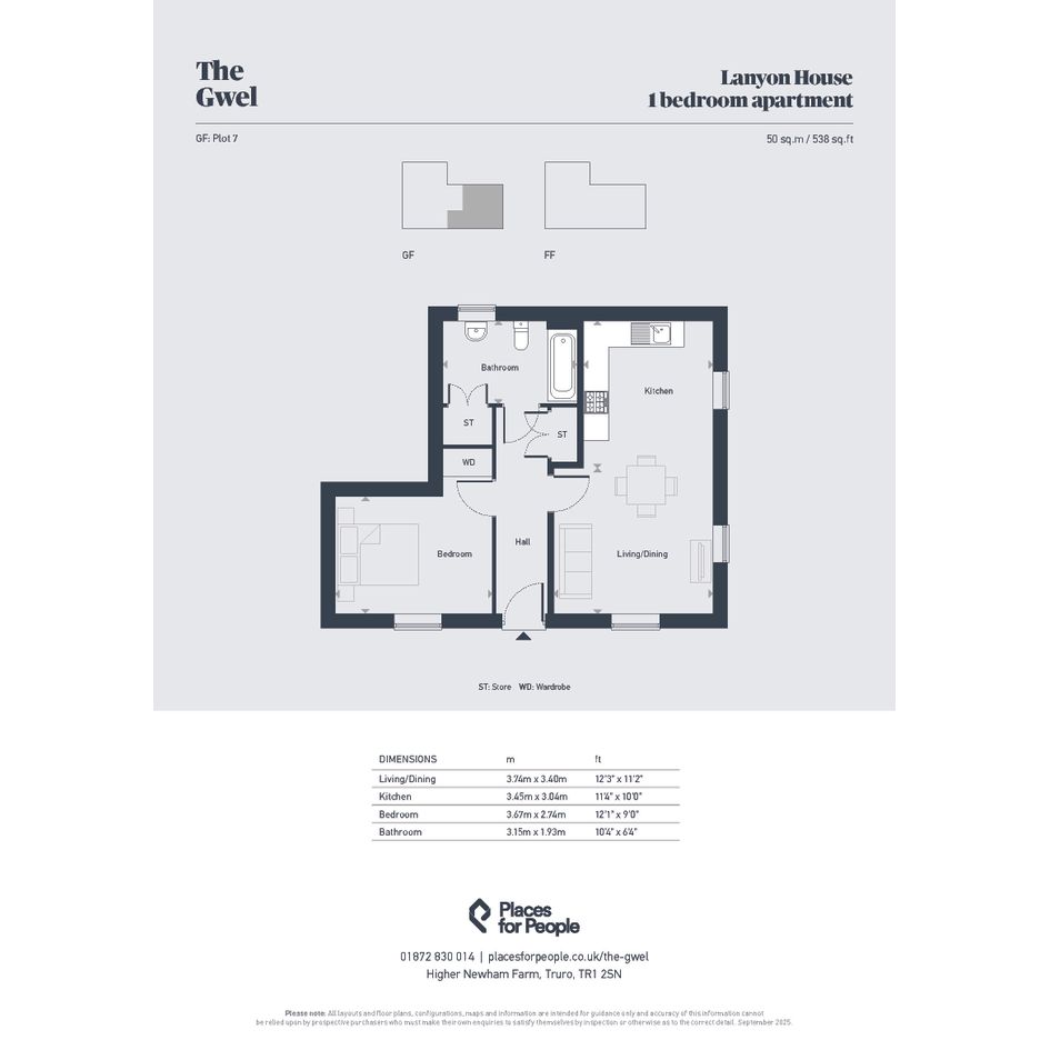 Plot 7 - 1 bed Ground Floor Apartment - Lanyon House