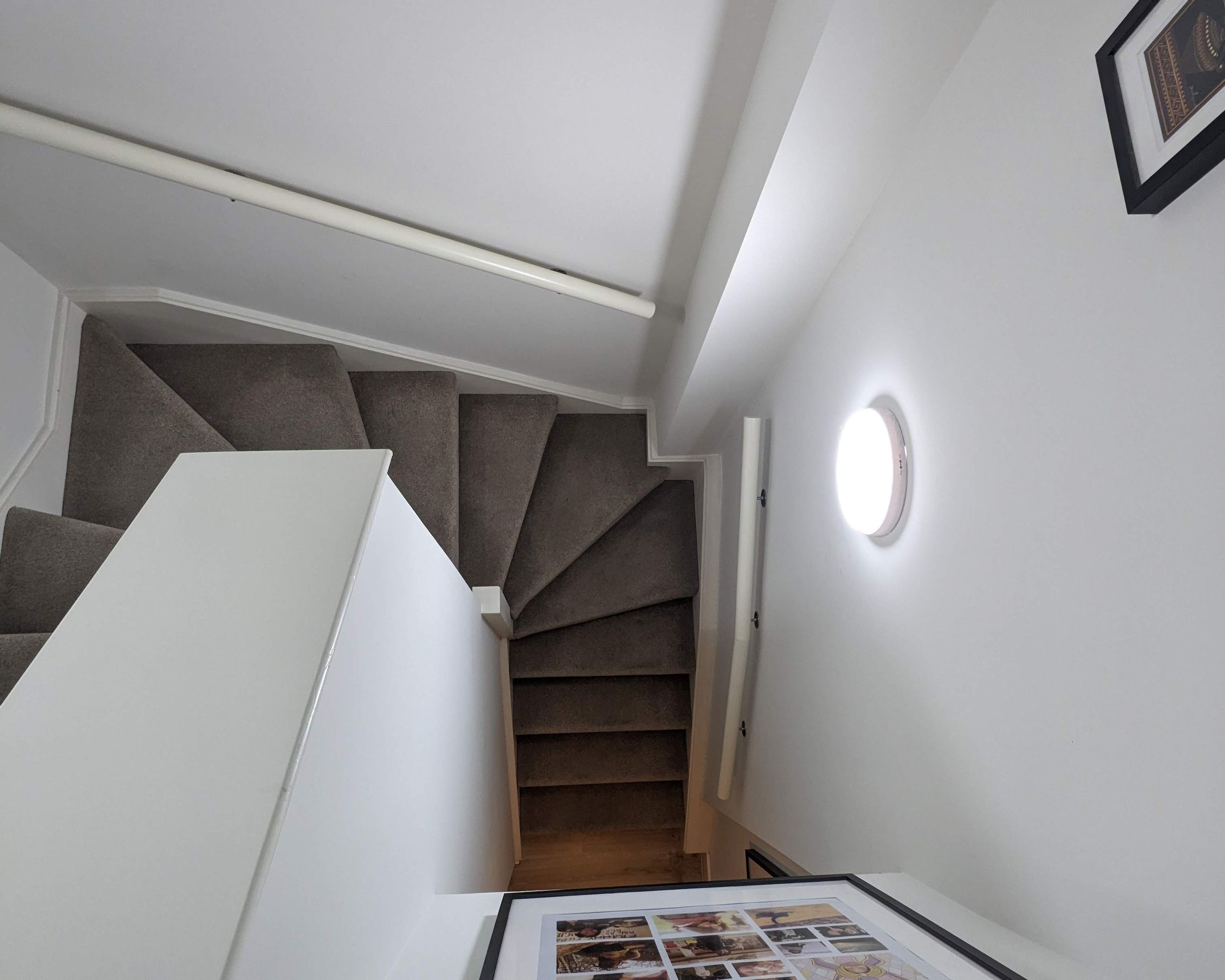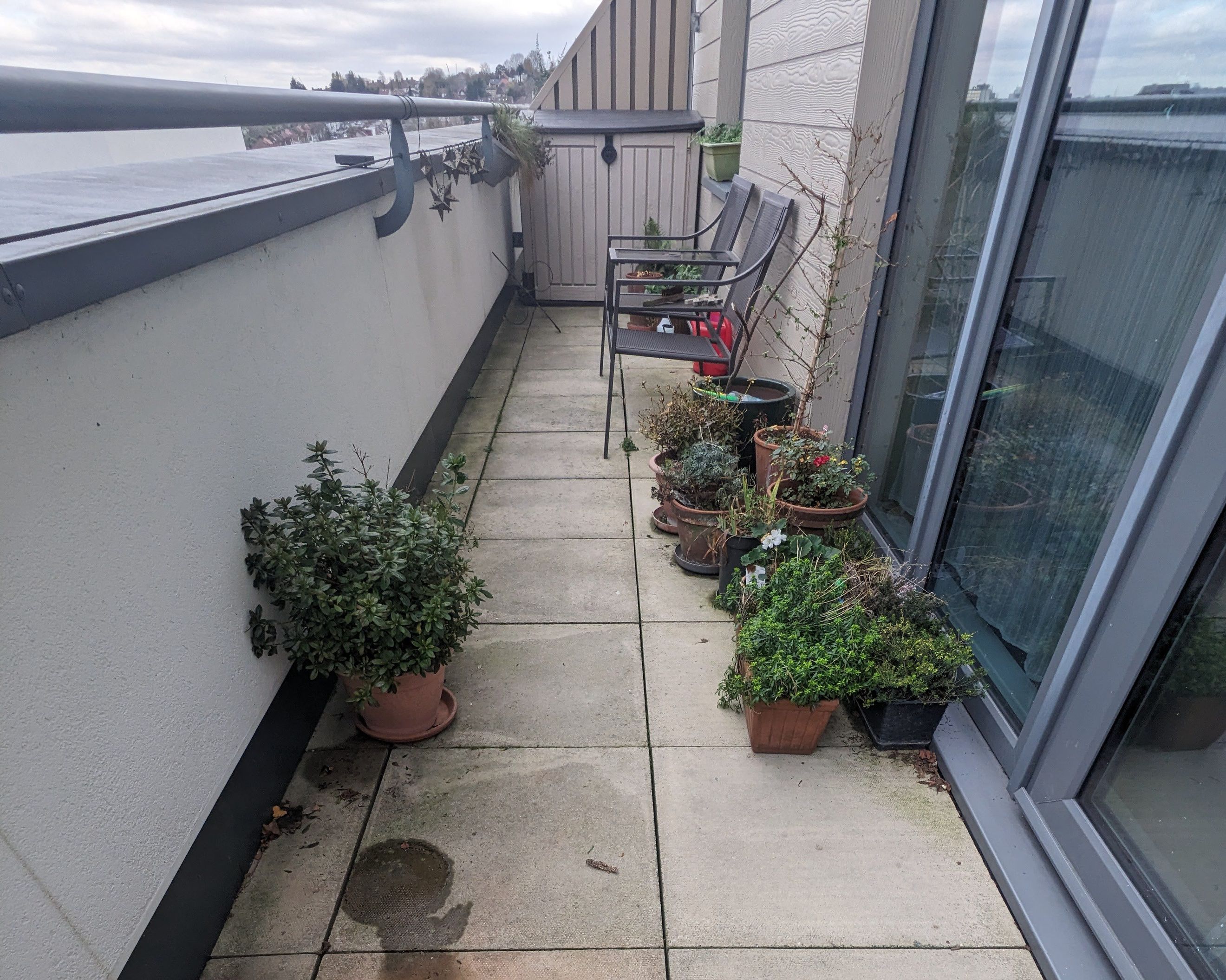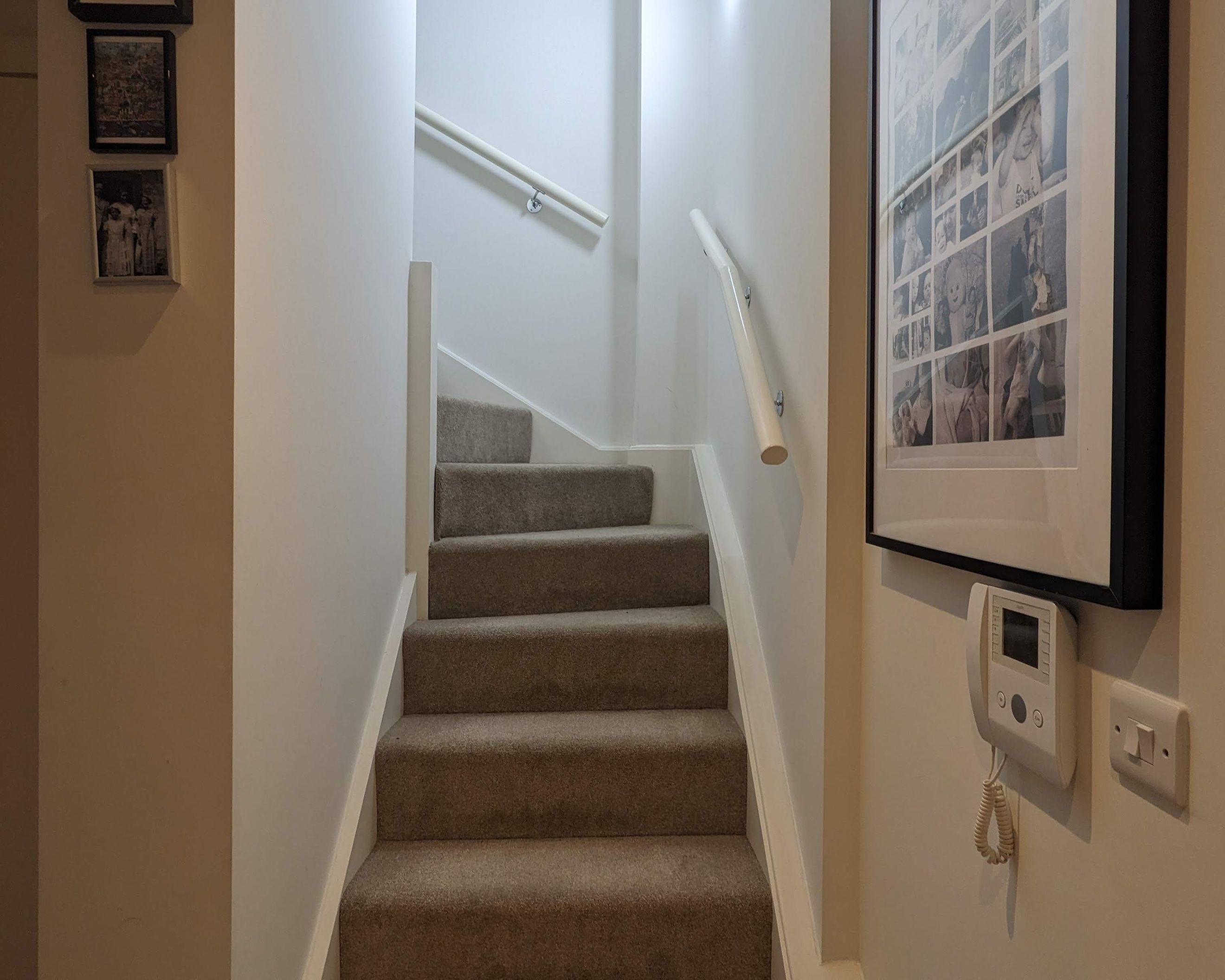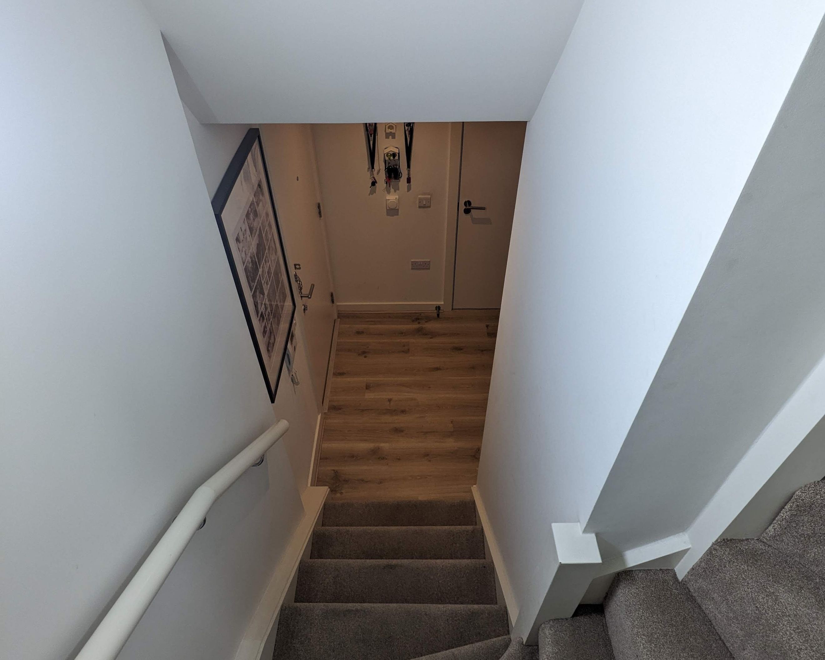 Upstairs, the landing leads to three well-proportioned bedrooms, along with a modern bathroom finished in a clean, neutral style. A standout feature of this home is the large private terrace, offering a superb outdoor space ideal for relaxation, entertaining, or enjoying morning and evening light. The home further benefits from an allocated parking space, secure entry system, and well-maintained communal areas.