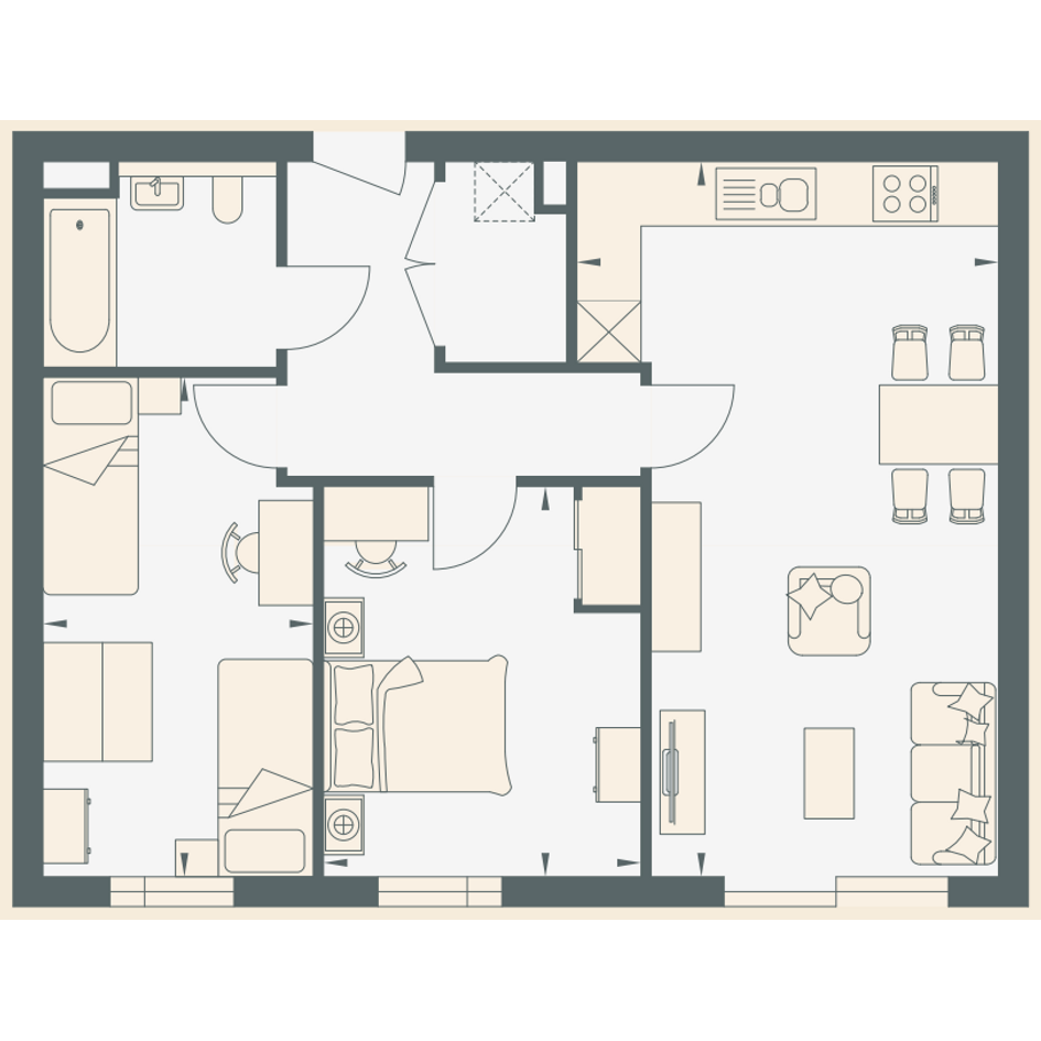 The Westland features a contemporary open-plan kitchen, dining, and living area that flows onto your private balcony, perfect for relaxing or entertaining. Two generous double bedrooms, a modern bathroom, and a fitted mirrored wardrobe in the principal bedroom complete this stylish home.