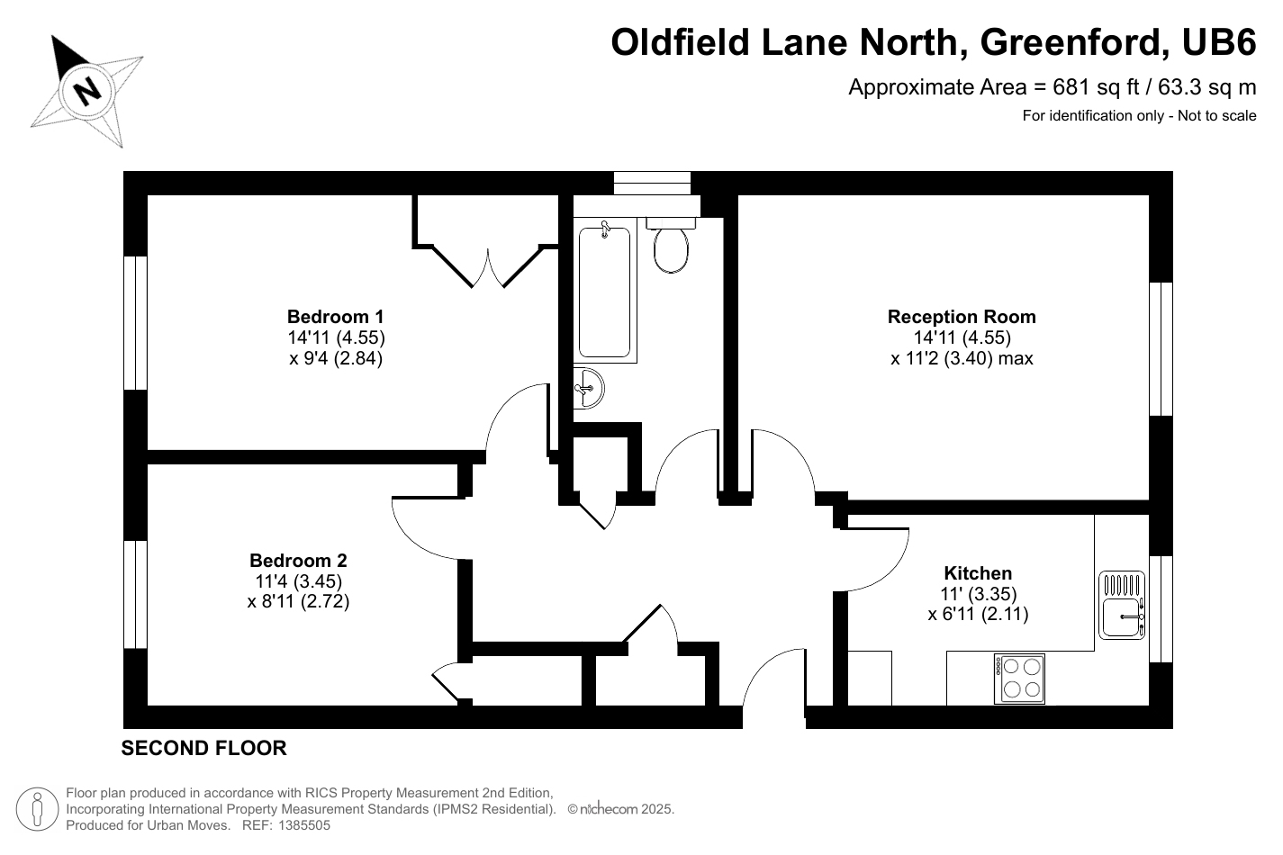 This well-proportioned, top-floor flat has a south-east-facing reception room and separate kitchen. There is a spacious main bedroom plus a second, comfortable, double bedroom and a naturally-lit bathroom. Both bedrooms include a built-in/fitted wardrobe, a pair of storage/utility cupboards have been provided in the entrance hall and the energy-efficiency rating is good, thanks to well insulated walls and roof, double glazed windows and gas central heating. The flat comes with an allocated parking space and use of the communal rear garden. Greenford Station, for Central Line services (plus GWR to West Ealing, for access to the Elizabeth Line), is just minutes away. There is a Tesco Express near the station, Westway Cross Retail Park is only a short walk away and Paradise Fields/Horsenden Hill are within easy reach.
