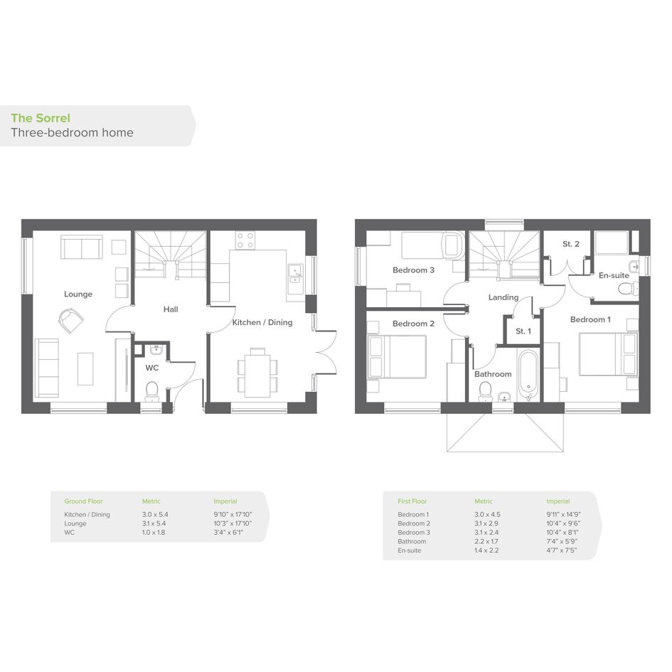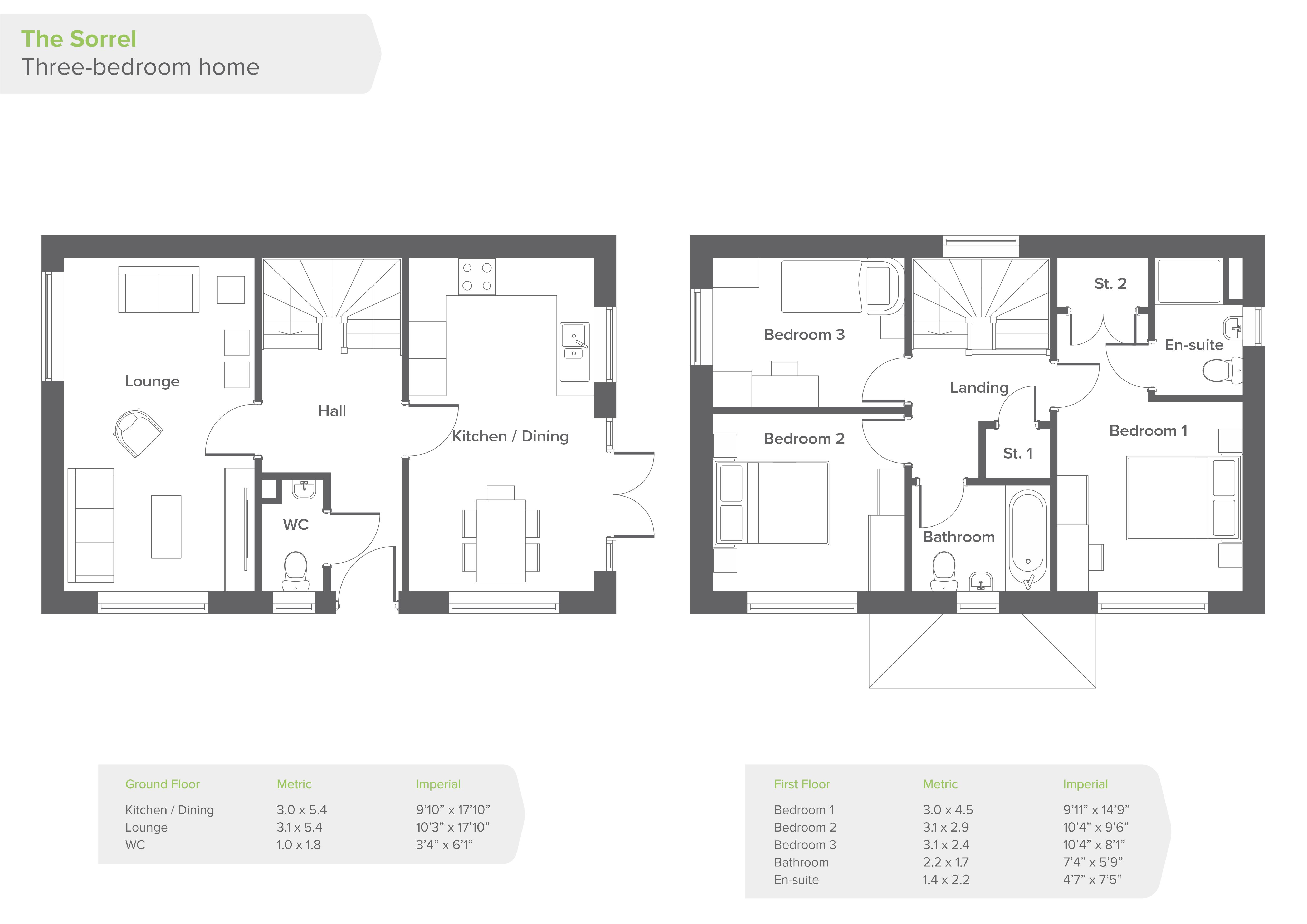The first floor of The Sorrel is made up of a good-sized master bedroom benefiting from an en-suite and storage space, a second double bedroom and a third, single bedroom. The sparkling three-piece family bathroom contains an over-bath shower plus designer taps and tiling.
