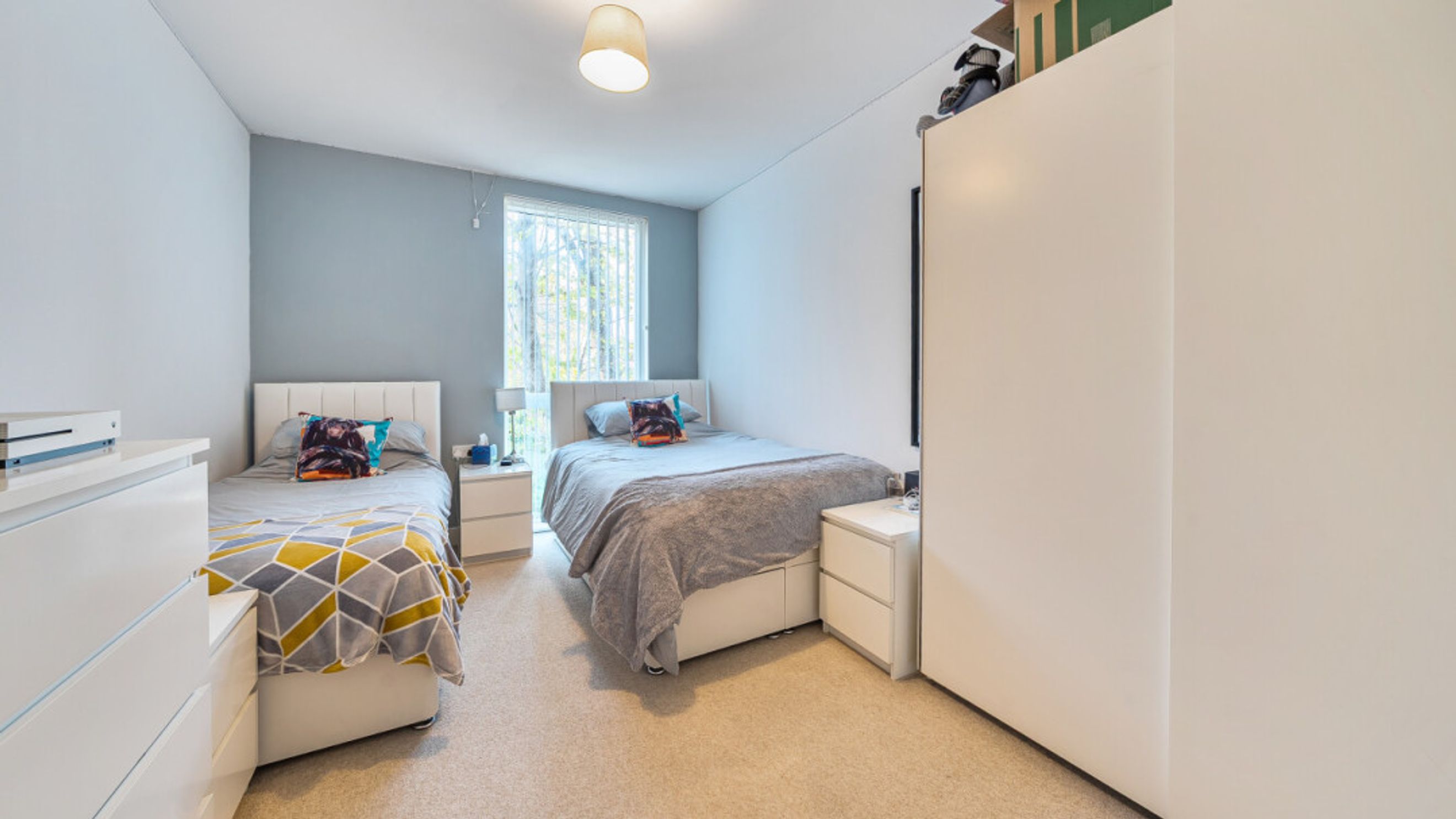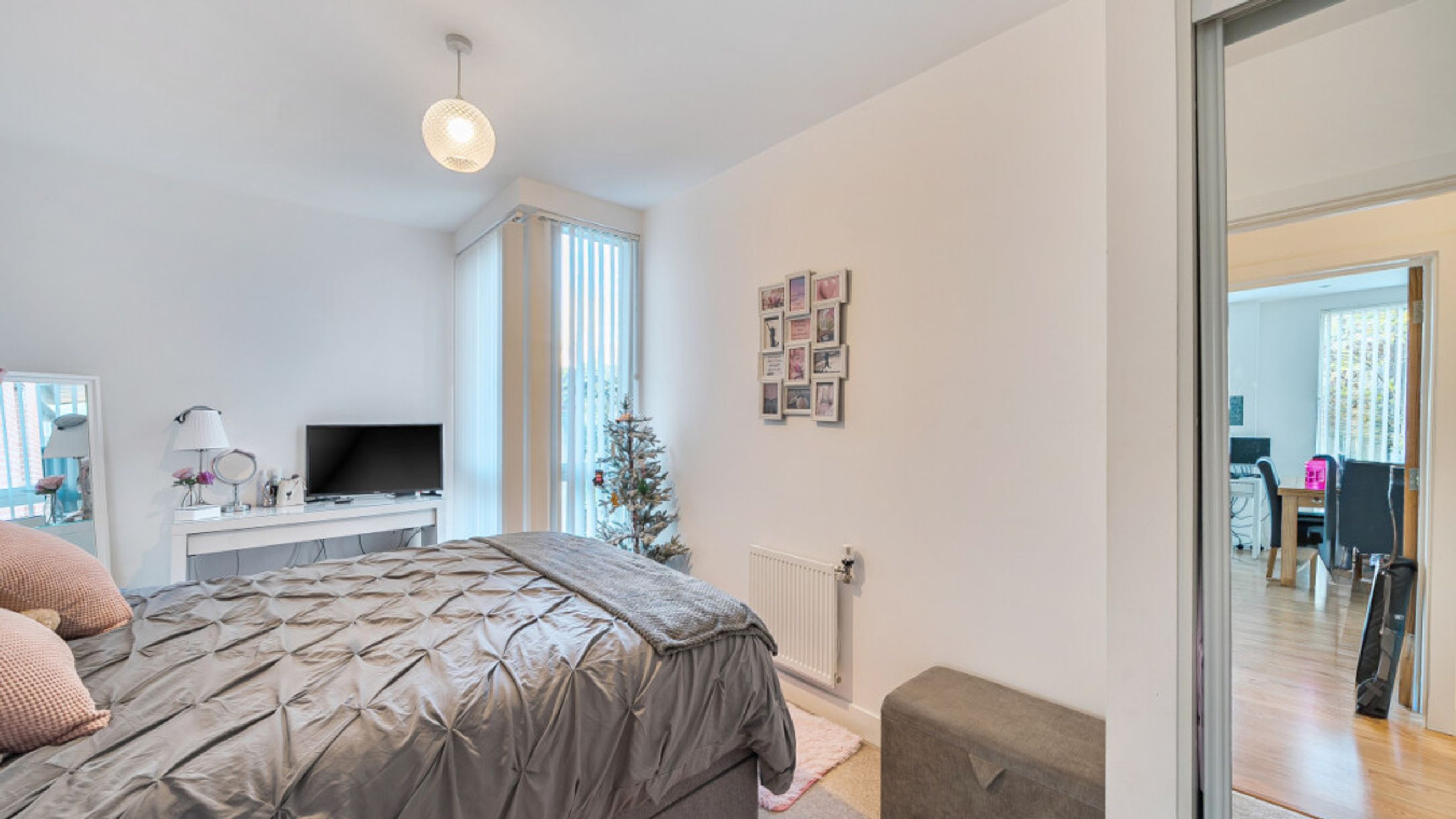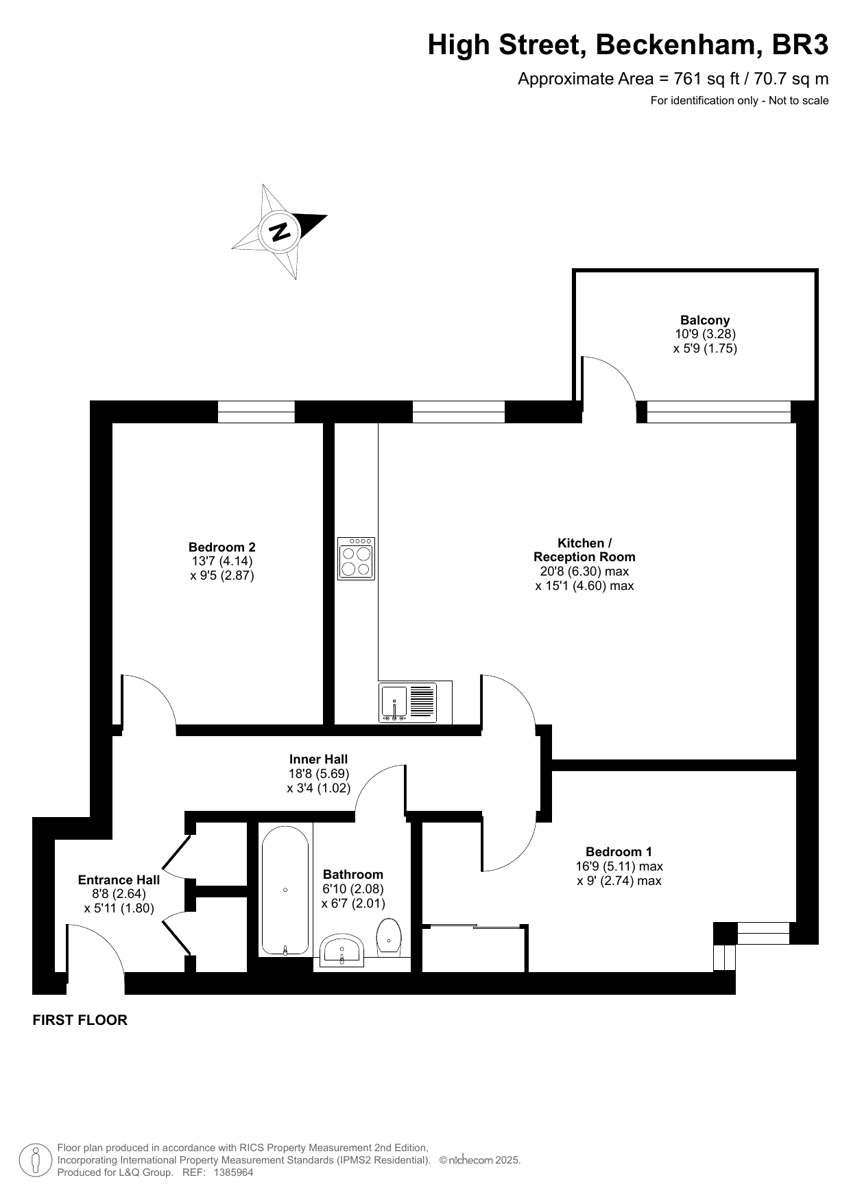 This bright and spacious well presented dual aspect first floor apartment consists of a stylish open-plan kitchen and living area, flooded with natural light from wide floor-length windows and door to a private west facing balcony. There are two well proportioned double bedrooms, one west facing and the second, east facing, with built in storage. A modern family bathroom completes the accommodation