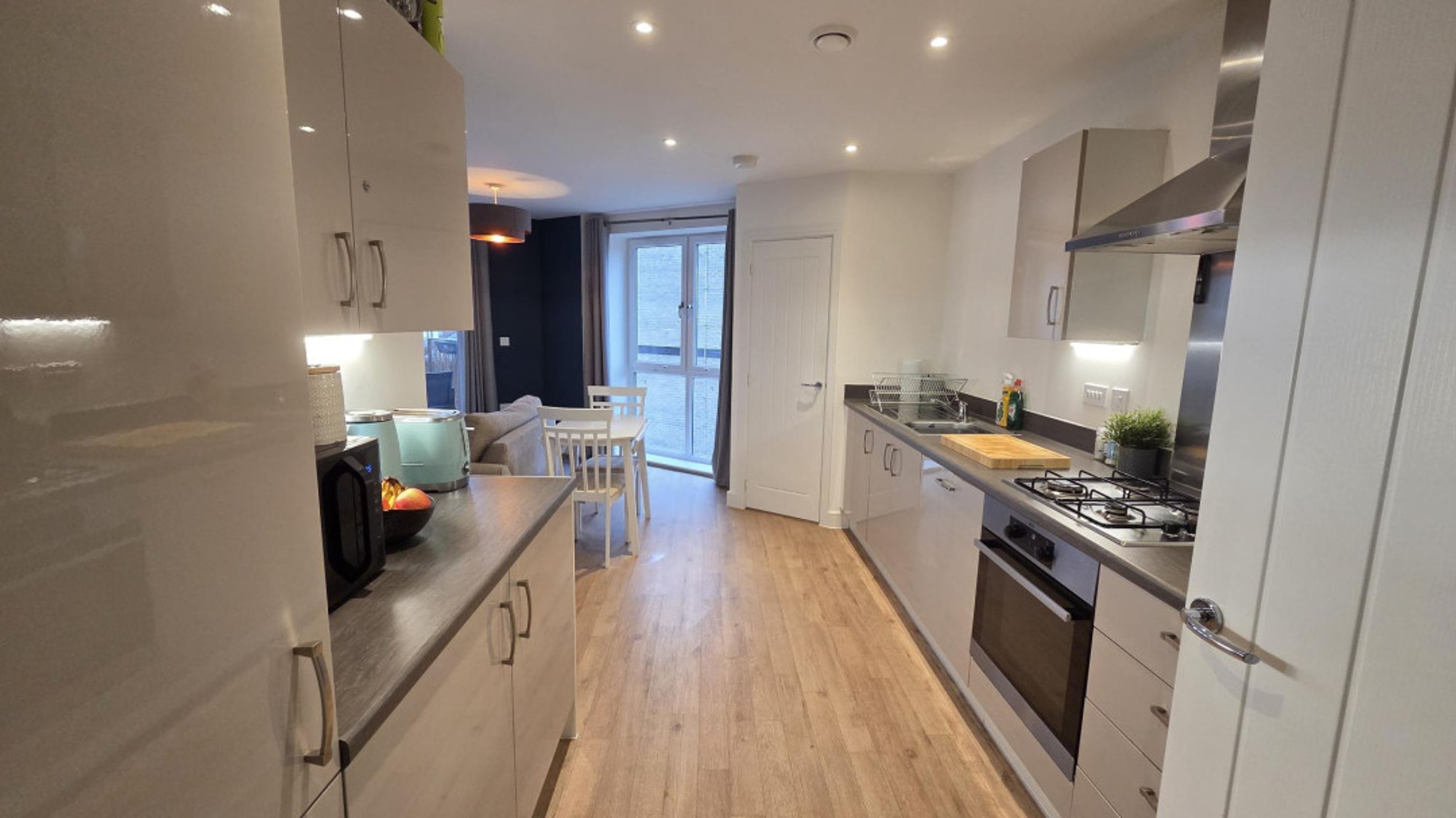 A third floor flat which comprises of a hall, open plan kitchen/living room/diner, two double bedrooms, bathroom, storage room and a large balcony.