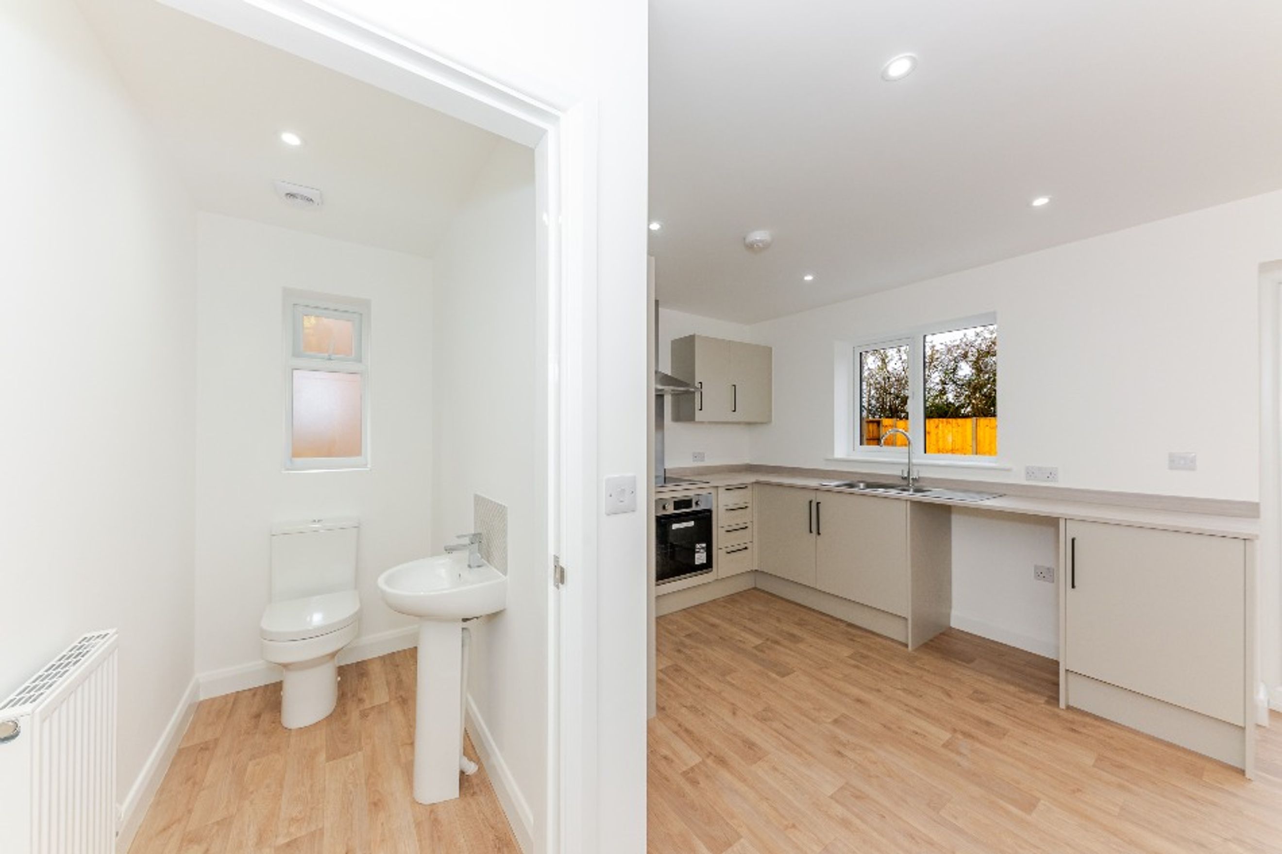 Ground Floor - Featuring an inviting hallway that opens onto a lounge, perfect for relaxing with family or entertaining friends. You'll also find a fitted kitchen-diner with integrated oven appliances, and a downstairs WC.