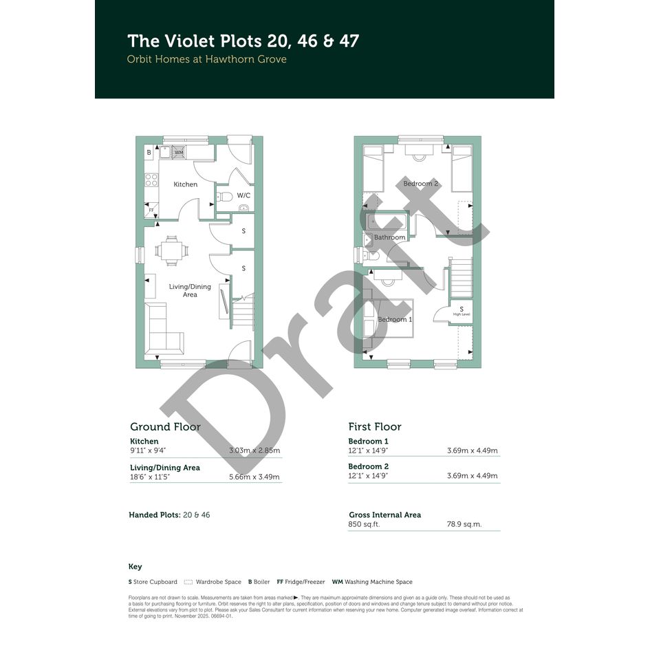 Ideal for first-time buyers, couples for downsizers, The Violet is a beautifully designed two-bedroom semi-detached home, located in a cul-de-sac with front-facing views of the fitness trail and 2 driveway spaces next to the home. Featuring contemporary living across two carefully planned floors, providing flexibility to make the home your own.