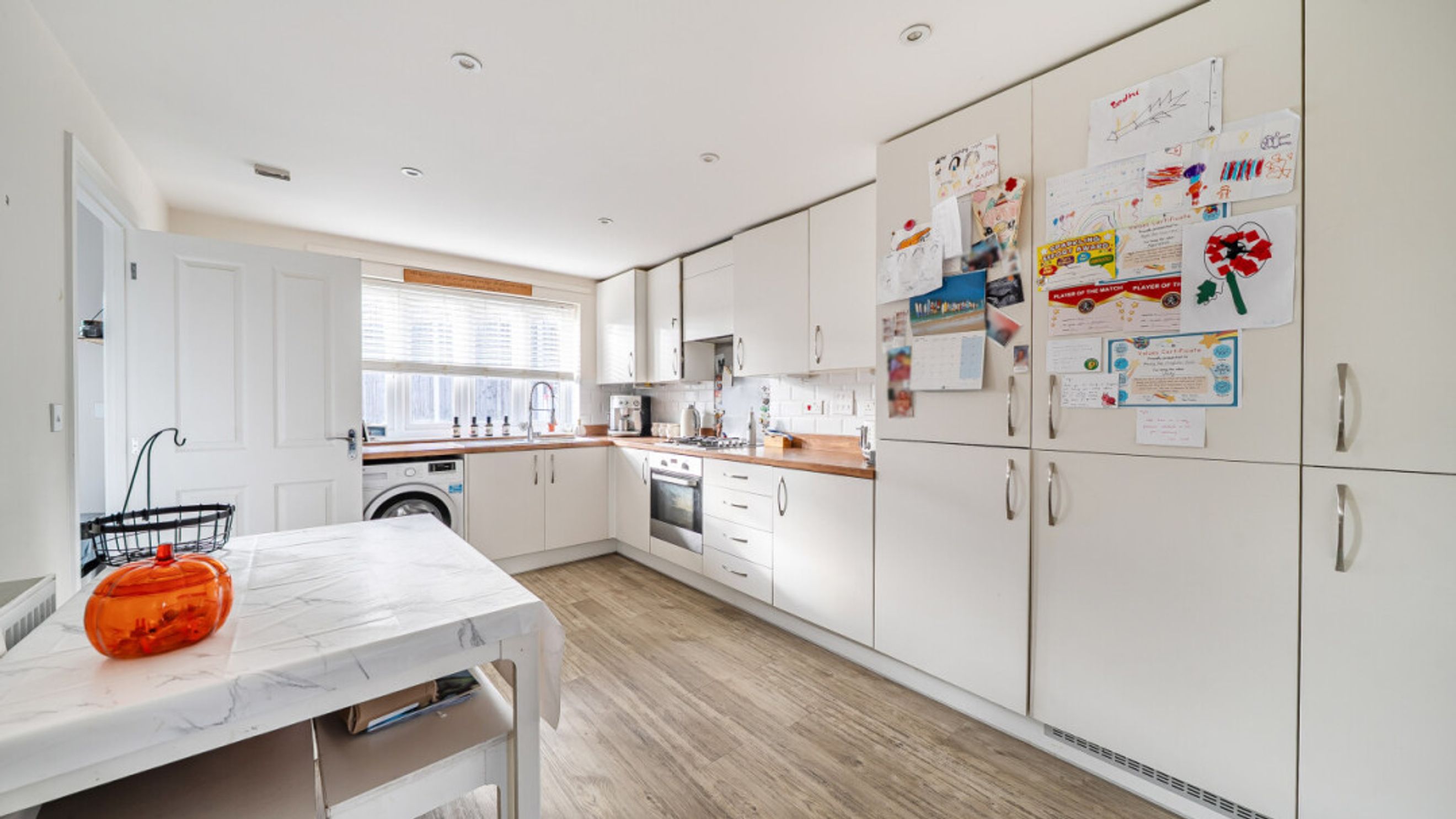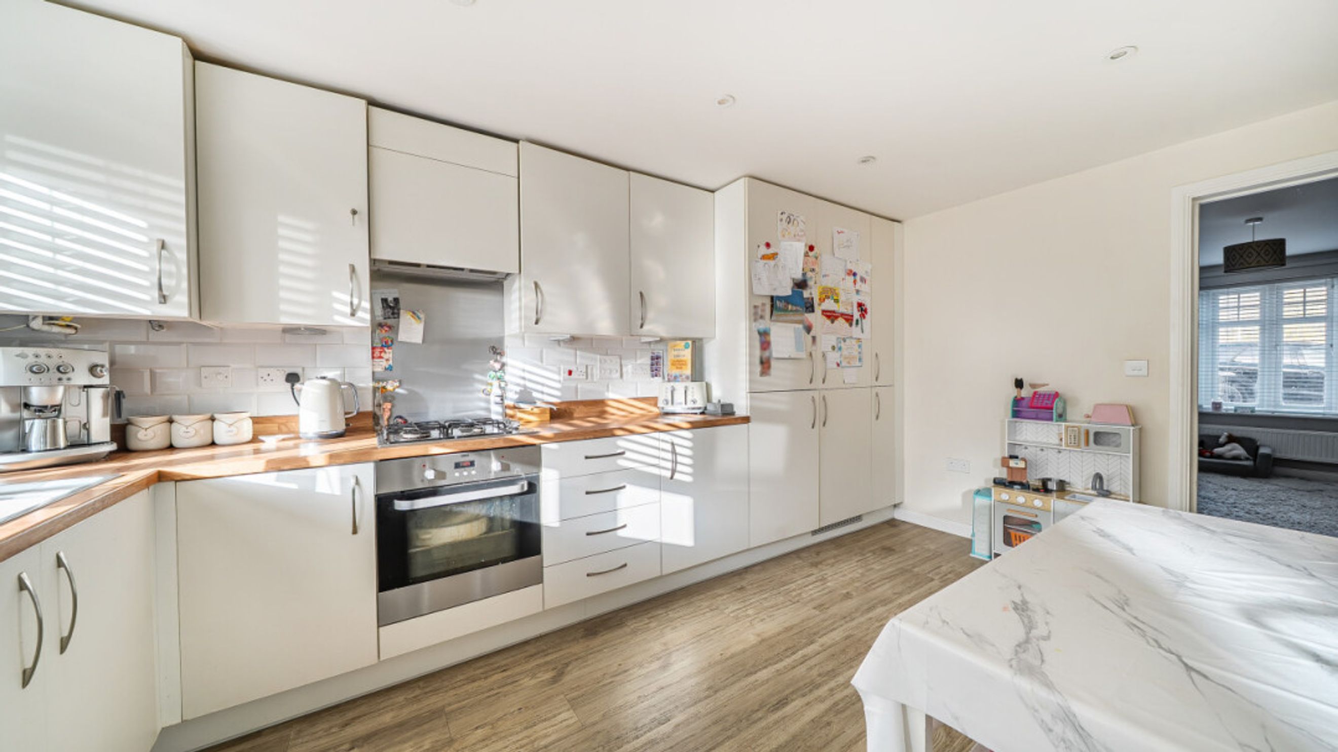 Enter this well presented semi-detached house directly into the dual aspect lounge with stairs to the first floor. A door to the rear leads into a kitchen diner from which there is a lobby with door to the back garden and the downstairs cloakroom. The south-west facing garden gives access to driveway parking to the side of the house. To the first floor, find the master bedroom to the front of the house, complete with mirrored wardrobe and further cupboard over the stairs. There are two additional bedrooms and a contemporary family bathroom.