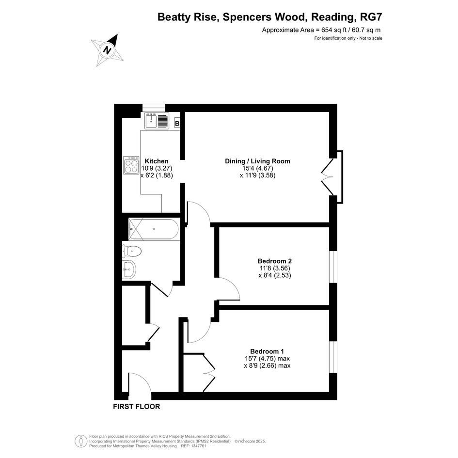 Situated in the popular residential area of Beatty Rise, Spencers Wood, this well presented first floor apartment offers comfortable and practical living. The property benefits from a thoughtfully arranged layout, with a spacious open plan living and dining room, separate kitchen, two bedrooms and a family bathroom. The apartment enjoys a bright and airy feel throughout and is set within a well maintained development with communal gardens and an allocated parking space.