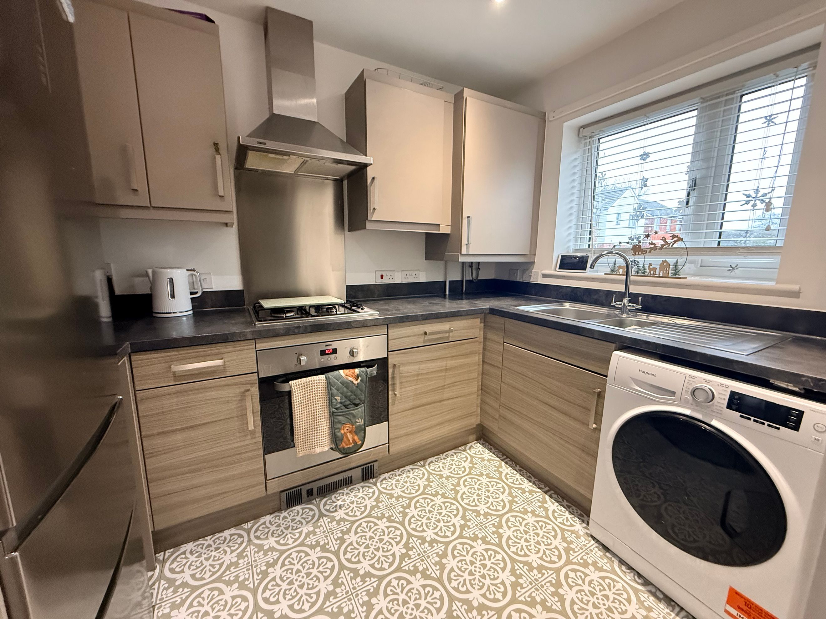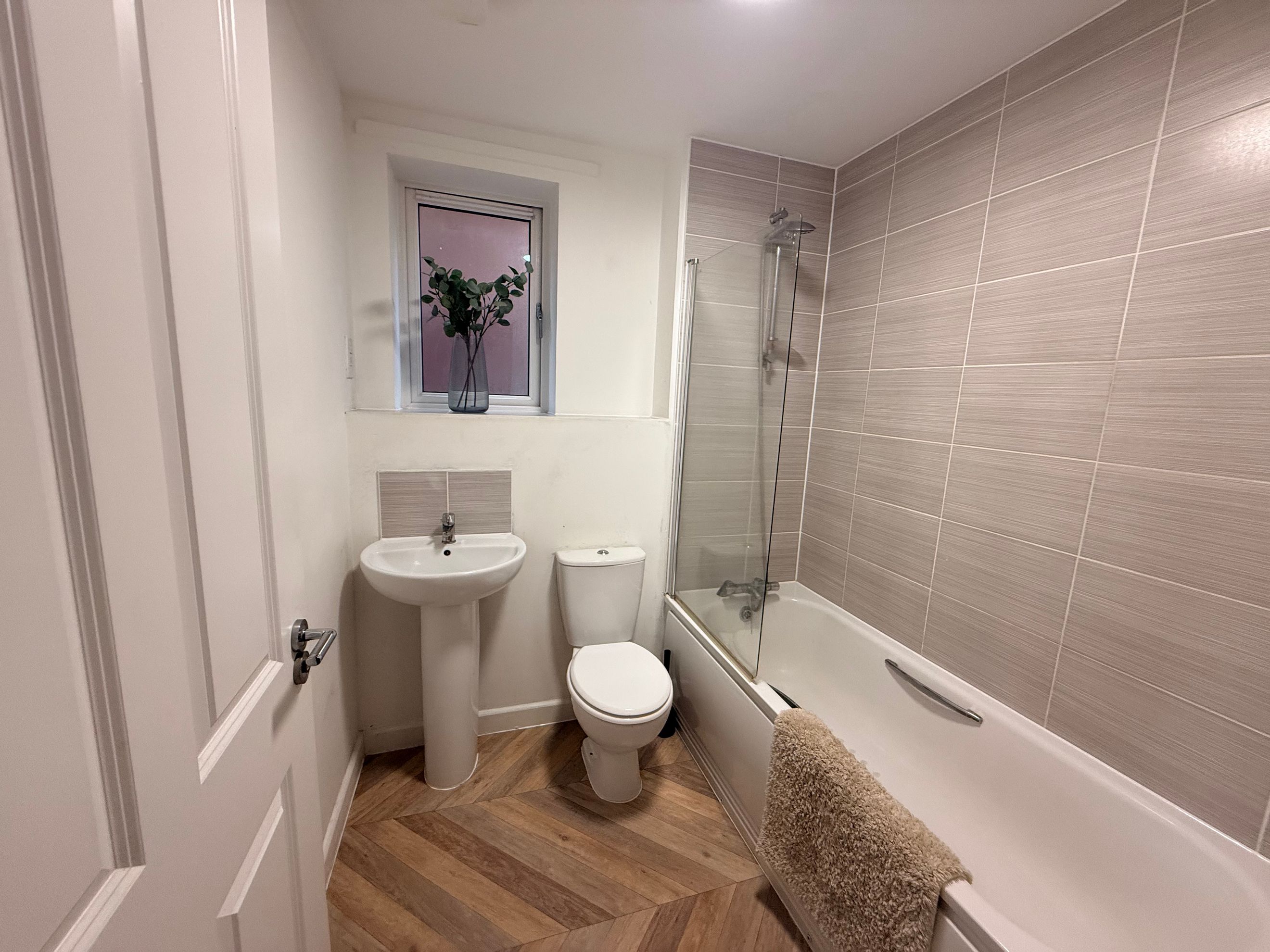 A well-presented two-bedroom home in a desirable location. The ground floor offers a bright living and dining area, a separate kitchen, and a convenient WC. Upstairs are two well-proportioned bedrooms and a family bathroom. Outside, the property features a neatly landscaped garden and an allocated parking space to the front.