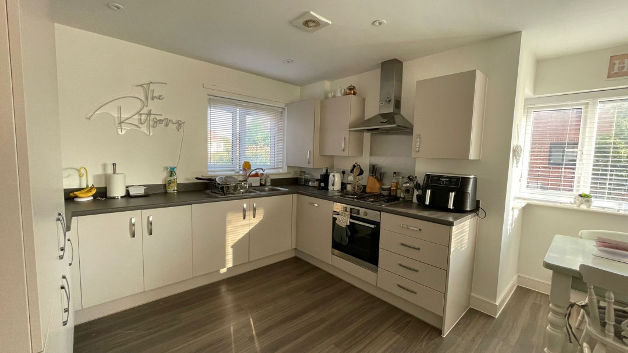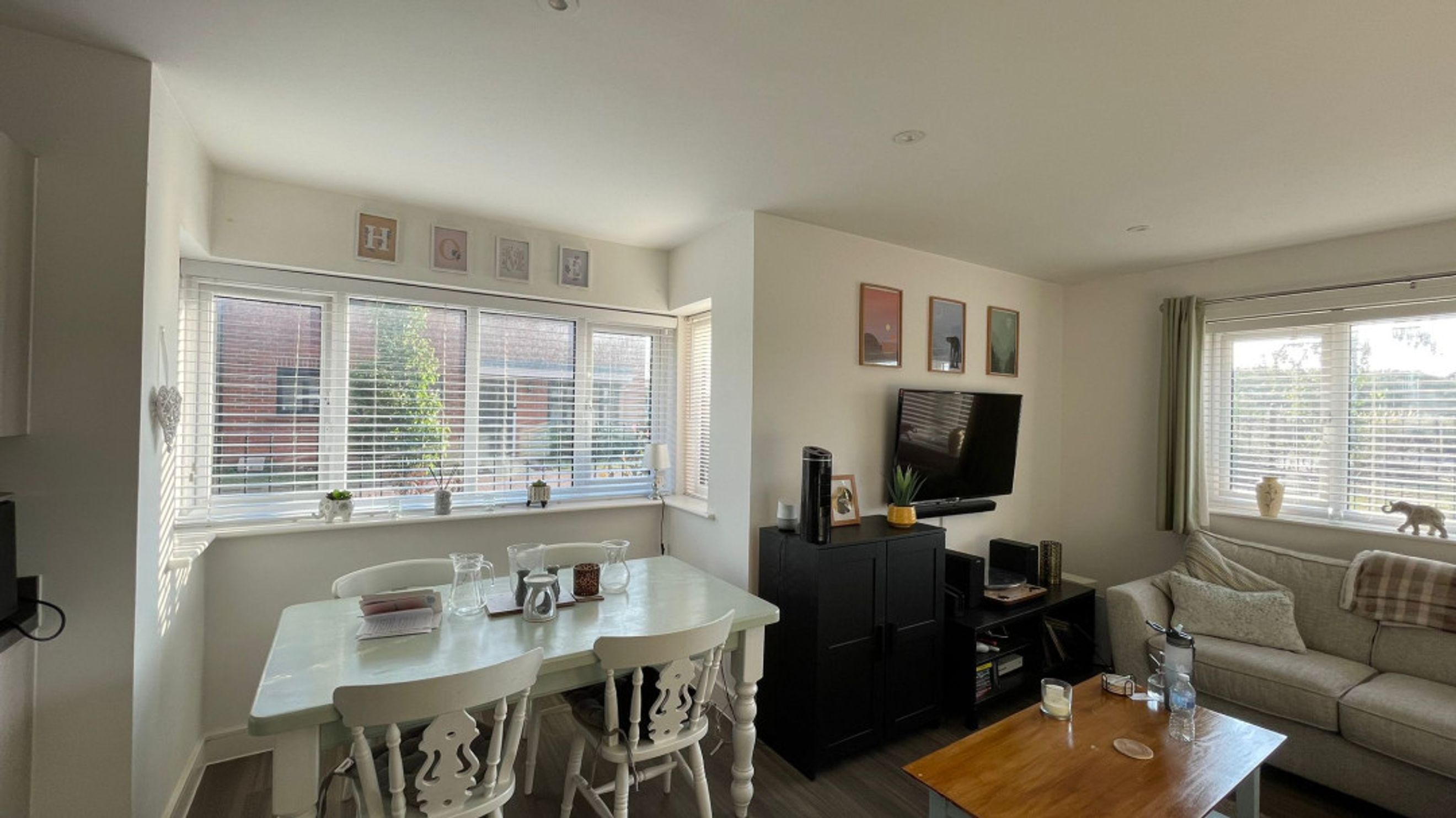 Open plan space. Integrated appliances including dishwasher, washer dryer, oven and fridge freezer. Laminate flooring.