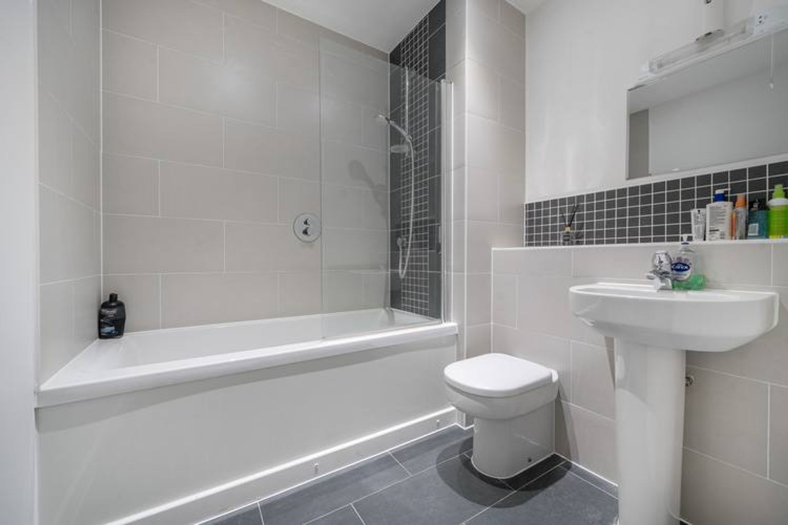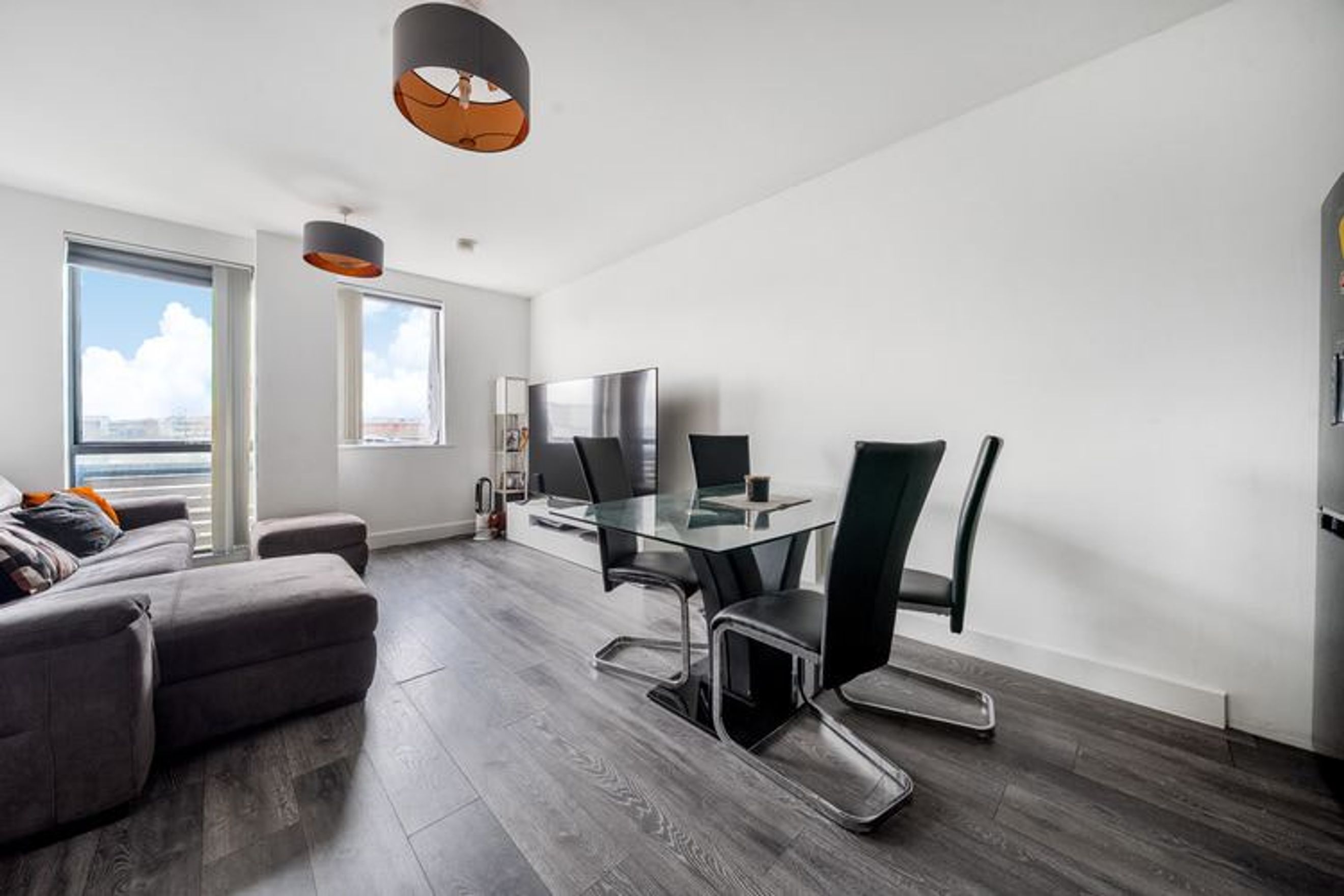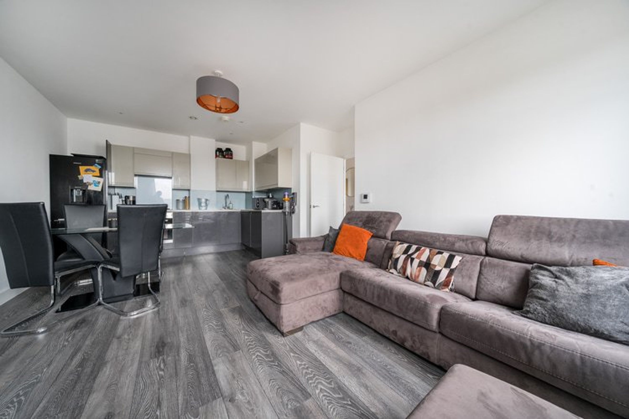 The property on the third floor comprises an entrance hall with a storage cupboard, a spacious living room with a modern open-plan kitchen, two bedrooms (one en-suite) and a bathroom.