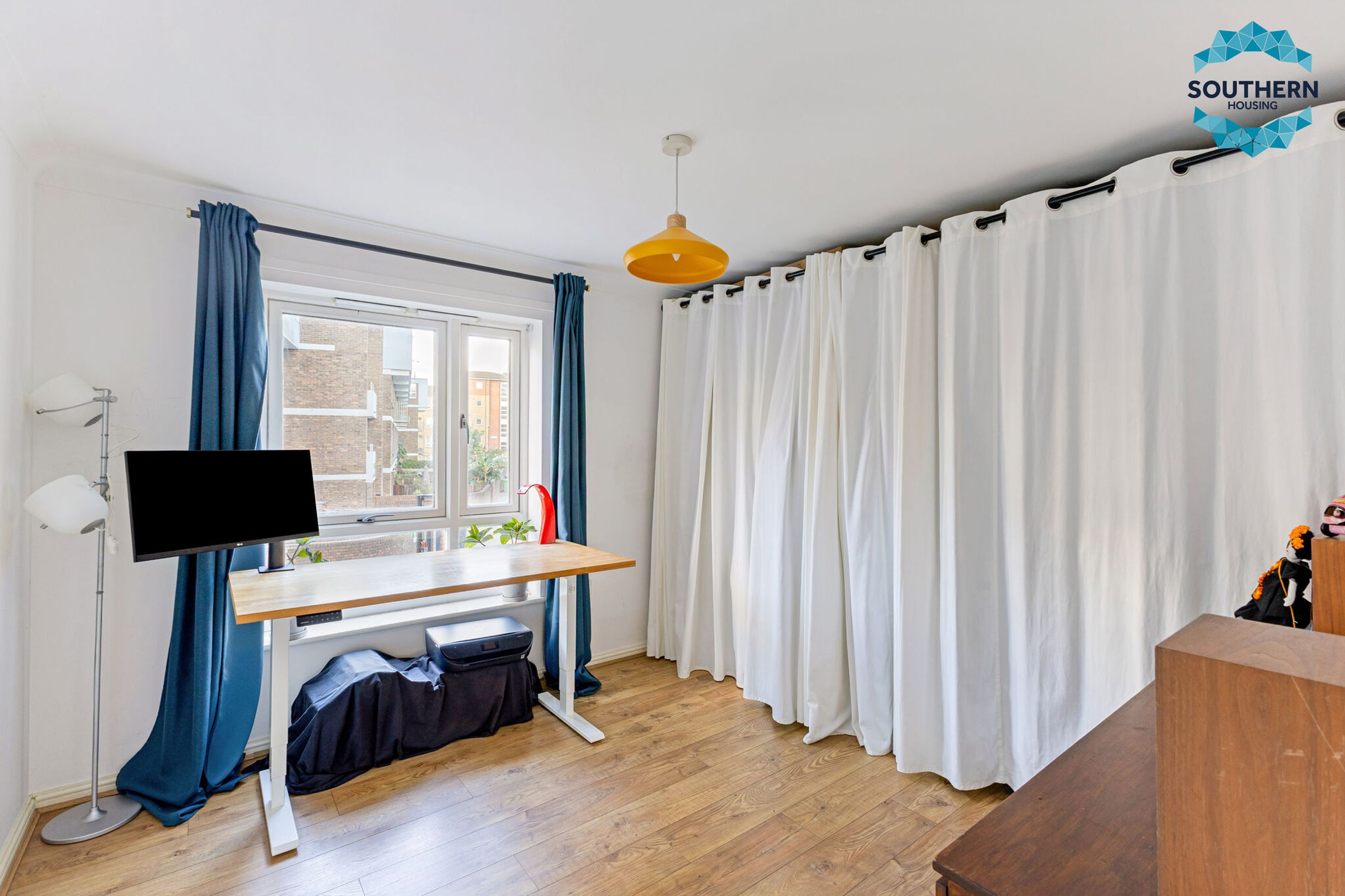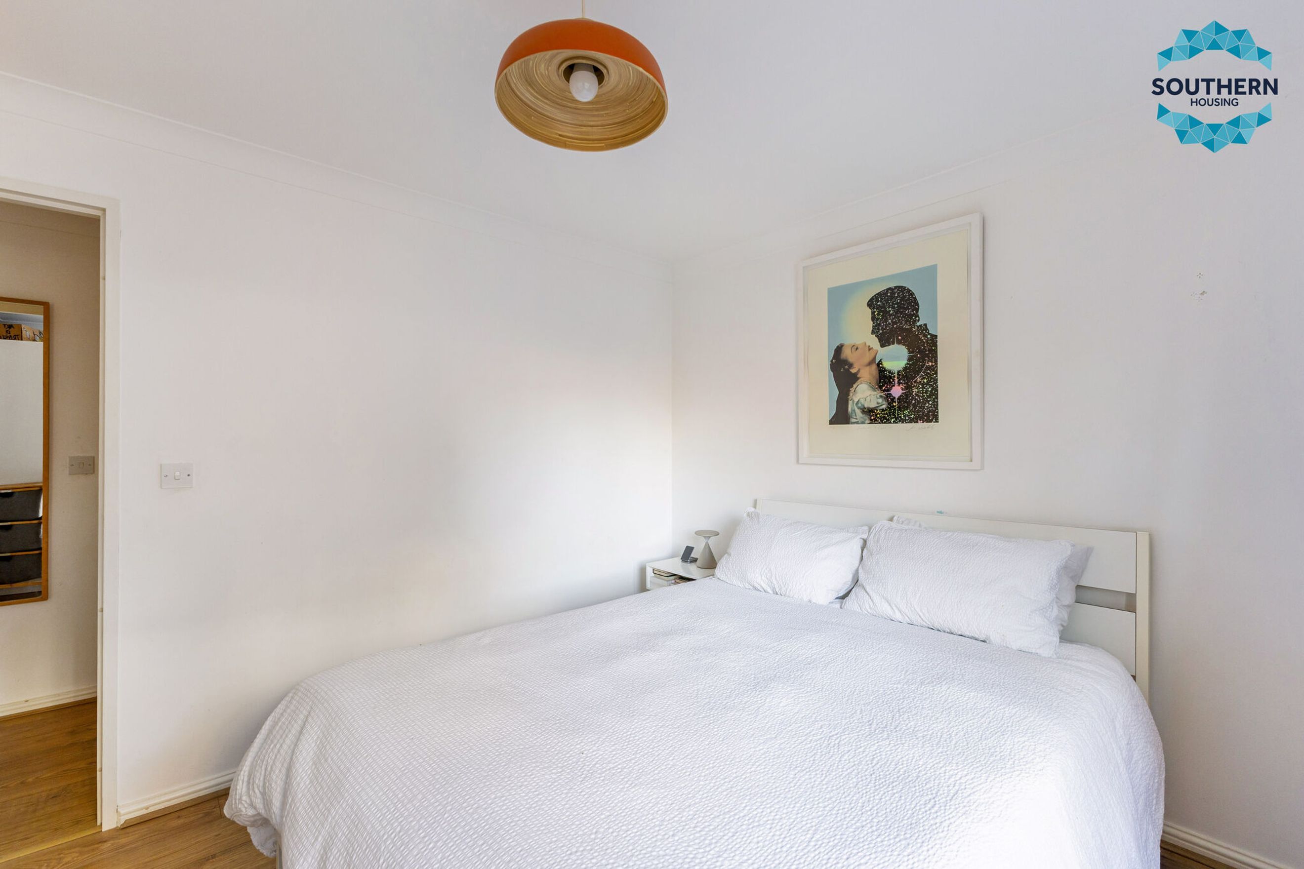 The master bedroom is generously sized, easily accommodating all your furniture needs. The second bedroom is a comfortable double, ideal as a guest room, children's bedroom, or a large home office.