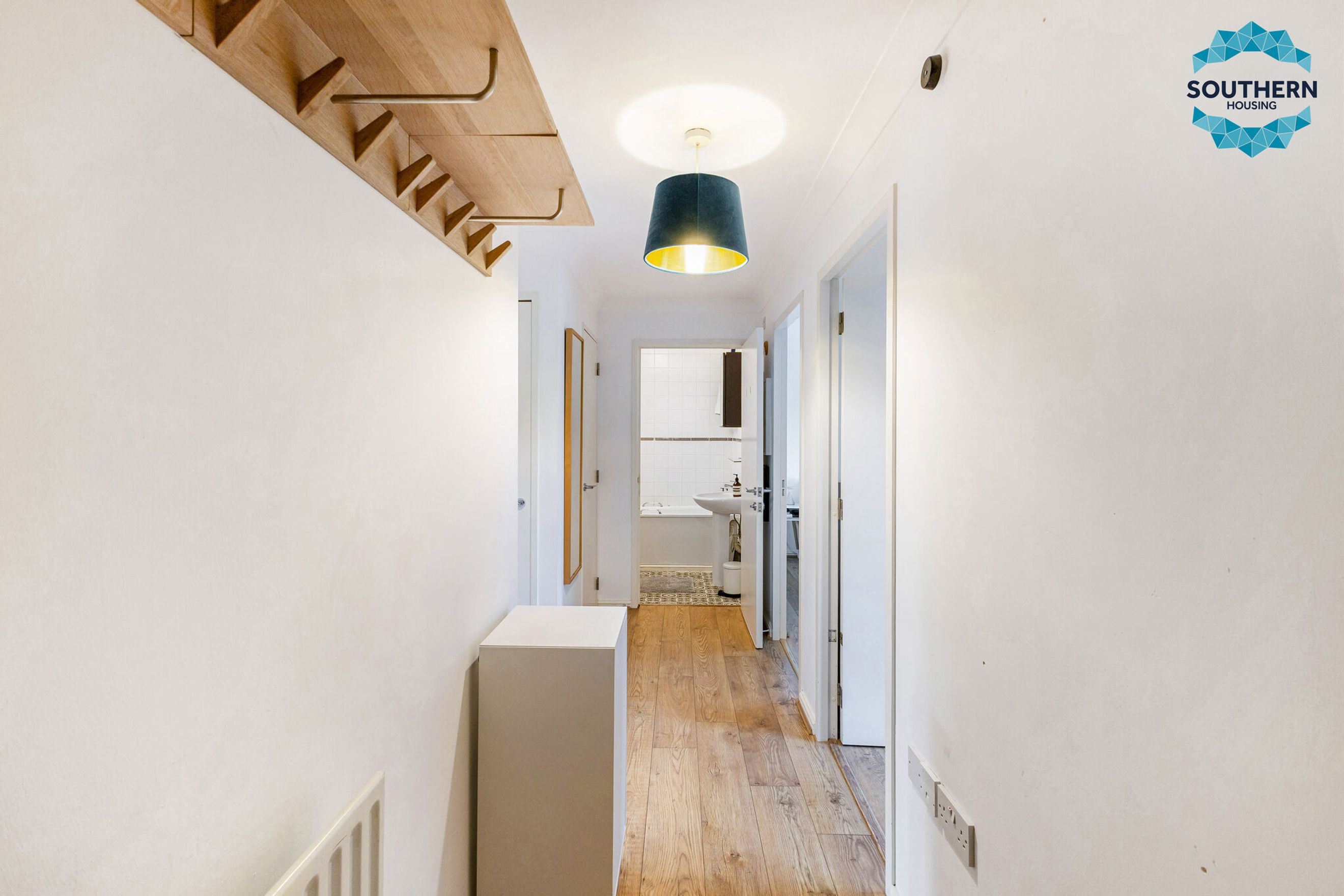 Upon entering, you'll find a welcoming hallway featuring two generous storage cupboards, perfect for coats, shoes, and everyday essentials.