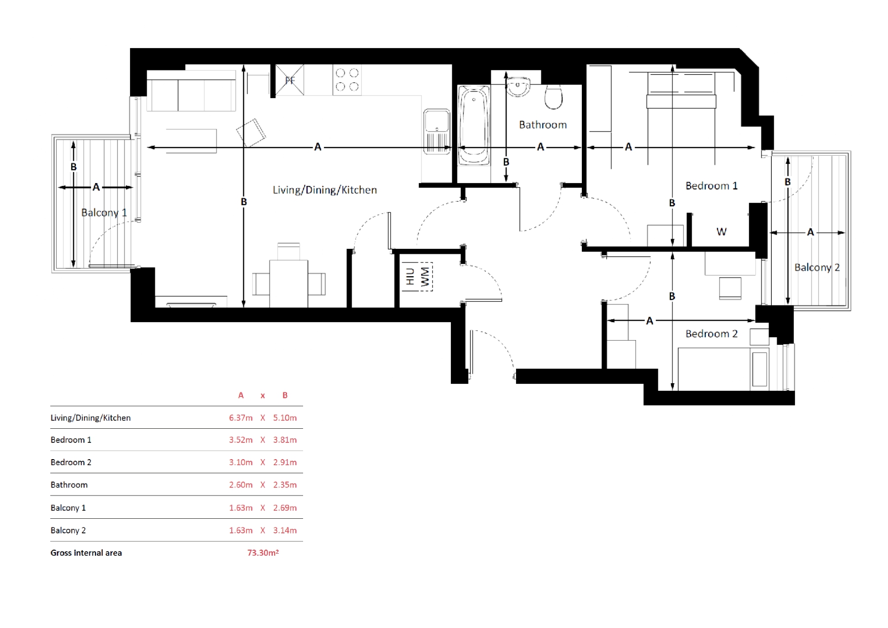 A modern 2-bedroom apartment with balcony and communal garden in Tower Hamlets.