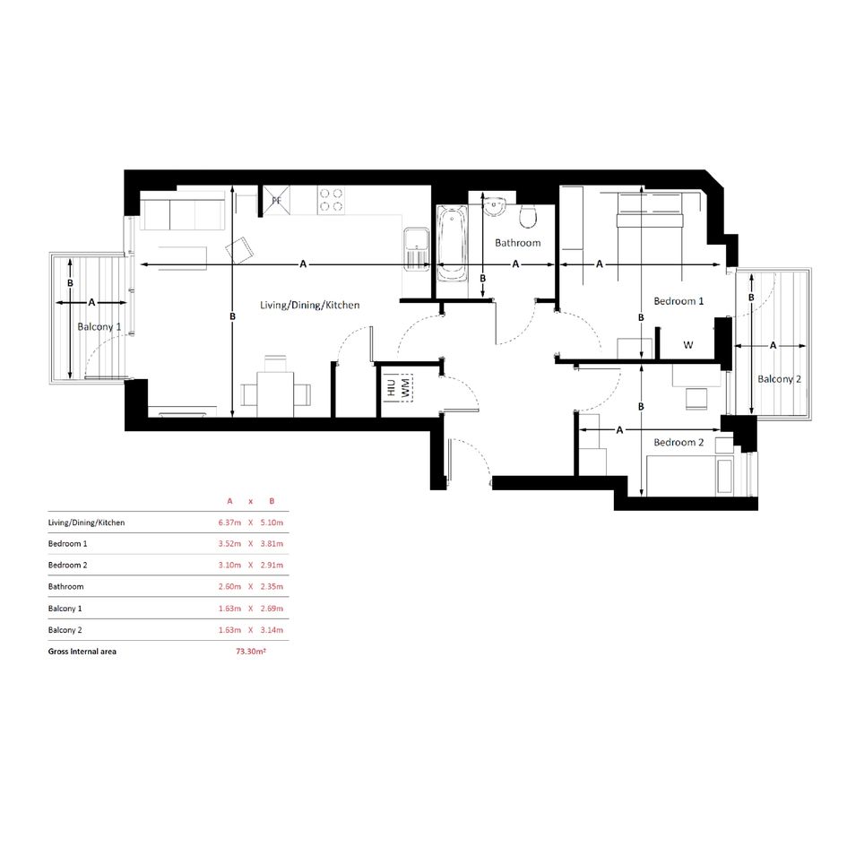 This stylish home offers two bright bedrooms with floor-to-ceiling windows, including a master bedroom with a fitted wardrobe. The property features a contemporary bathroom, central heating, and an open-plan living space designed for comfort. Enjoy outdoor space with your own private balcony and access to a communal garden, plus secure bike storage for added convenience.