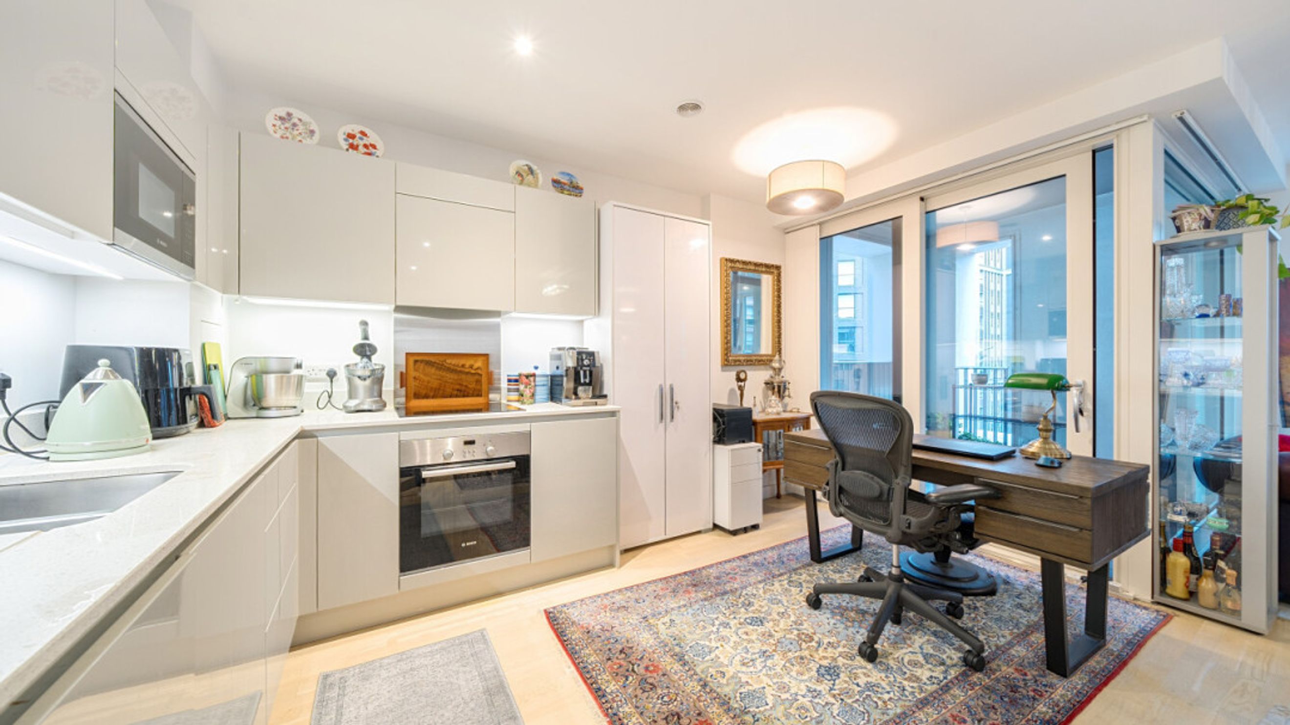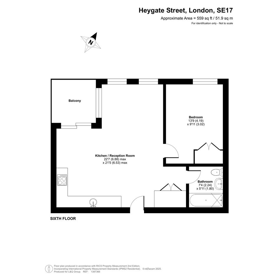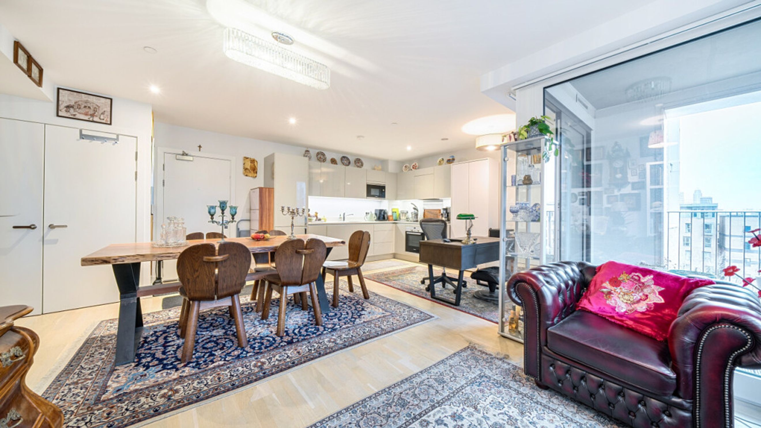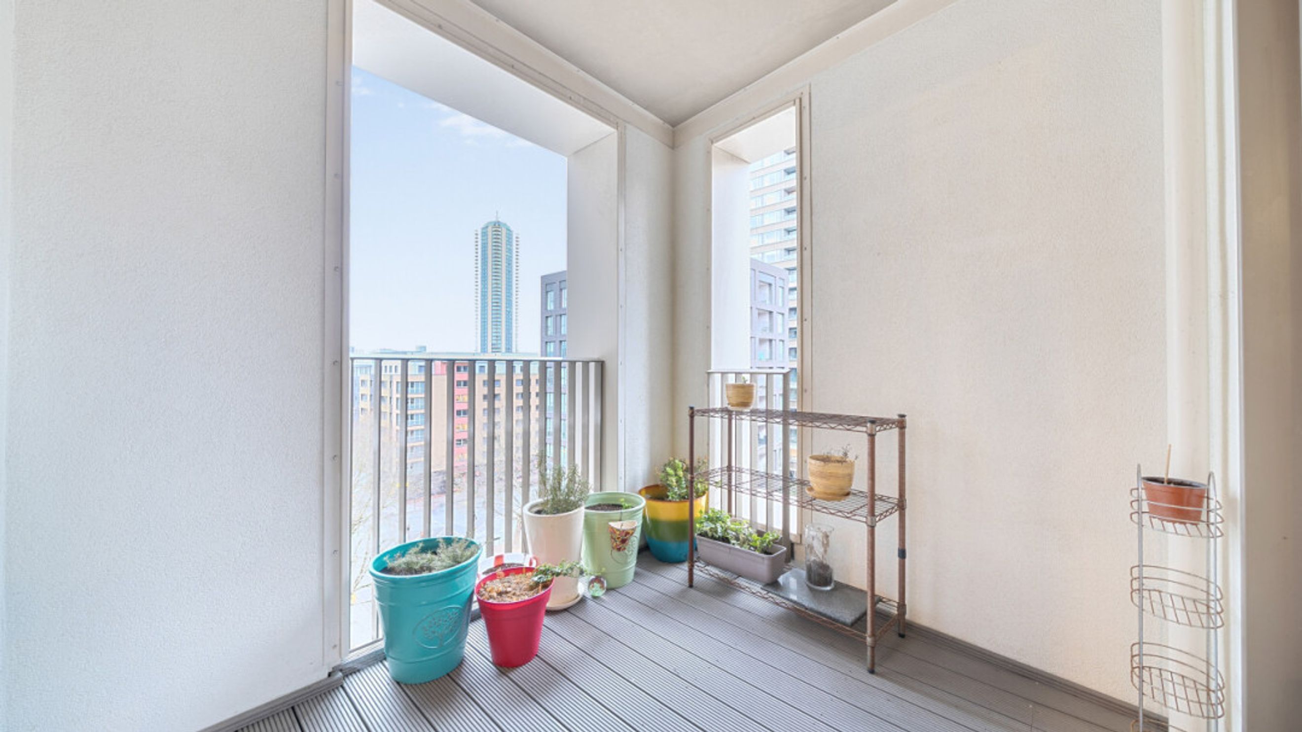 This stylish apartment with partialskyline views centres around a larger than average dual aspect open plan reception room opening onto a square corner balcony. the modern kitchen includes fully integrated appliances. The generous double bedroom comes with a fitted wardrobe and the accommodation is completed with a contemporary bathroom.