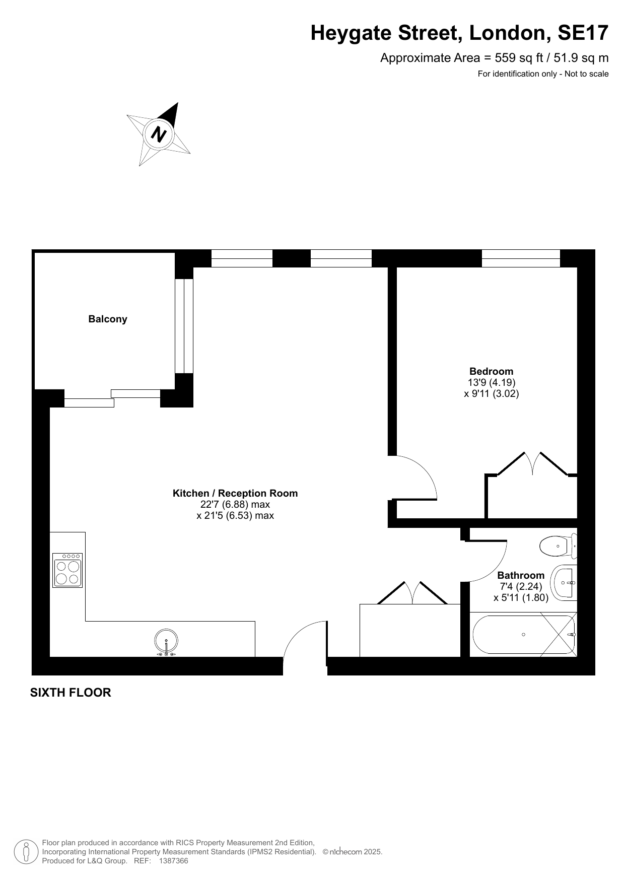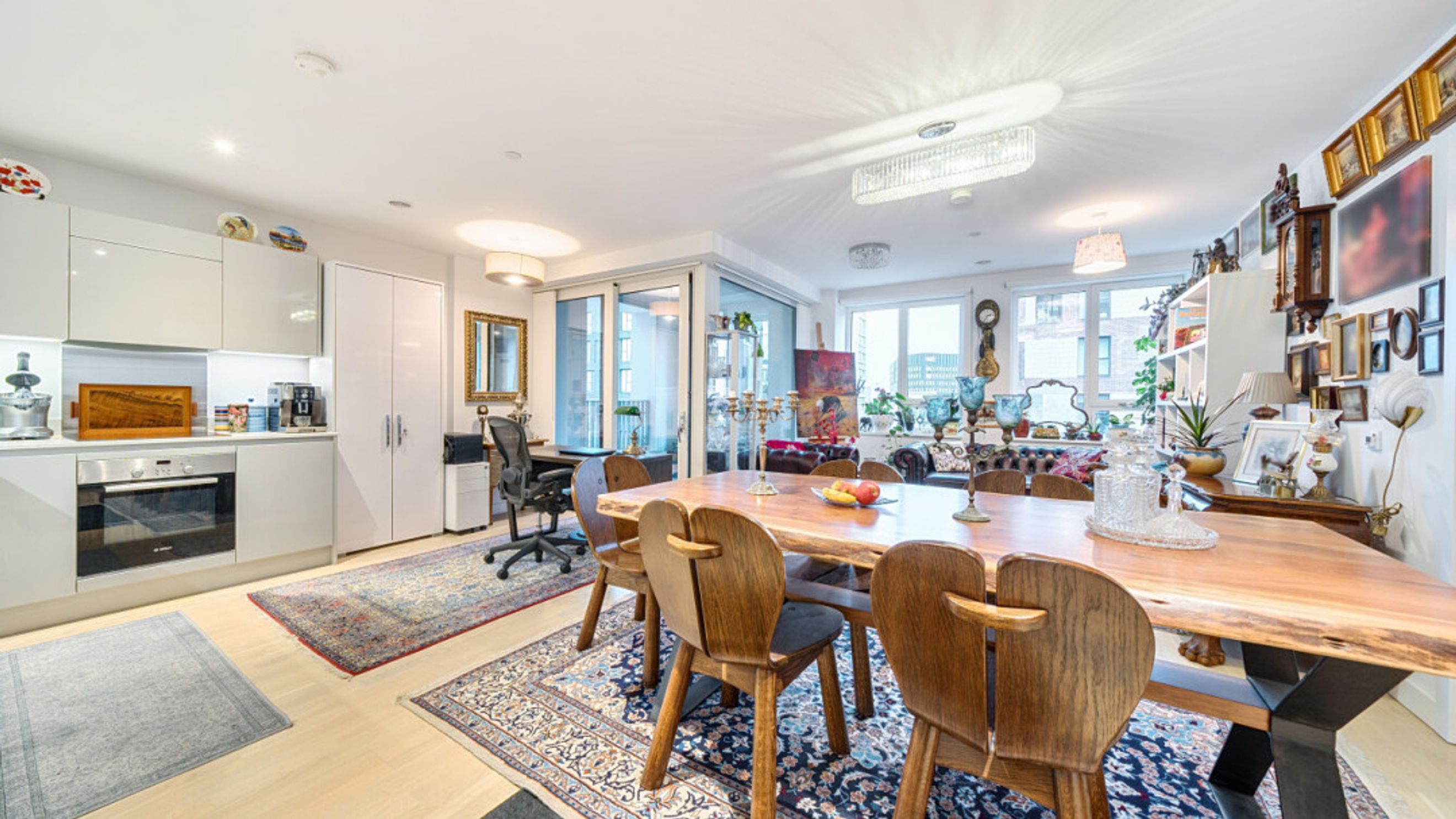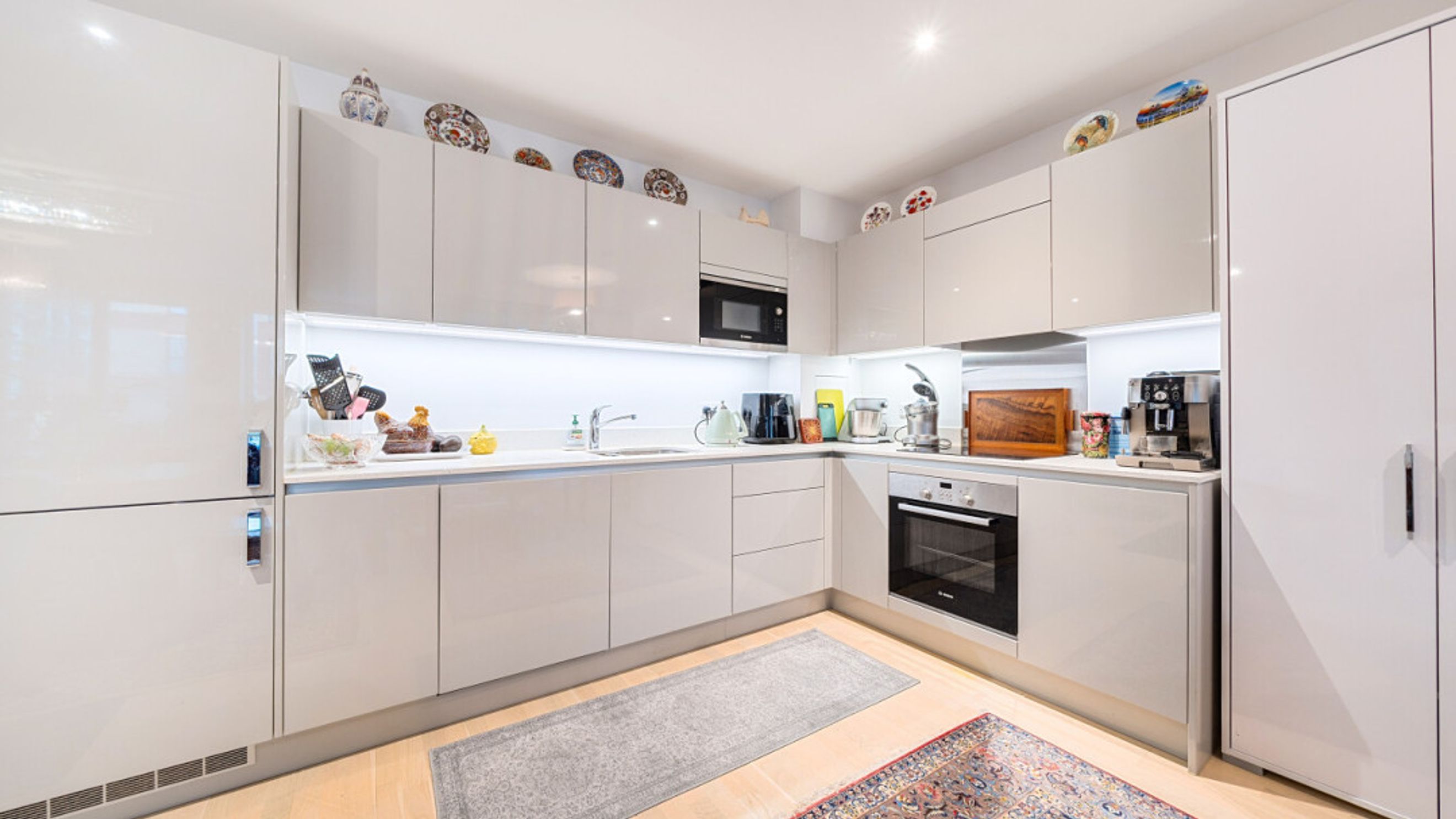 This stylish apartment with partialskyline views centres around a larger than average dual aspect open plan reception room opening onto a square corner balcony. the modern kitchen includes fully integrated appliances. The generous double bedroom comes with a fitted wardrobe and the accommodation is completed with a contemporary bathroom.