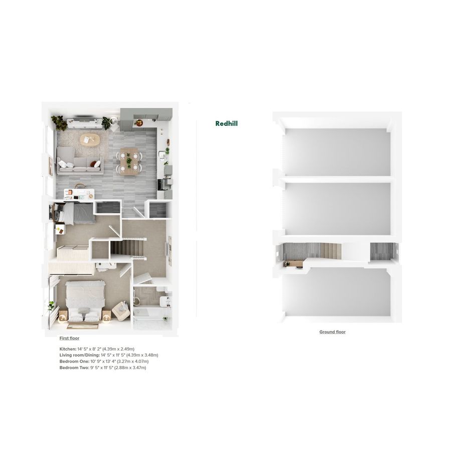 The first floor also includes two well-proportioned bedrooms and a contemporary bathroom