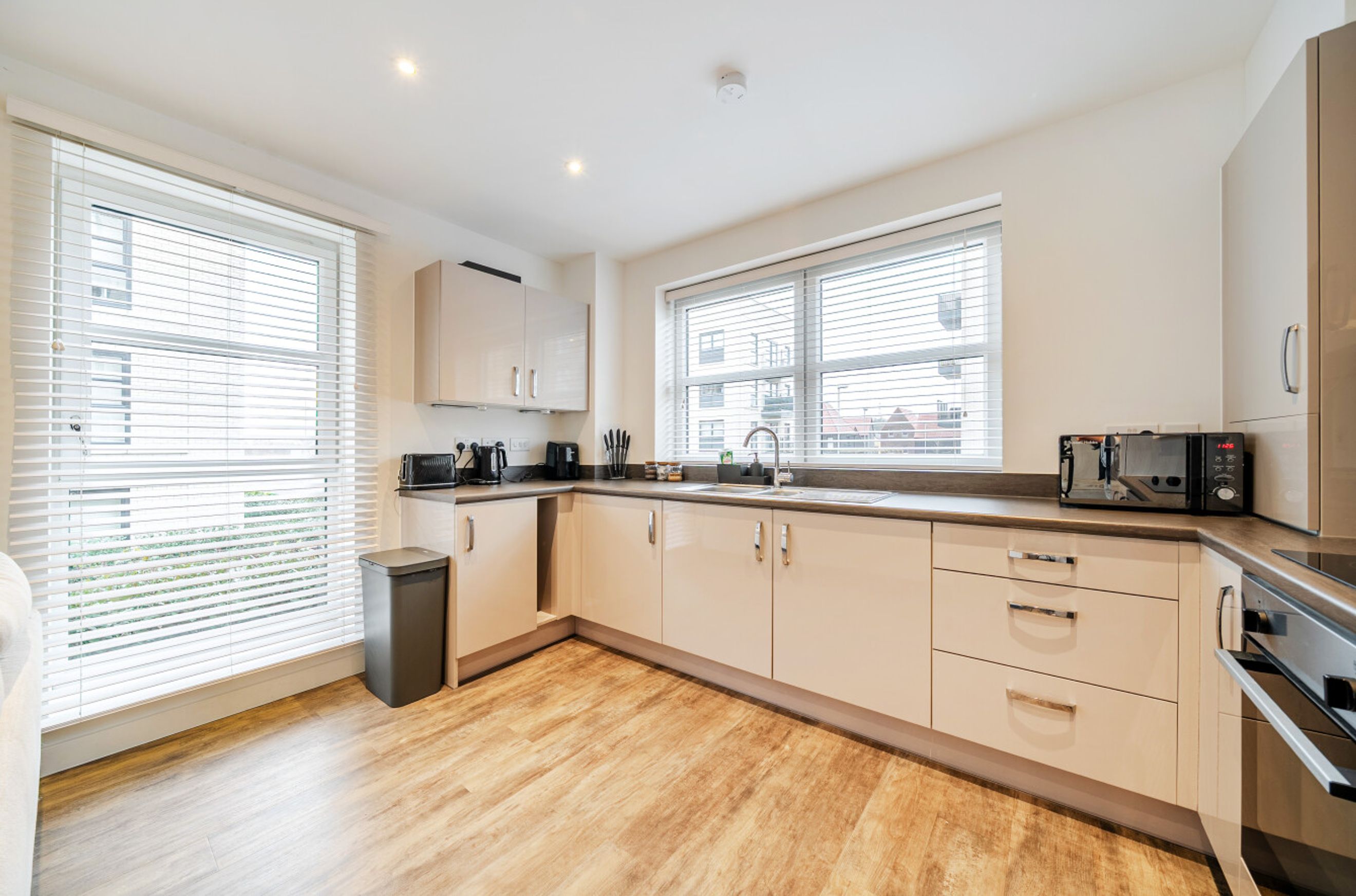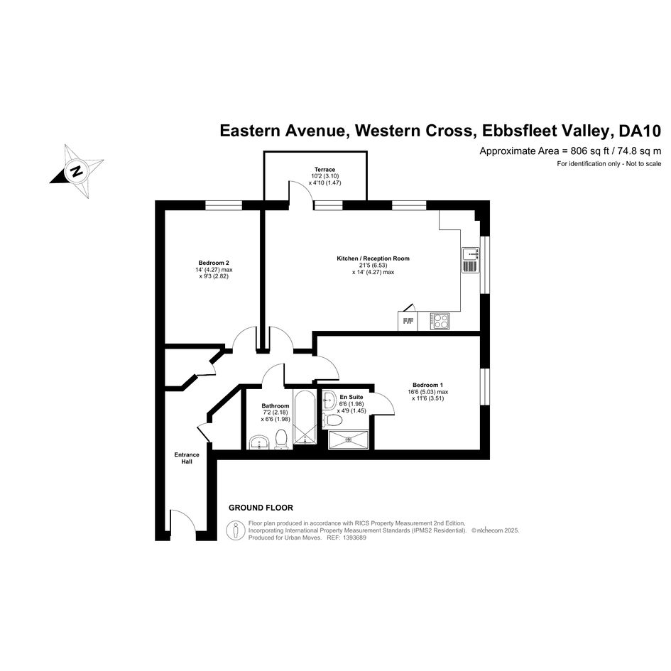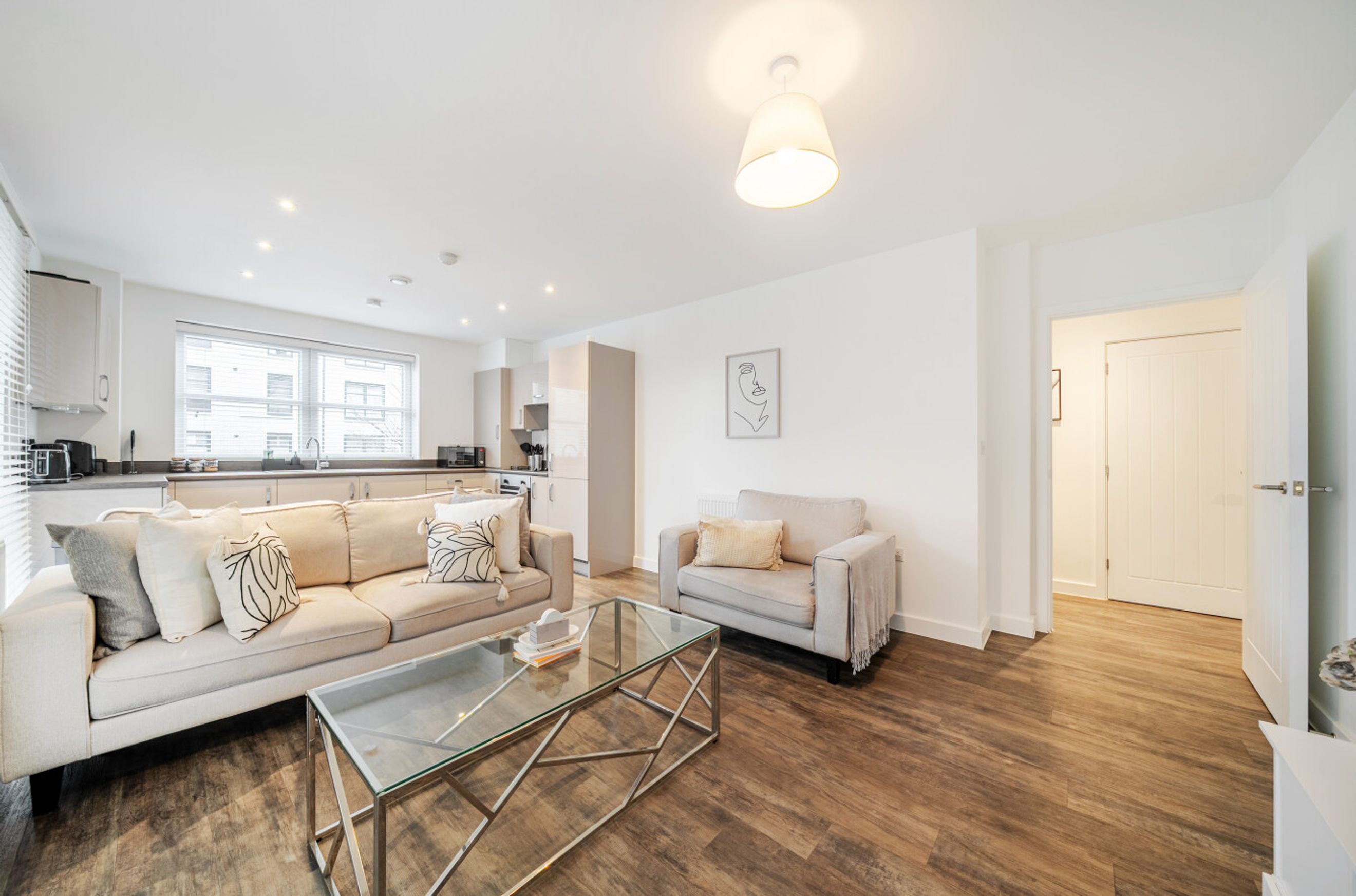 This spacious, two-bedroom flat is on the ground floor of a recently-constructed development (sometimes called Blackstone House) and appears in excellent condition throughout. The property has a twenty-one-foot, dual-aspect reception room with attractive flooring and open-plan kitchen area featuring sleek units and integrated appliances. A glazed door leads from the living area out to a private patio on the east/south-east side of the building. There is a main bedroom with en-suite shower room plus a generously-sized second double bedroom and a stylish bathroom. A pair of storage/utility cupboards have been provided in the entrance hallway and well insulated walls and floor, high performance glazing and gas central heating all contribute towards a very good energy-efficiency rating. The huge range of shops and other amenities that Bluewater Shopping Centre has to offer are only a short walk away and Greenhithe Railway Station can also be reached on foot or via brief bus or bike ride. The property, which is held on a very long lease, comes with an allocated parking space plus shared use of some additional visitor spaces.