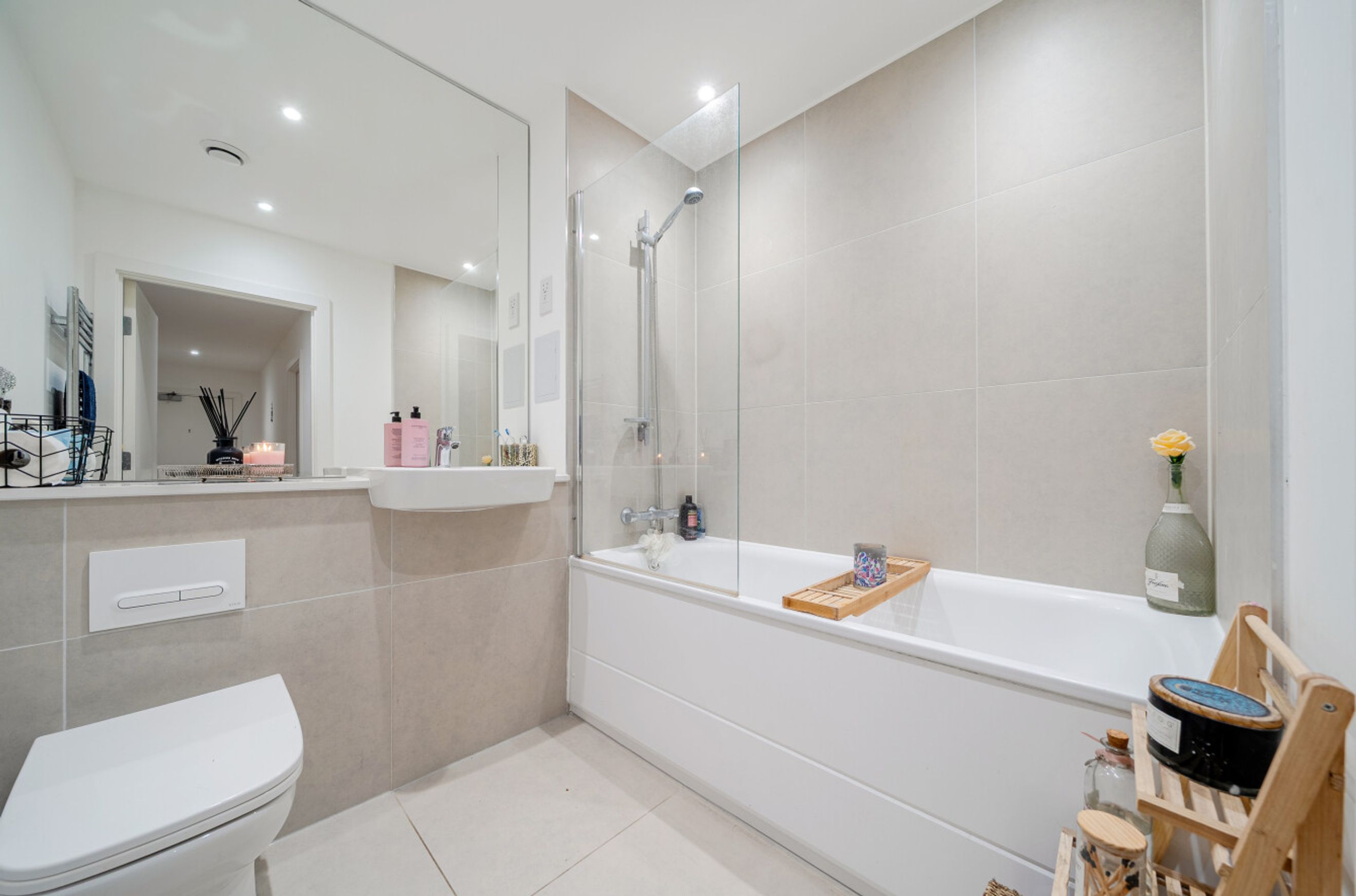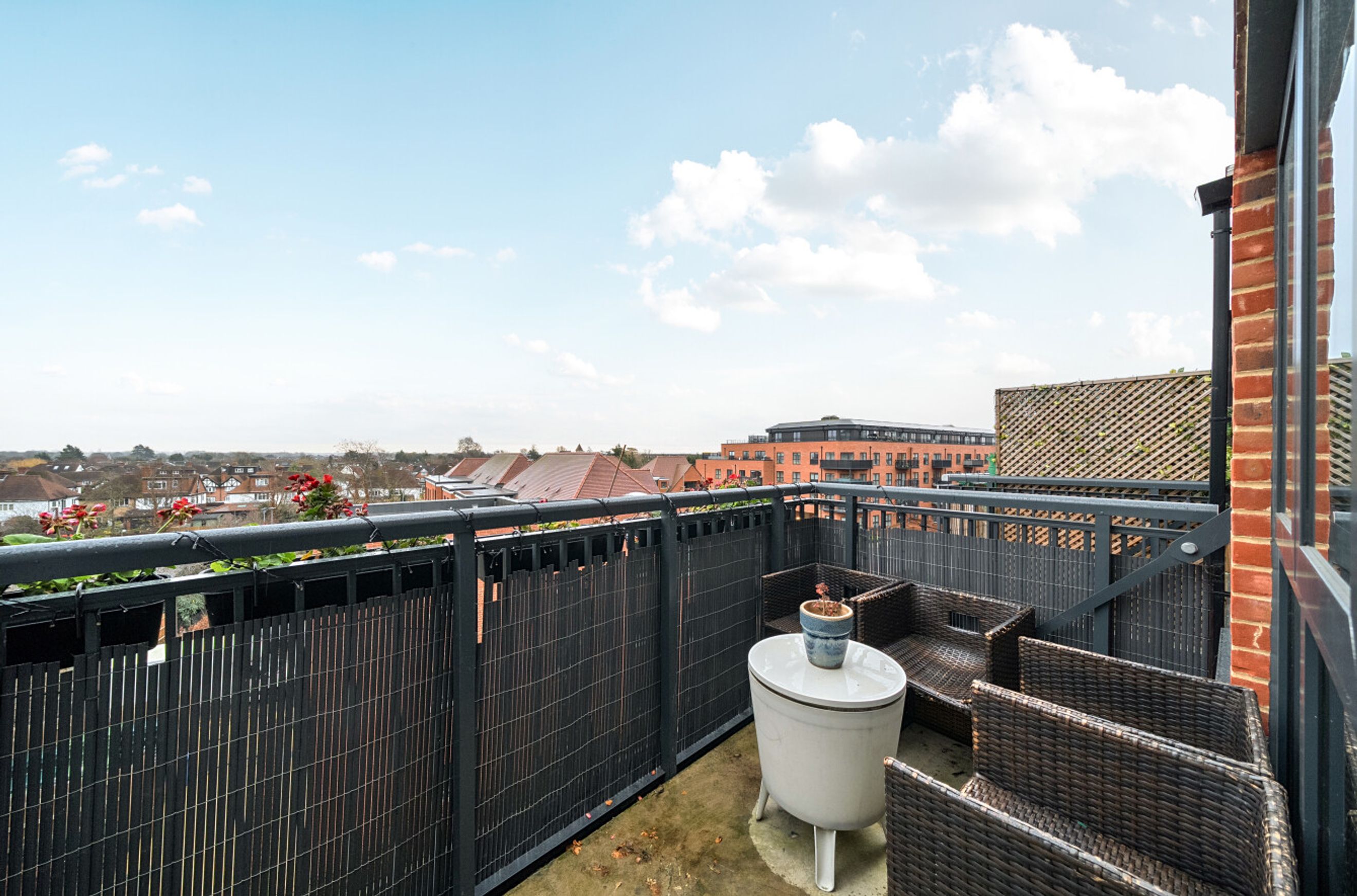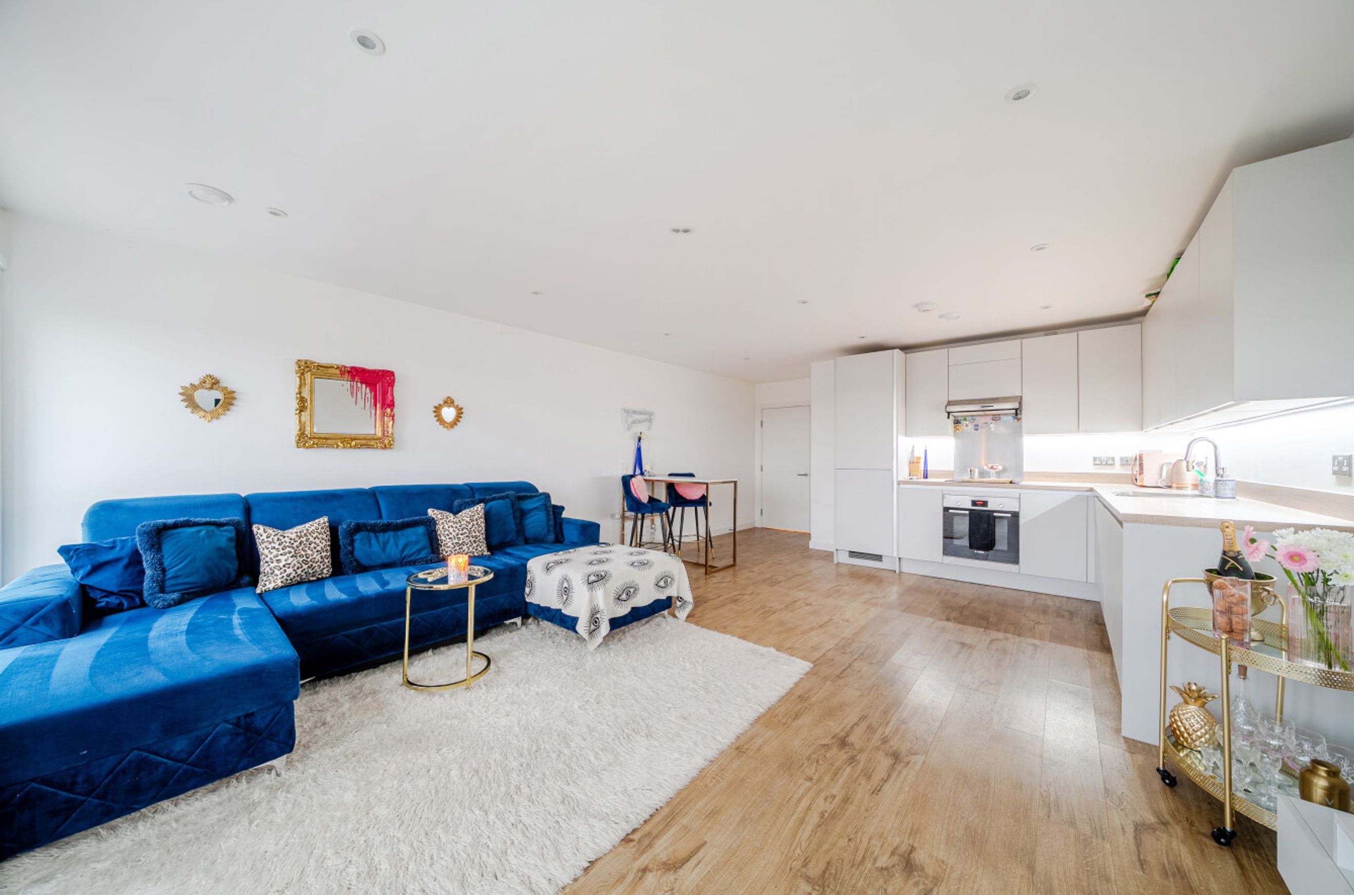 A smartly-presented apartment on the third floor of this recently-constructed development. The property has a large reception room with attractive flooring and an open-plan kitchen area featuring handle-less units and integrated appliances. A door leads out onto an east/south-east-facing balcony. There is a main bedroom with fitted wardrobe and en-suite shower room plus a second, good-sized, double bedroom and a simple yet stylish bathroom. A large utility cupboard has been provided in the entrance hallway and well insulated walls, high performance glazing and a communal heating/hot water system all contribute towards a very good energy-efficiency rating. Palmer Court has a raised communal garden overlooking a public green. There is a communal cycle store and Ashford Station, for rail services between Weybridge / Windsor & Eton Riverside and London Waterloo, is only a short walk away. Ofsted list five primary schools within a mile radius, all rated either 'Good' or 'Outstanding'. This particular apartment comes with the use of two parking spaces - one outside and one in the underground car park.