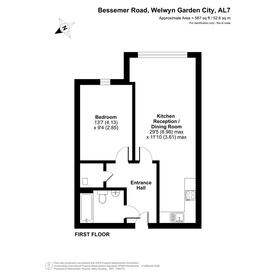 The property on the first floor comprises an entrance hall, with storage a modern kitchen, one double bedroom and a bathroom.