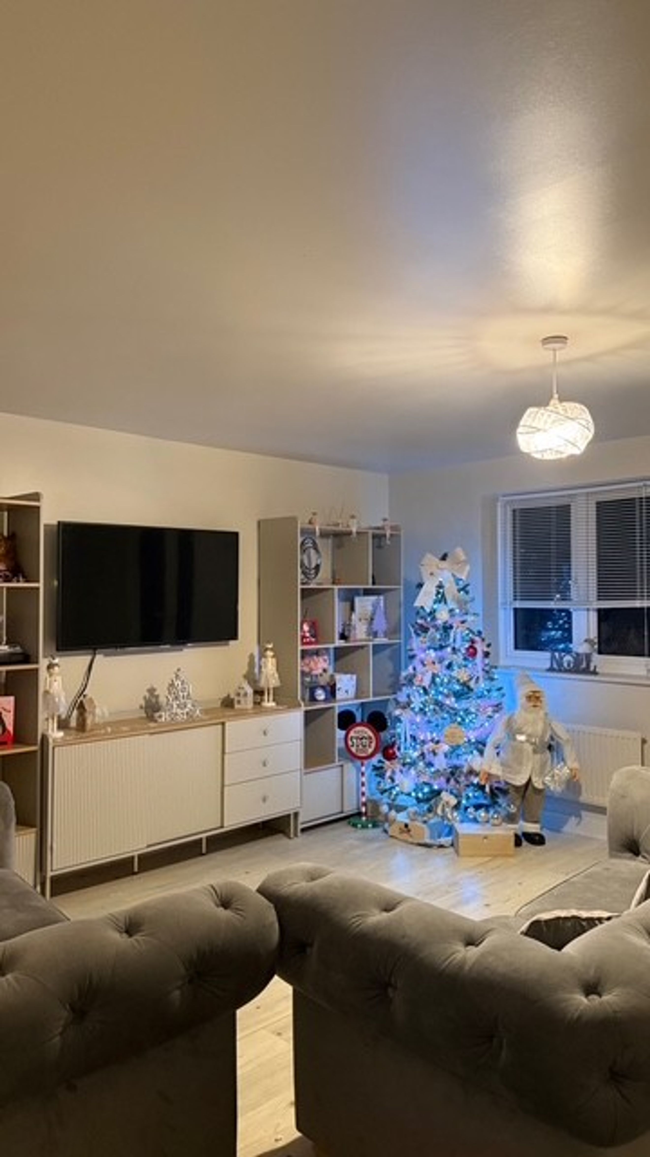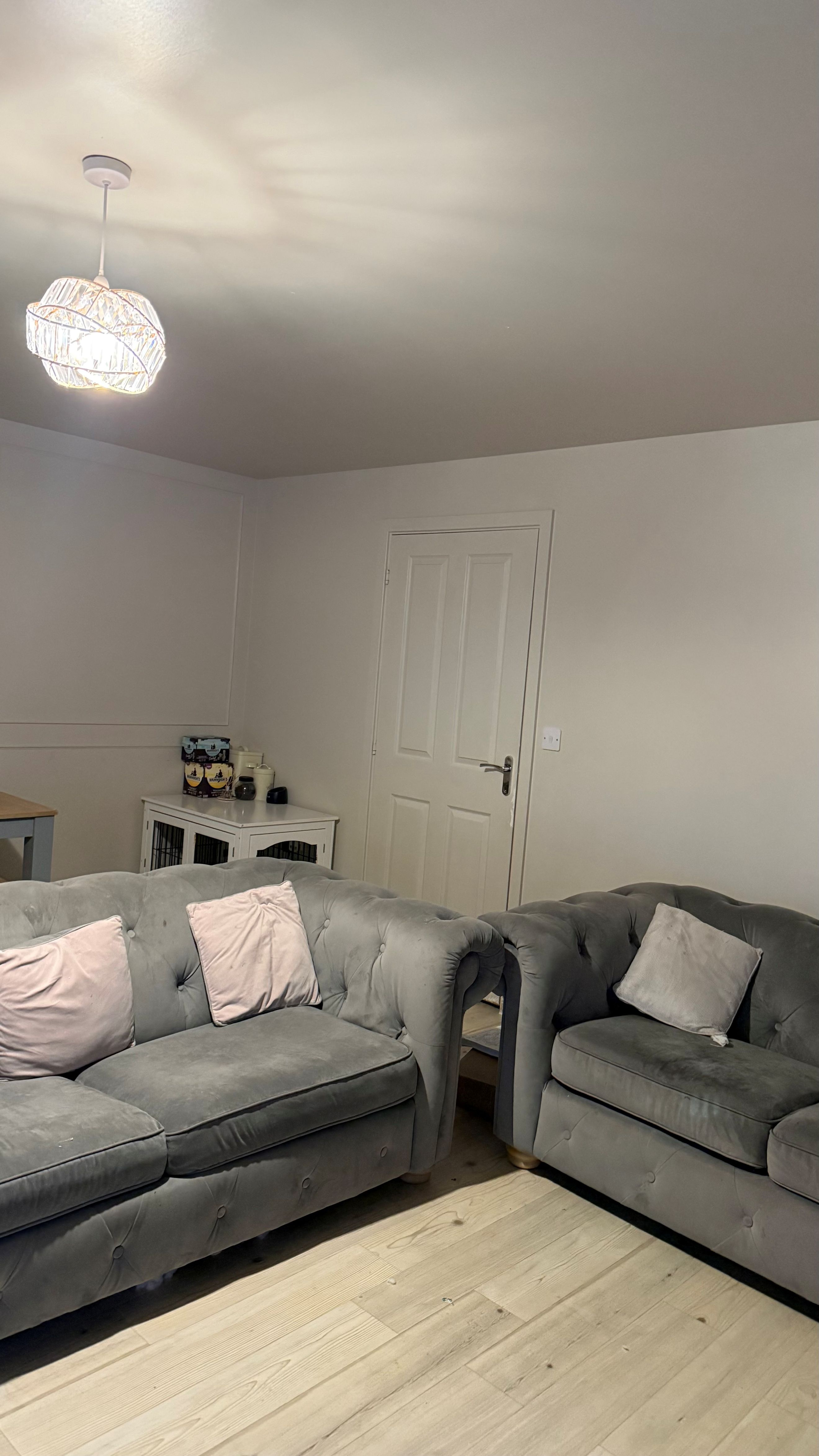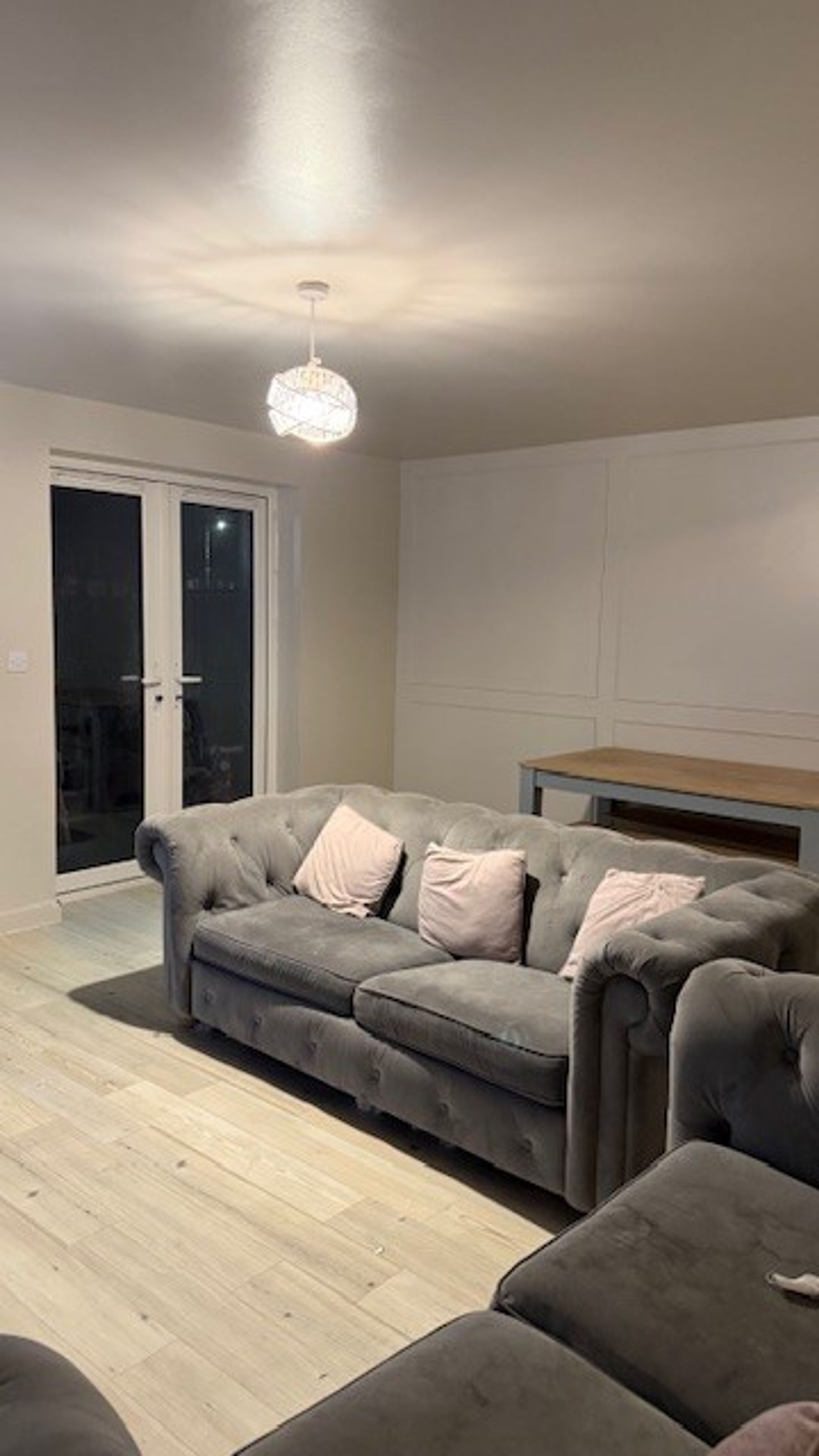 An inviting hallway provides a welcoming introduction to the home, leading to the principal living areas. The living room, positioned to overlook the rear garden, offers a comfortable space for relaxation and entertaining.