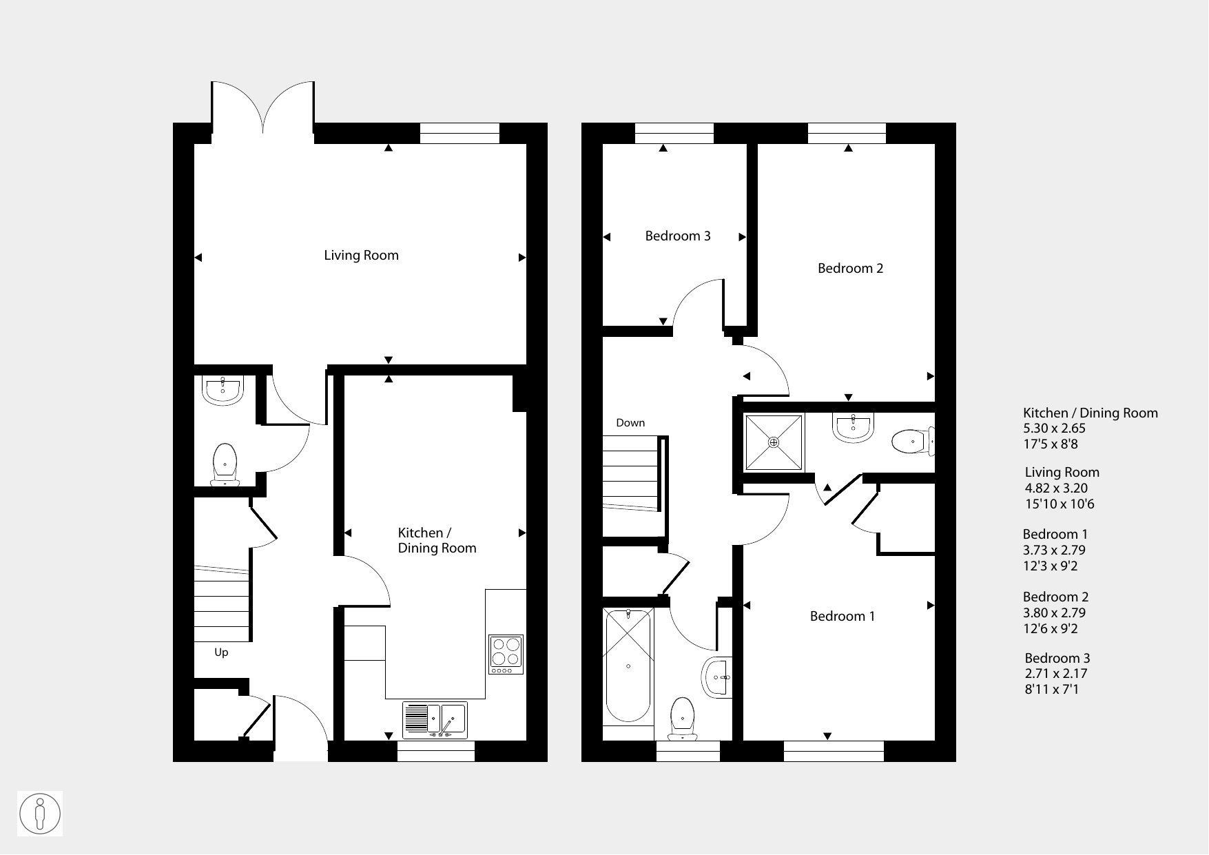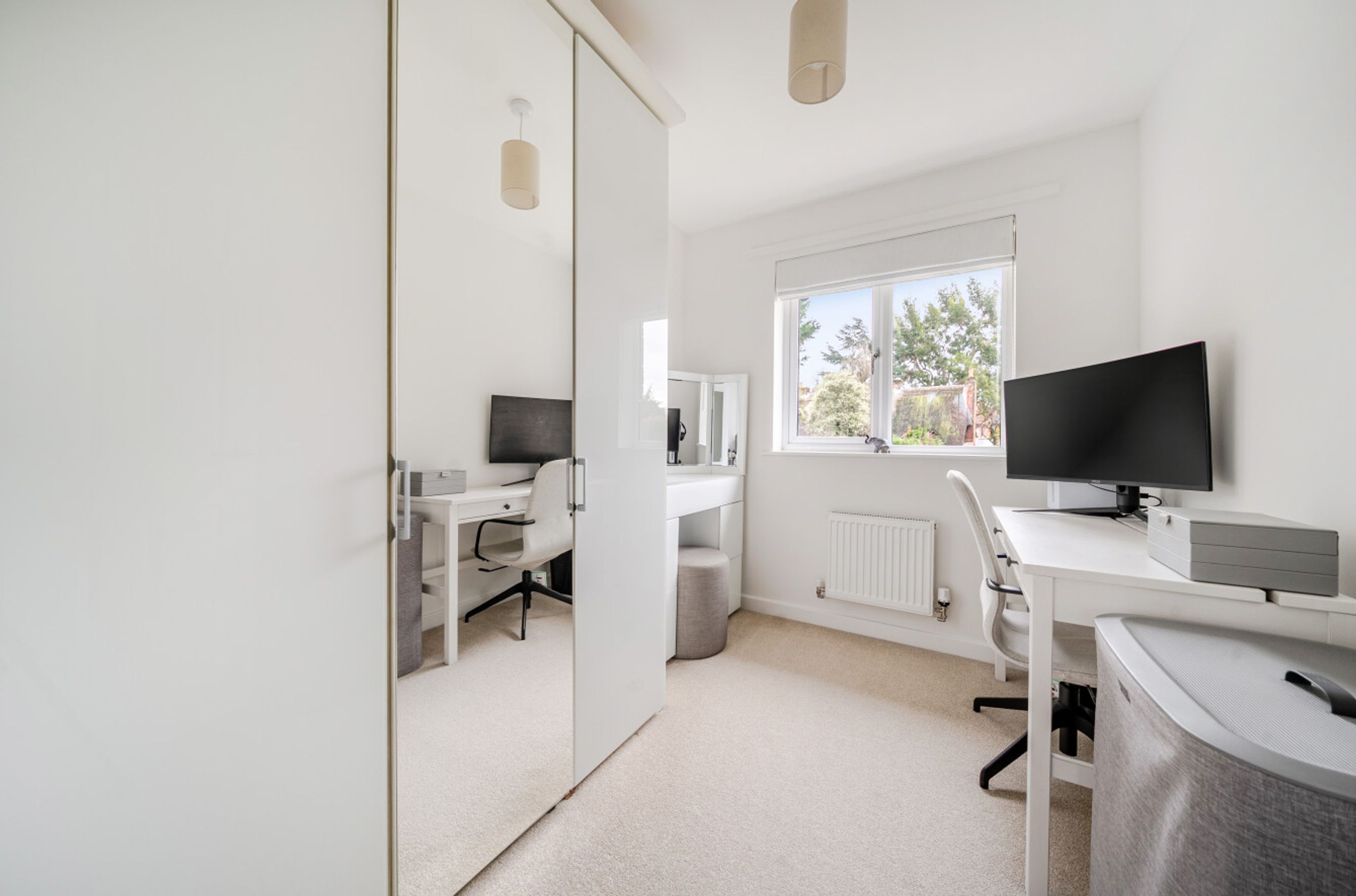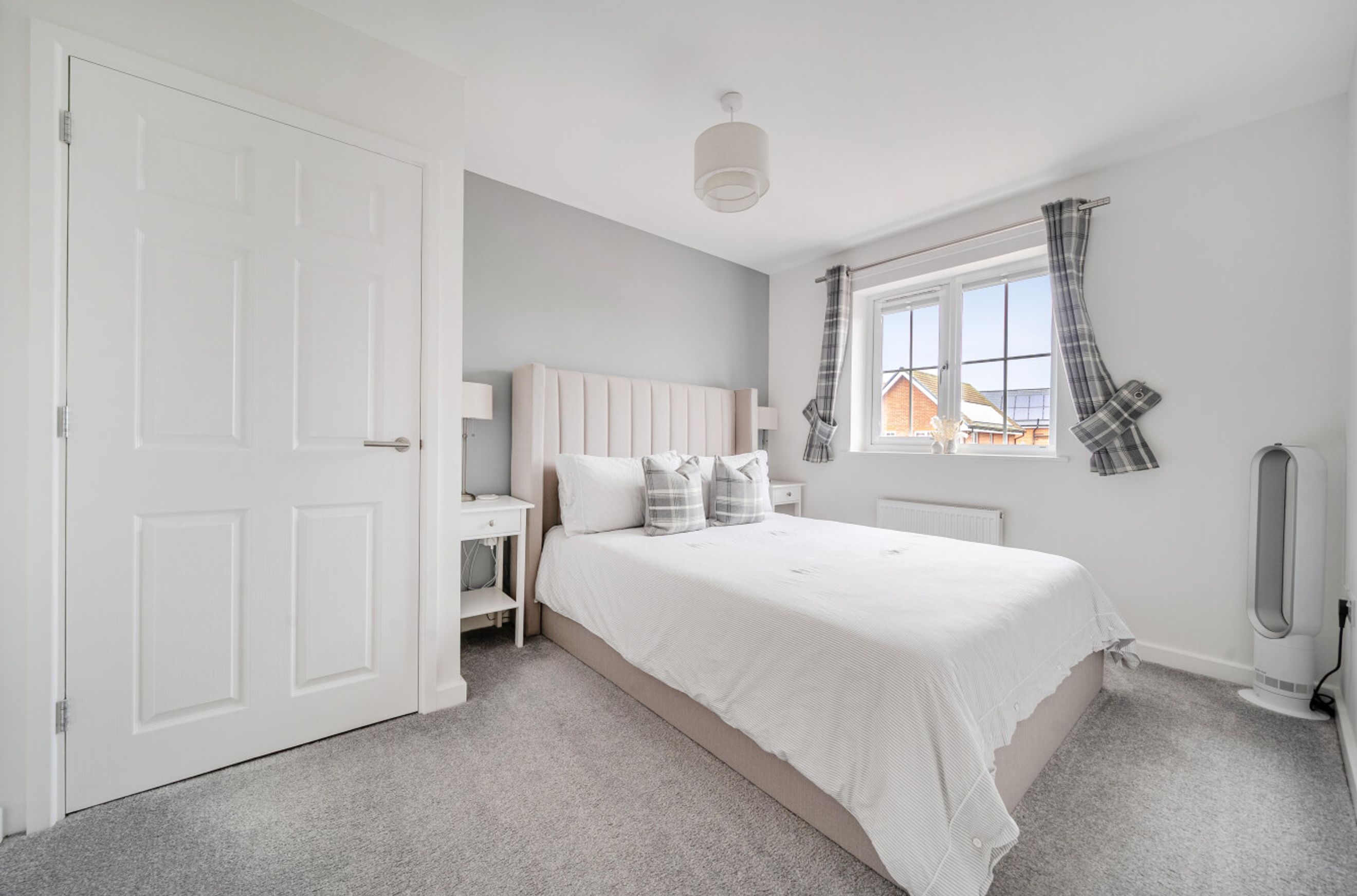 Upstairs, there are three comfortable bedrooms with an ensuite to the master. The bathroom has a modern, white suite. You'll also have your own back garden, and two parking spaces.