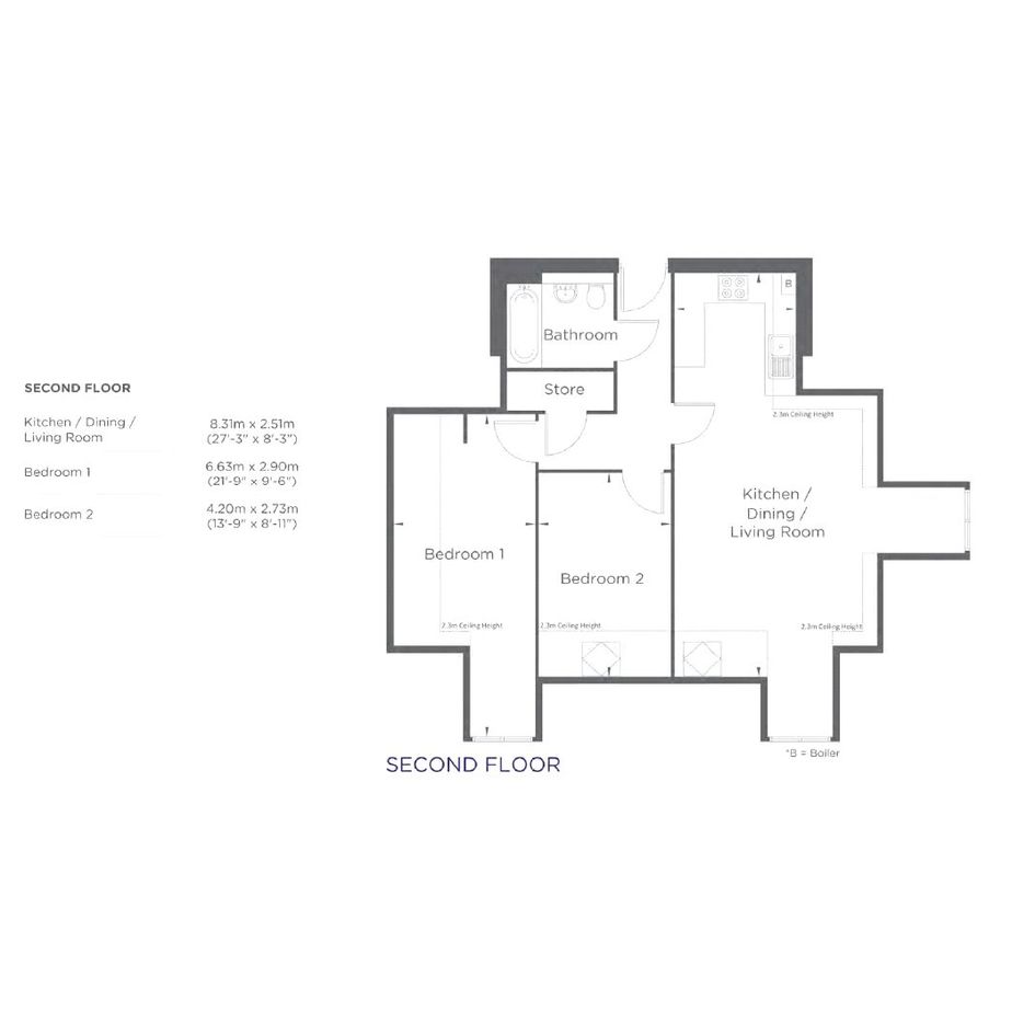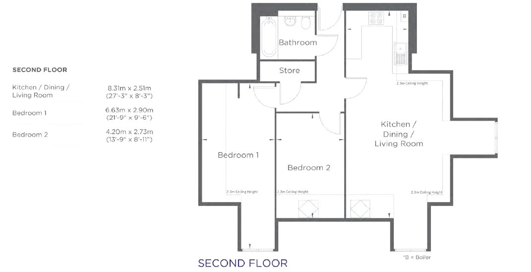 A well-appointed brand new second floor two bedroom apartment with two generous double bedrooms