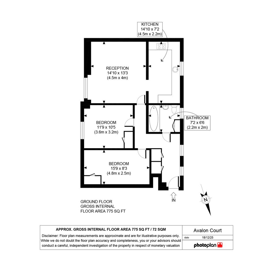 The gross internal floor area of the property is approximately 72 m2 (GIA).