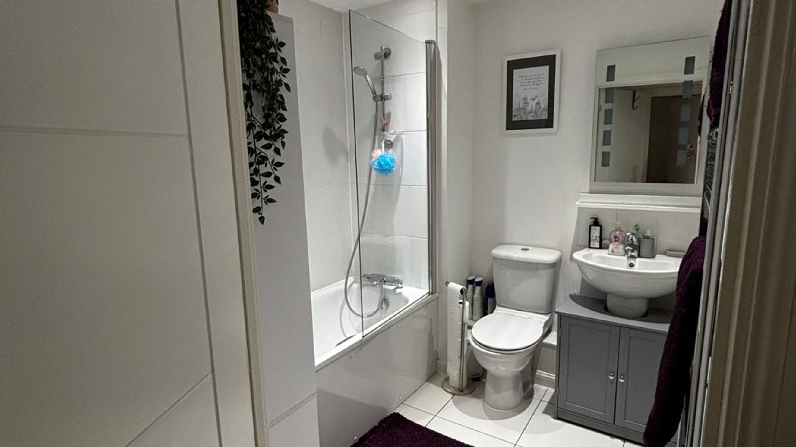 Both bedrooms are spacious and inviting, easily accommodating double beds and furniture, both rooms are the same size. The second bedroom is ideal as a guest room, home office or dressing room, adding flexibility to suit your lifestyle. The modern bathroom features a clean, contemporary suite, ensuring a fresh start to every morning.