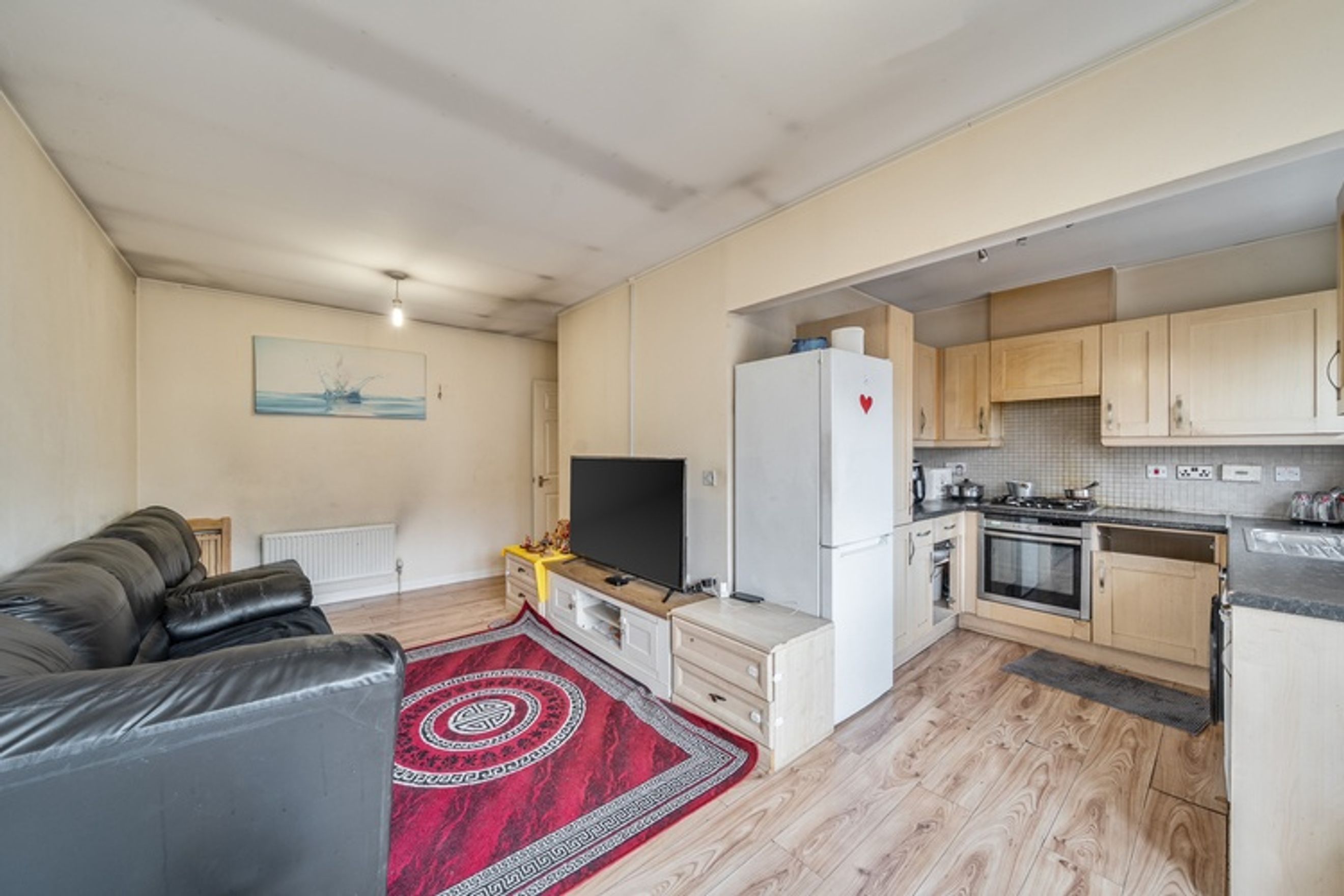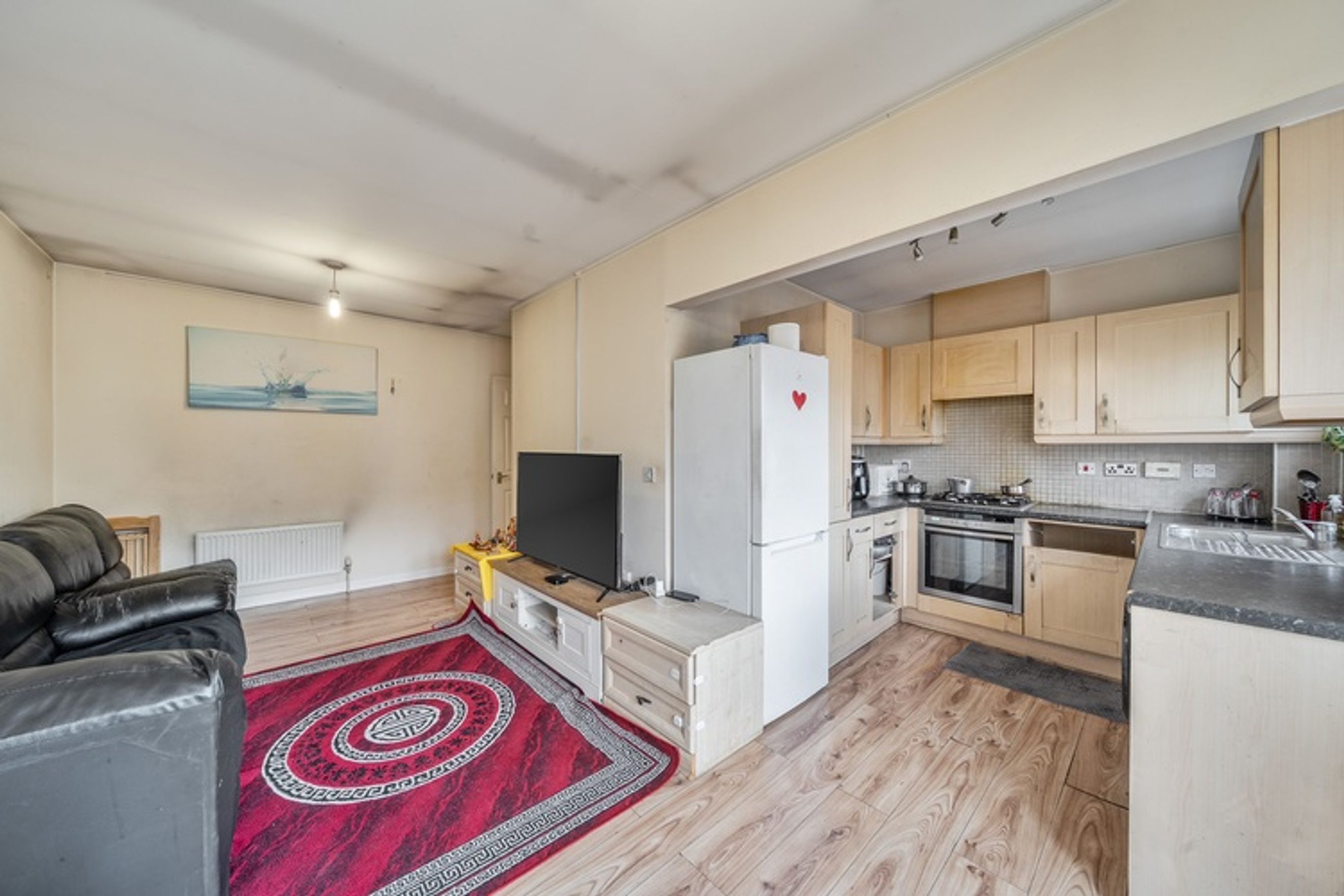 The property features an open-plan living room and kitchen, two bedrooms and one bathroom.