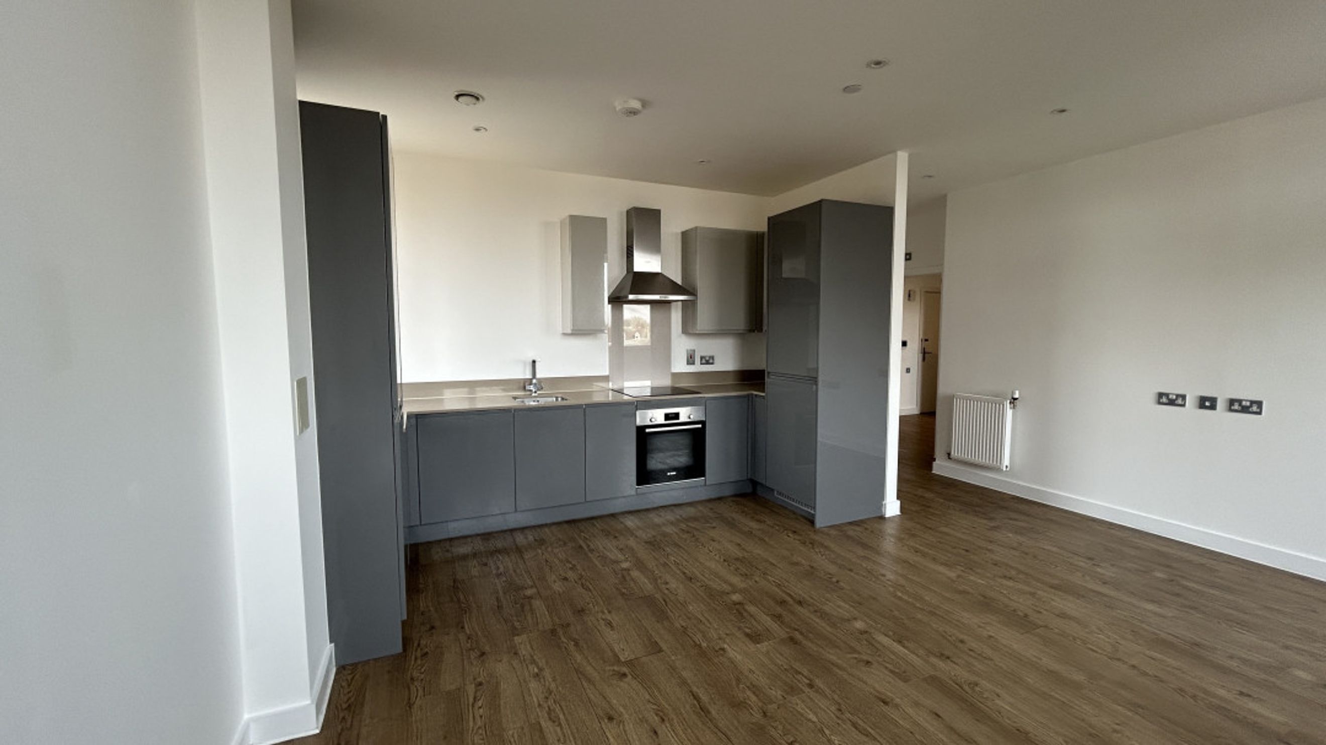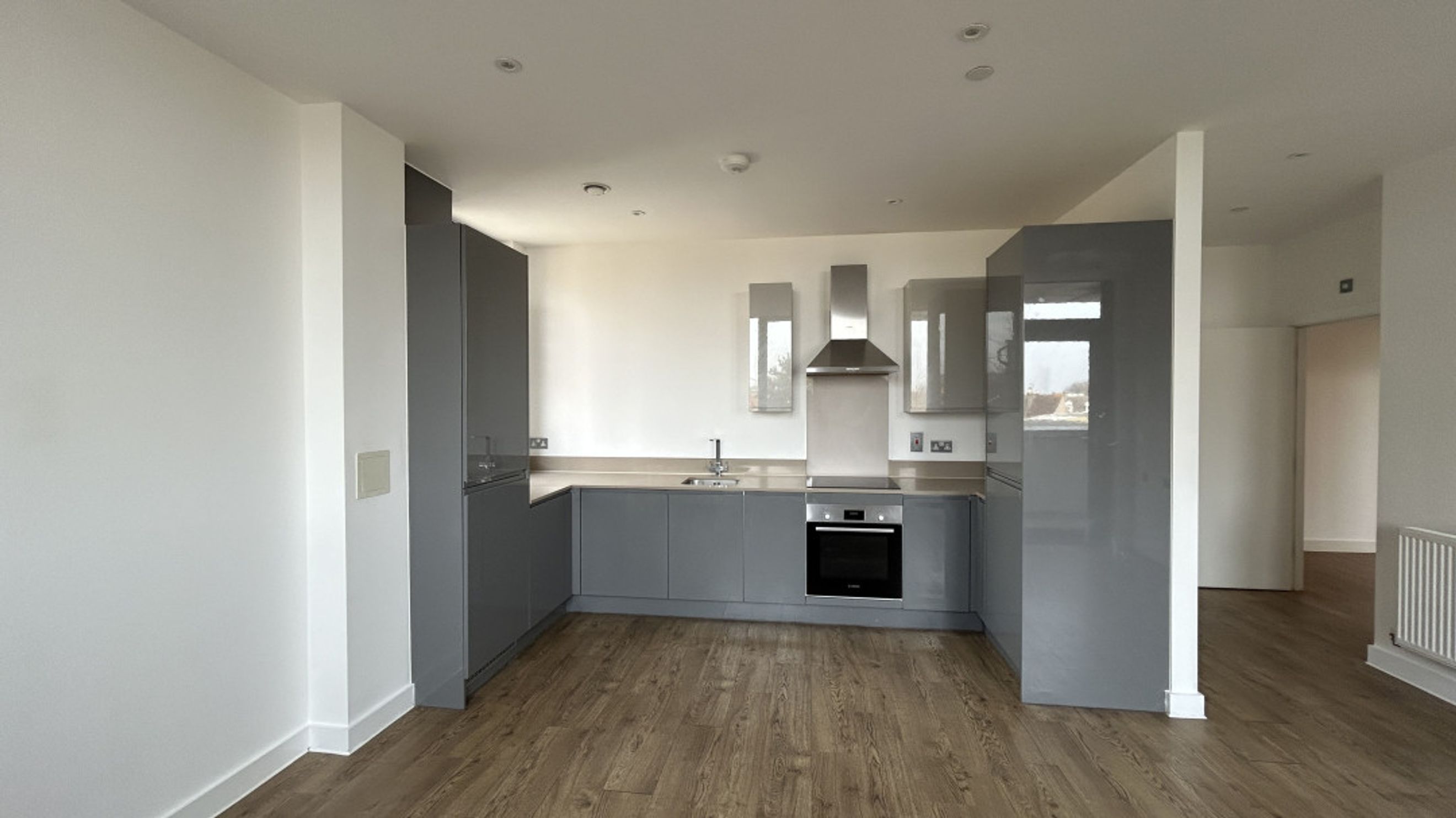 The apartment features a spacious open-plan layout. The kitchen is fully furnished with integrated appliances, including a washer-dryer, dishwasher and fridge-freezer. Most properties within the development benefit from private balconies, with some enjoying panoramic views either towards central London or Surrey.