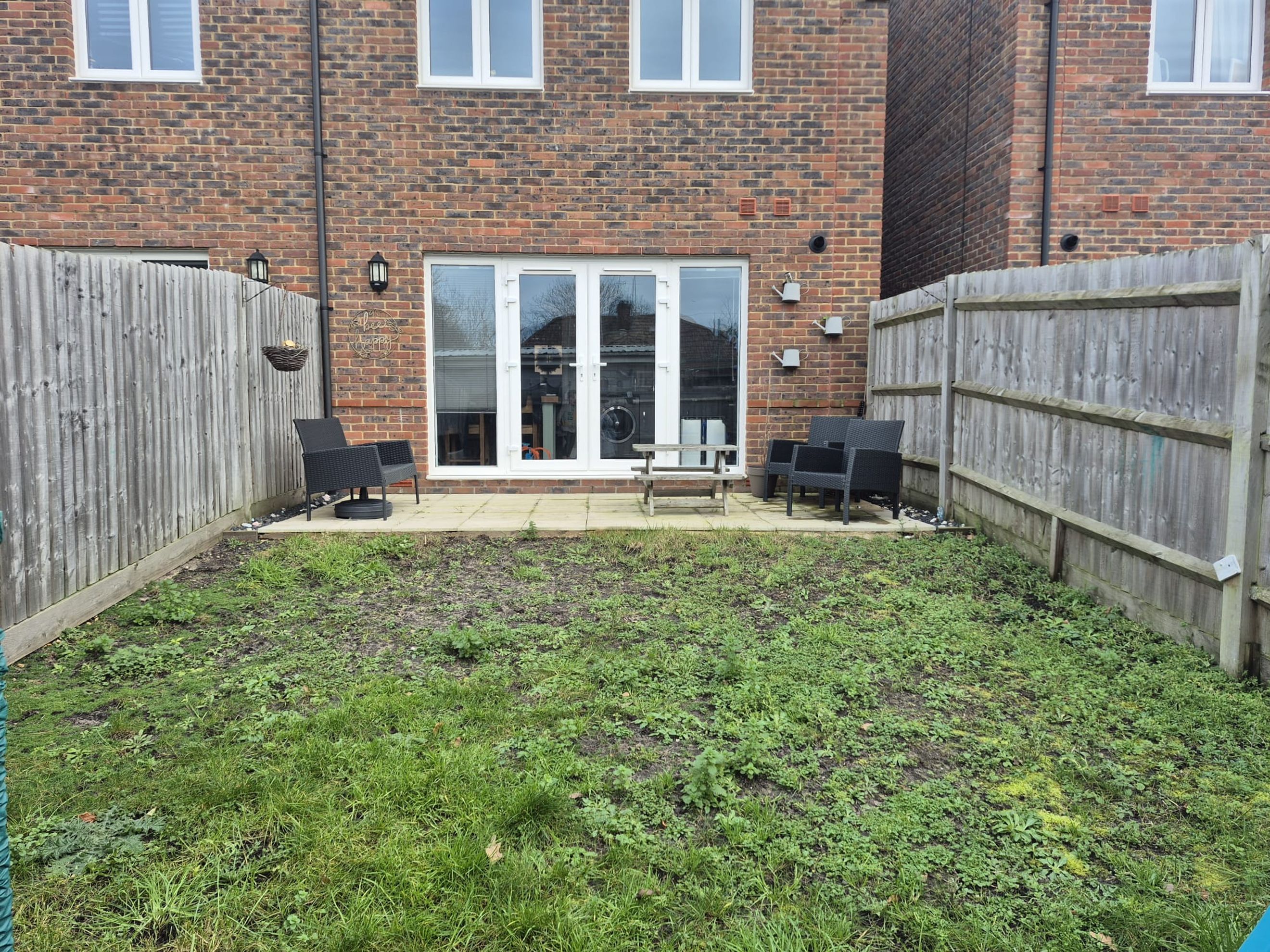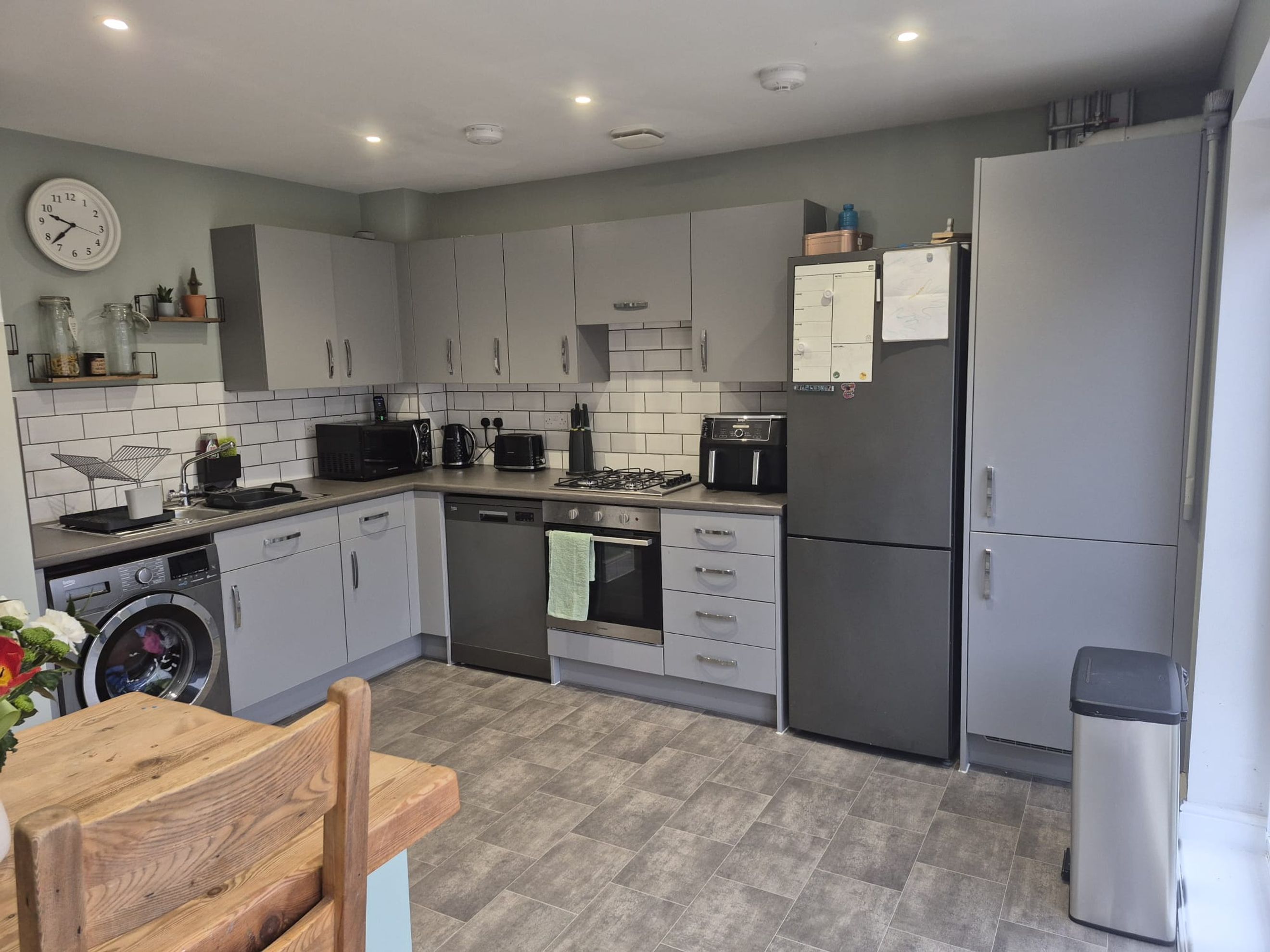 Modern kitchen/diner, ideal for family life & entertaining, double doors opening directly onto the rear garden, creating a bright & open living space.