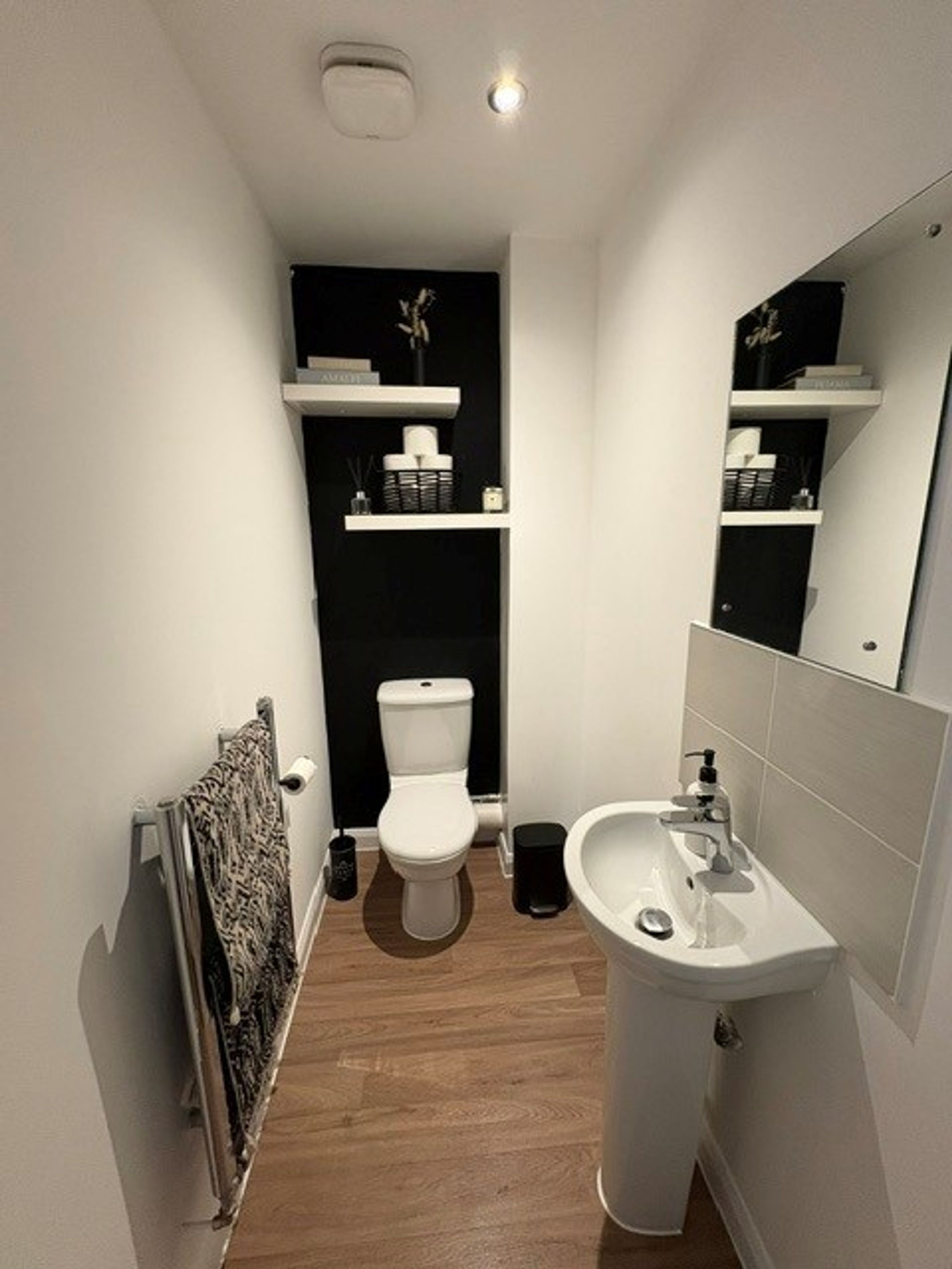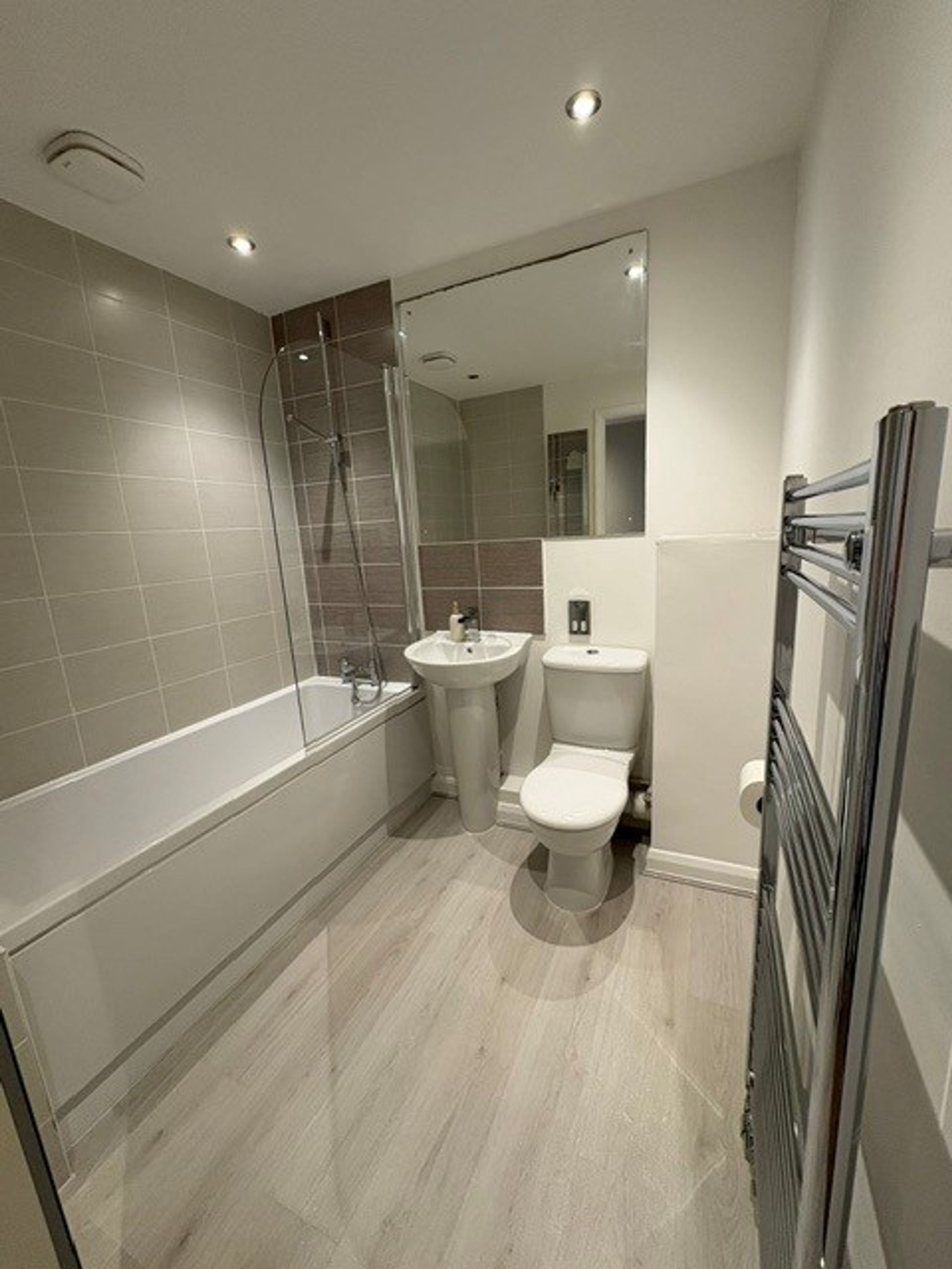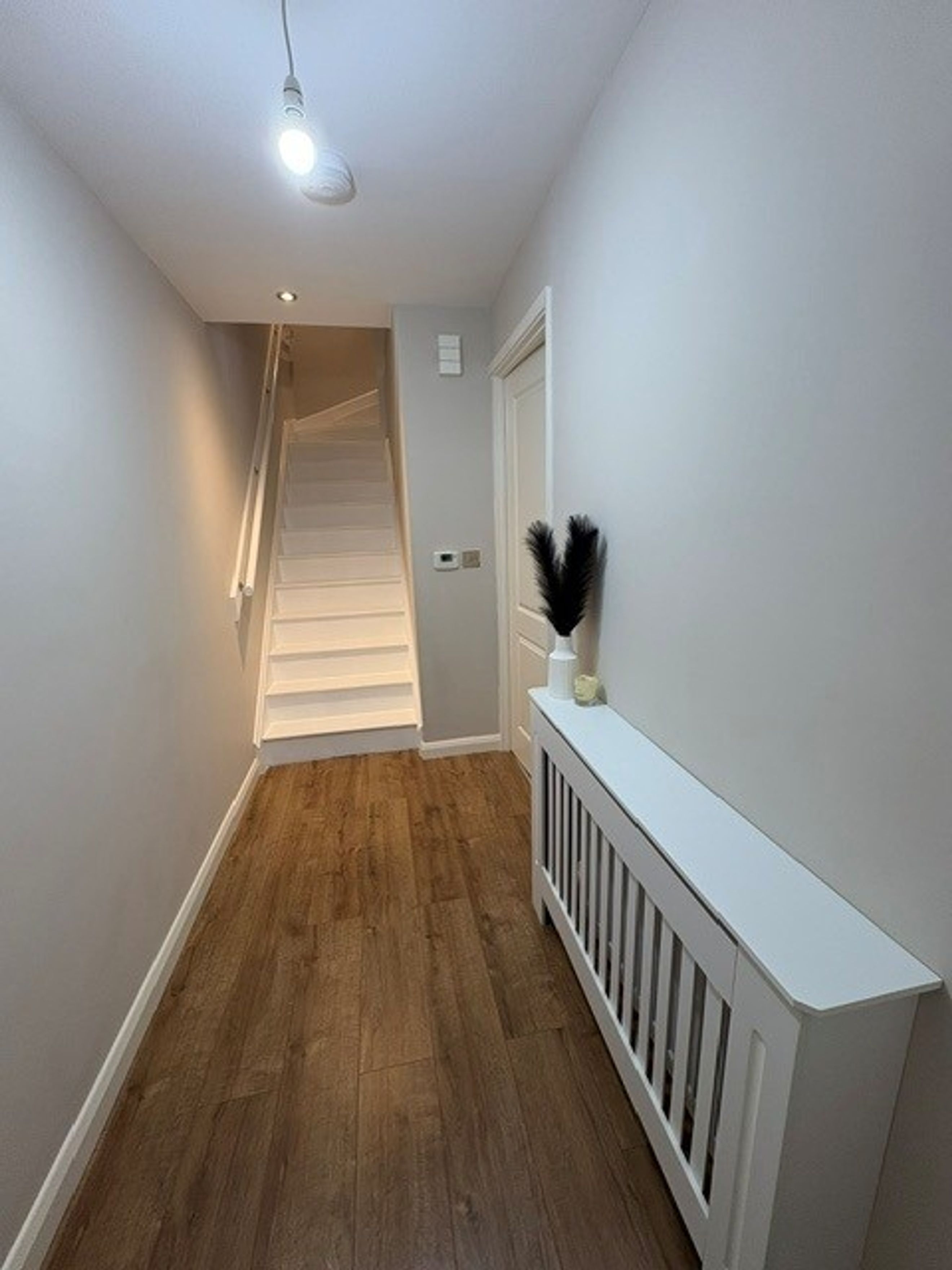 The first floor there are two bright good size bedrooms, a family bathroom with the shower over the bath and heated towel rail