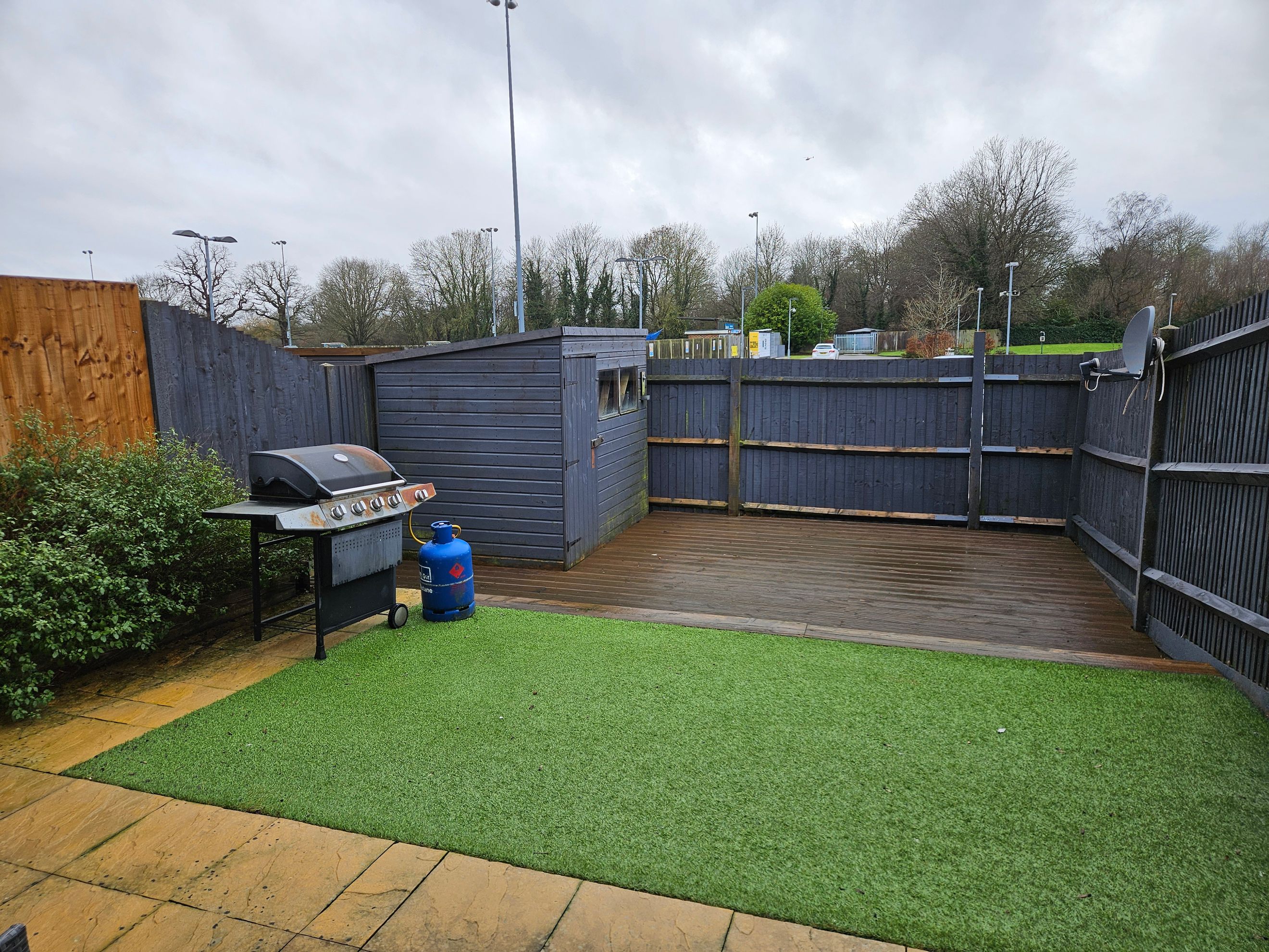 - Rear garden with decking area and shed